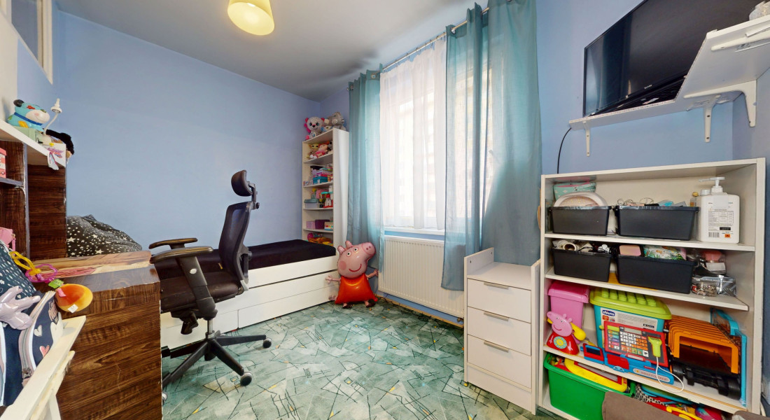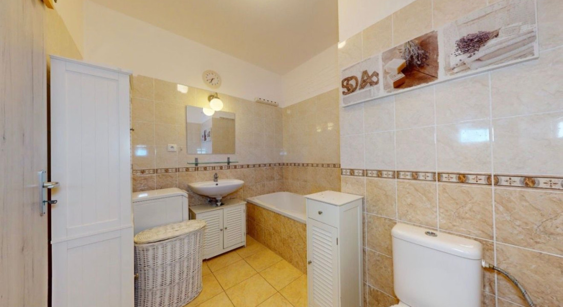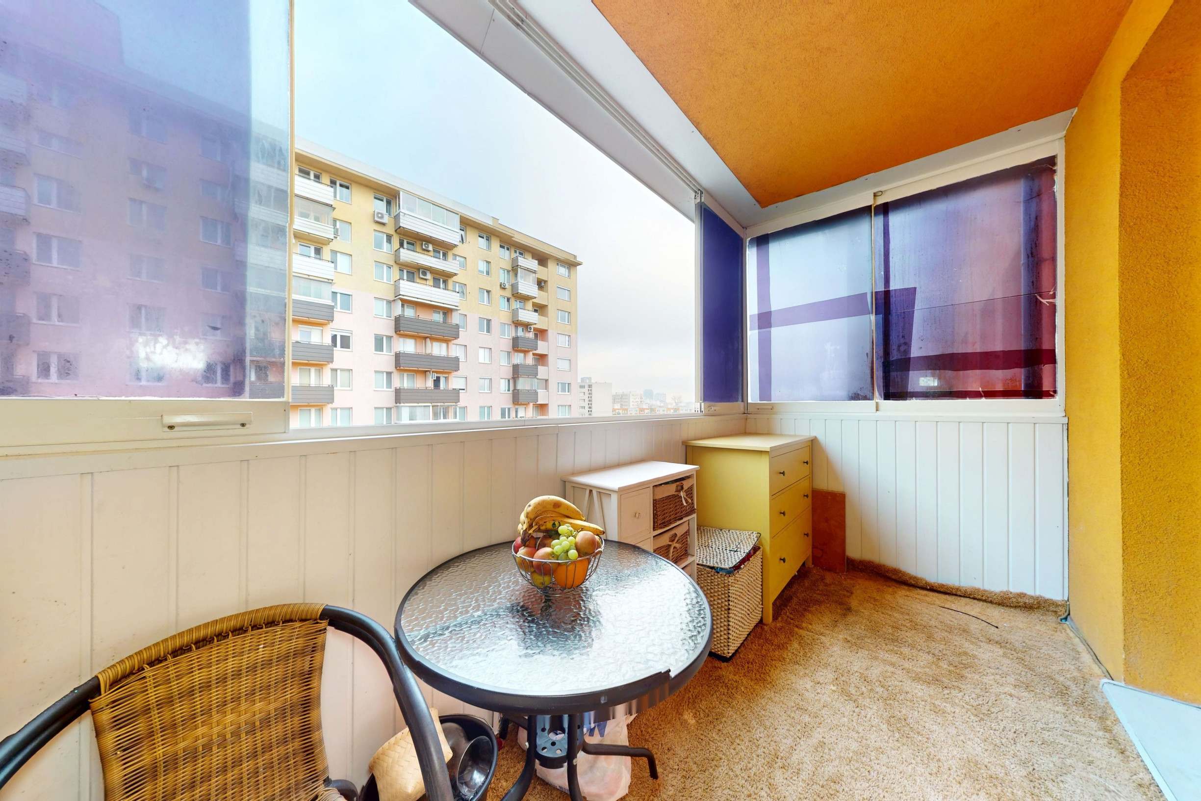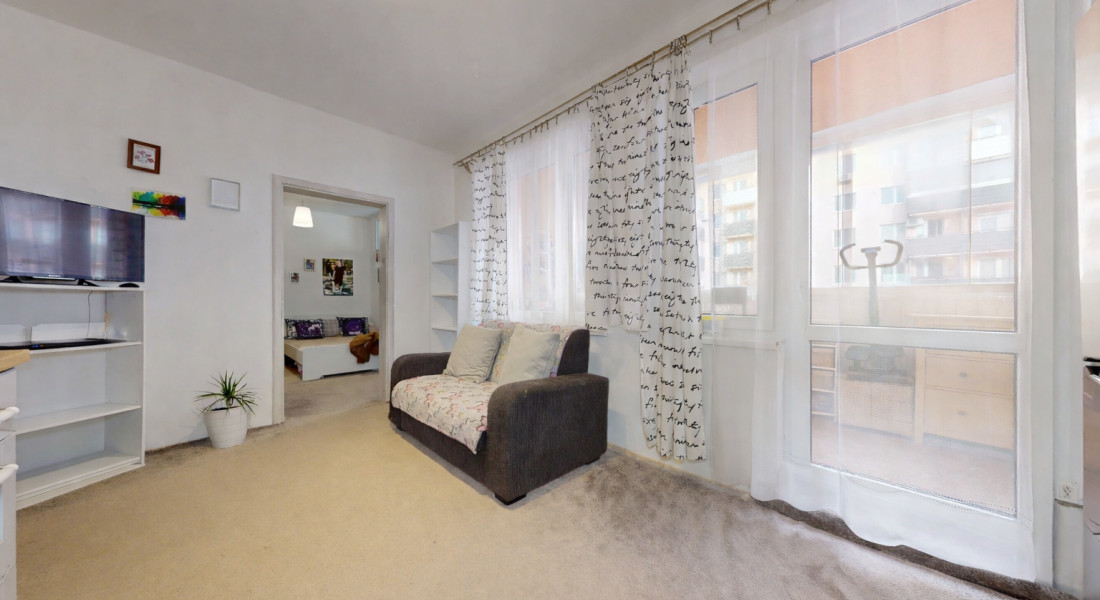 Dispozíciu bytu tvorí vstupná hala so vstavaným šatníkom a bezpečnostnými dverami, samostatná kuchyňa prepojená s obývacou izbou s výstupom na zasklenený balkón, dve priechodné izby a kúpeľňa s WC.