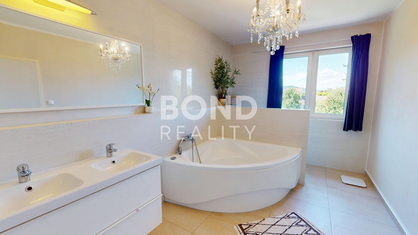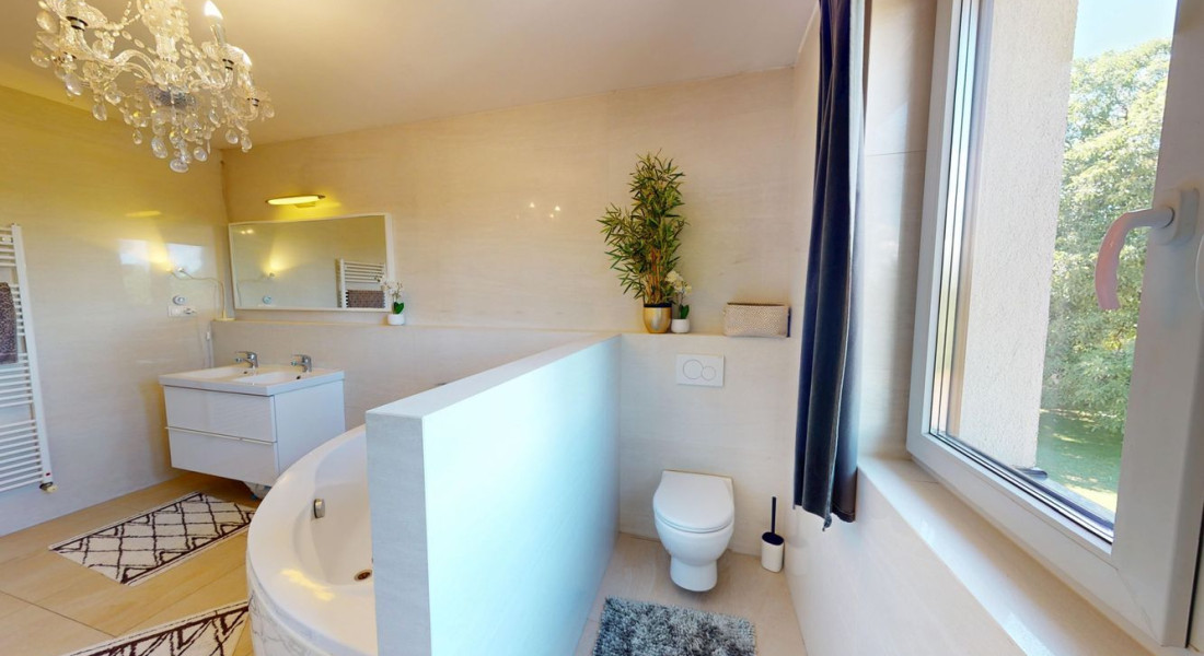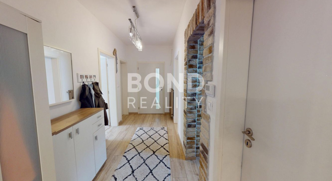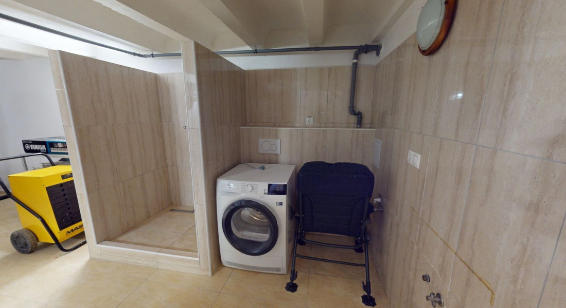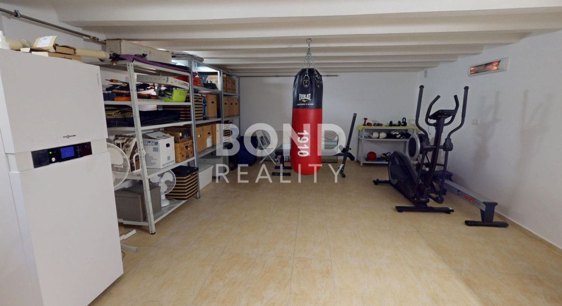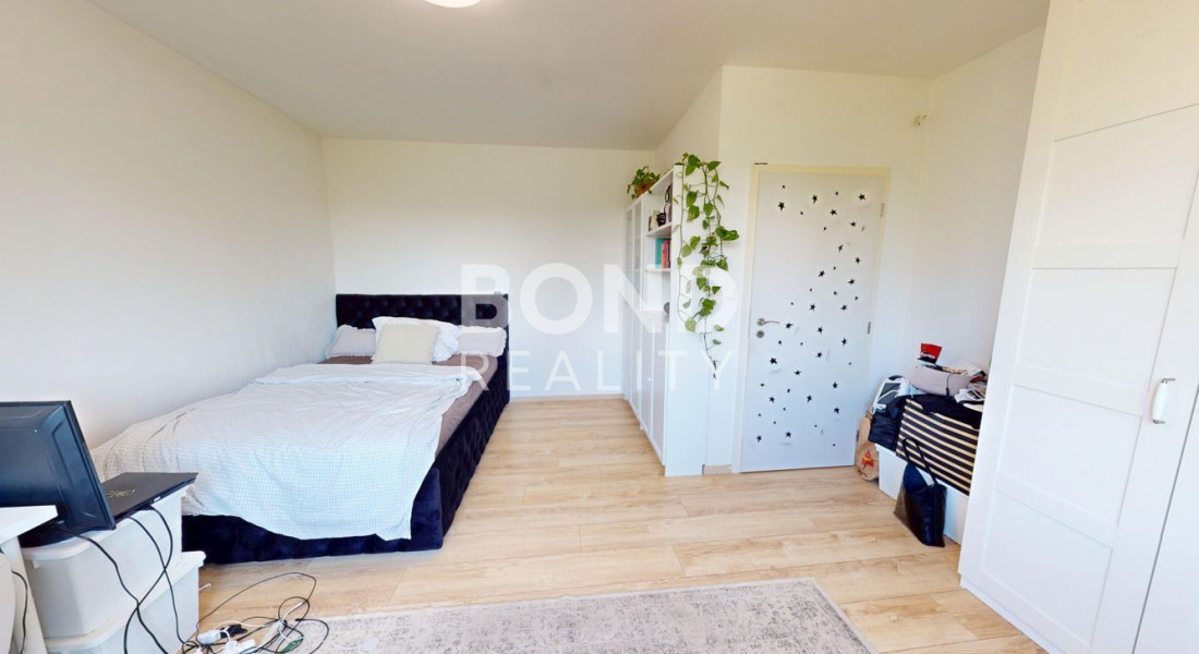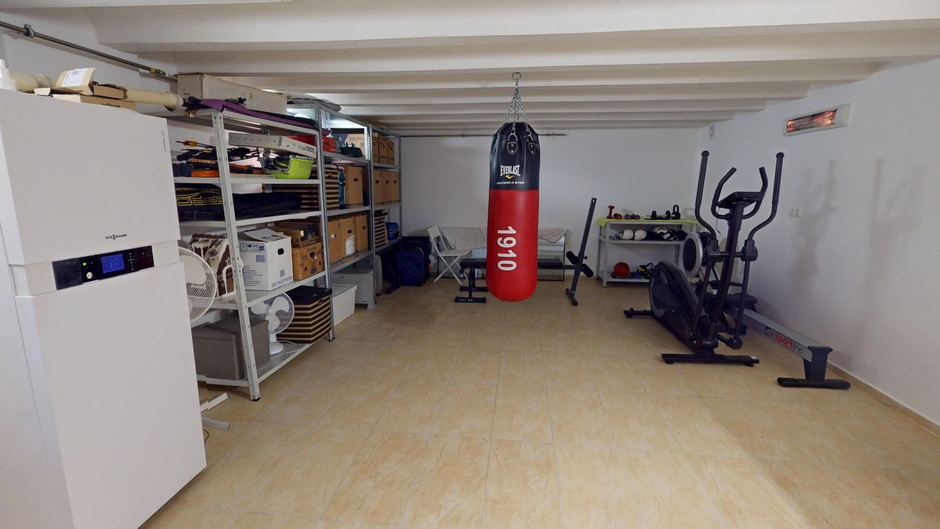 Na poschodí sú tri priestranné spálne a druhá kúpeľňa s vaňou, dvojumývadlom a toaletou. V pivnici nájdete technickú miestnosť, práčovňu a ďalšiu sprchu – praktické riešenie pre každodenný komfort.