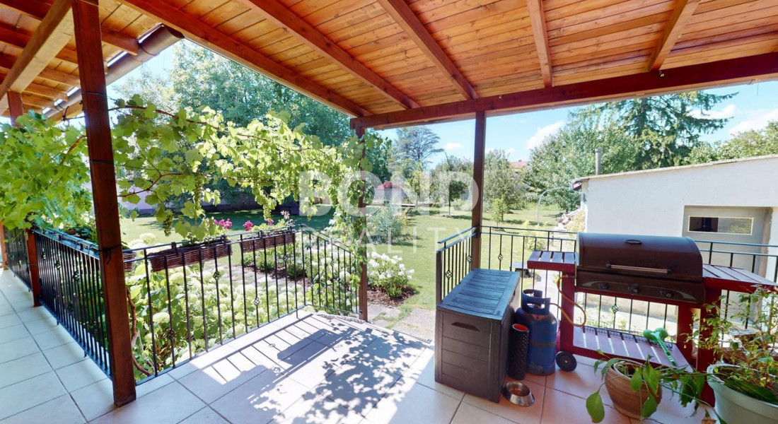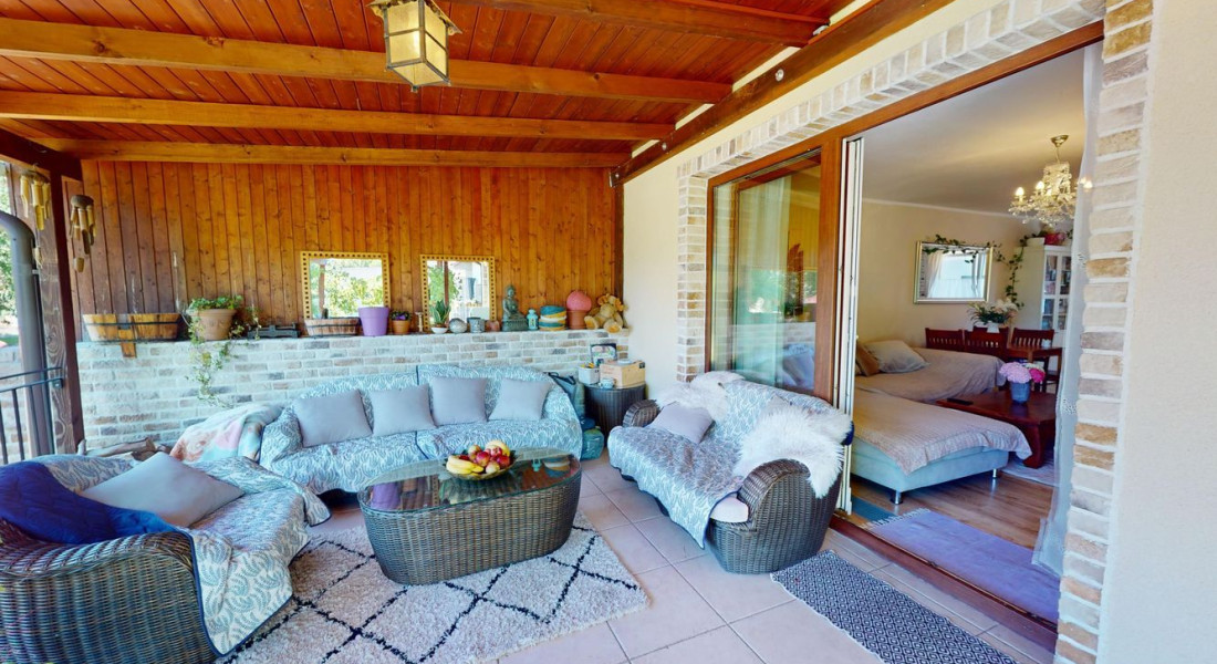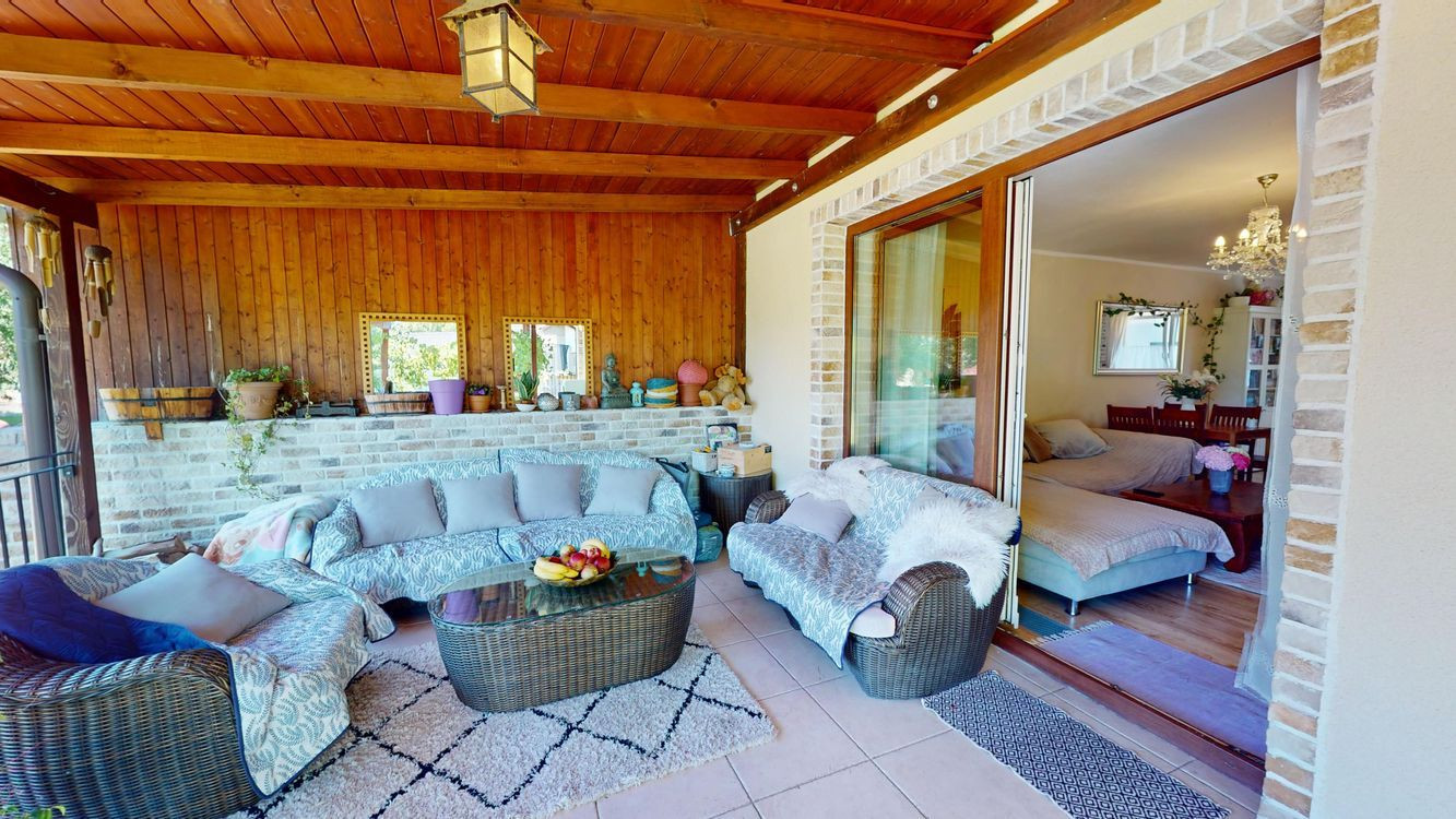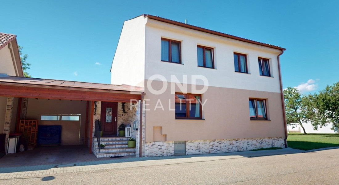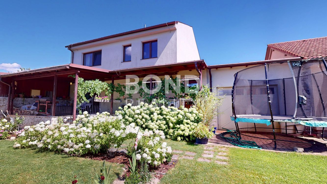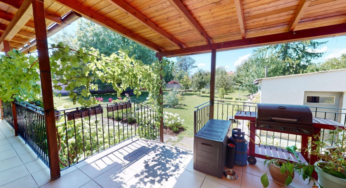 Záhrada ponúka dostatok priestoru na oddych i záhradkárčenie, rastú tu ovocné stromy a nachádza sa tu aj murovaná záhradná chatka. K domu patrí priestranný prístrešok na parkovanie s rozlohou približne 44 m², vhodný aj pre obytný príves.