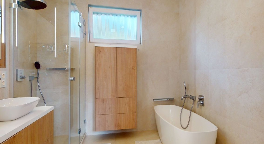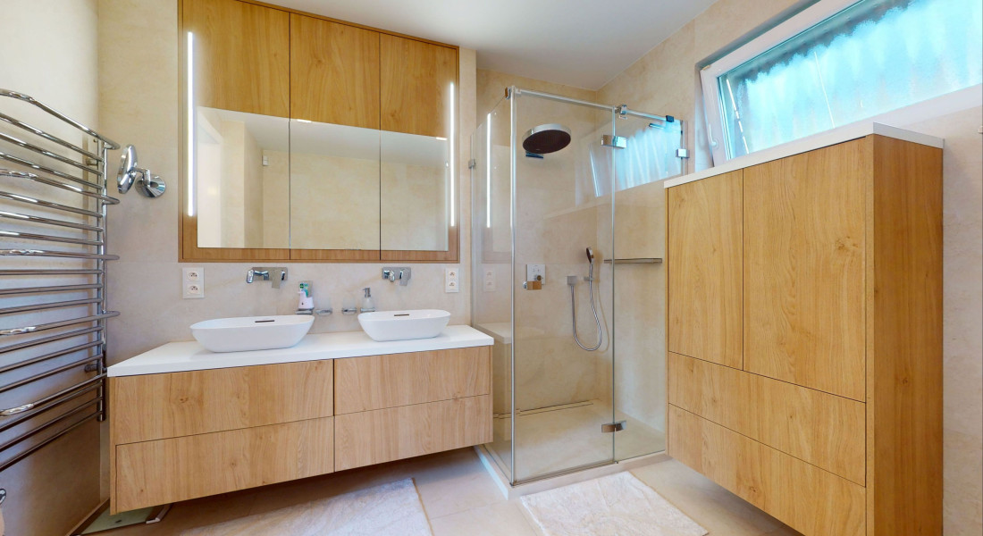 Poschodie — oddychová zóna: súkromný wellness s fínskou saunou, sprchou a relaxačnou časťou, herňa, hosťovská izba so šatníkom, technická miestnosť.