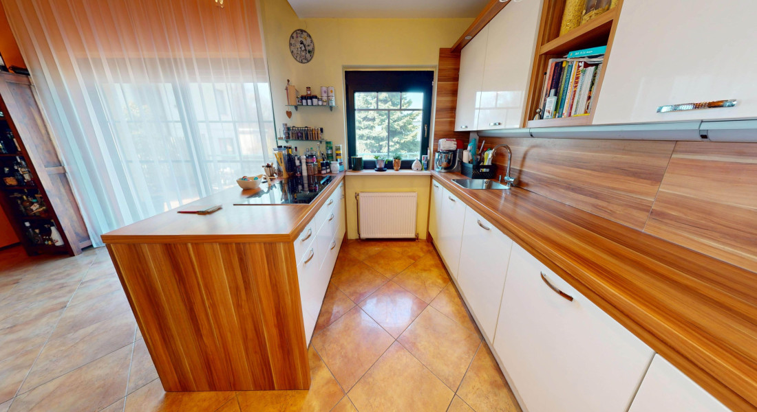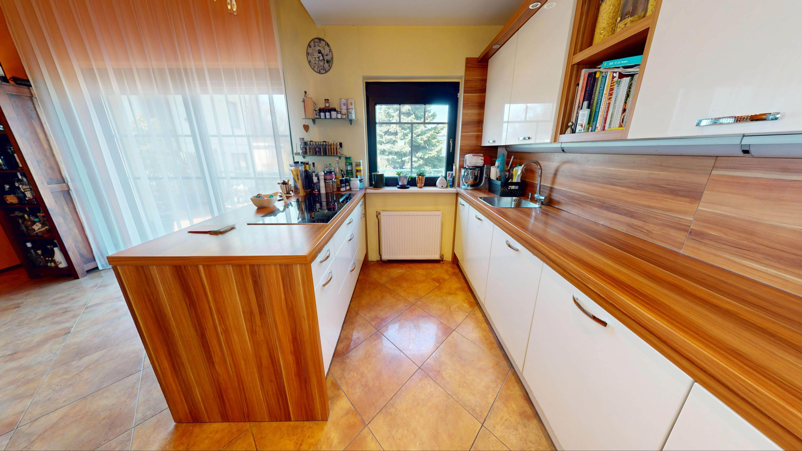 Dom je rozdelený na dve podlažia a ponúka premyslenú dispozíciu s príjemnou atmosférou bývania.