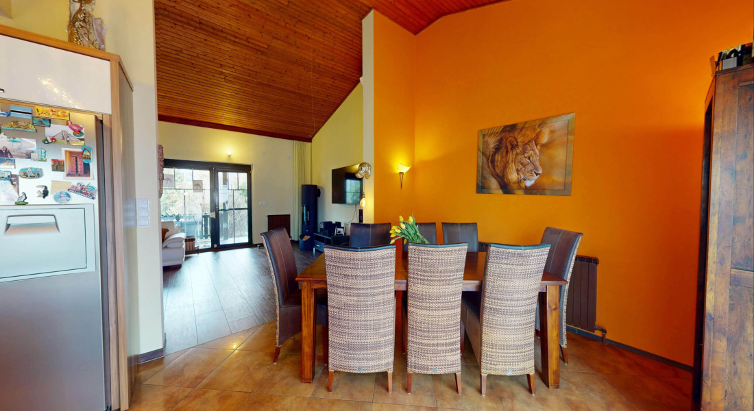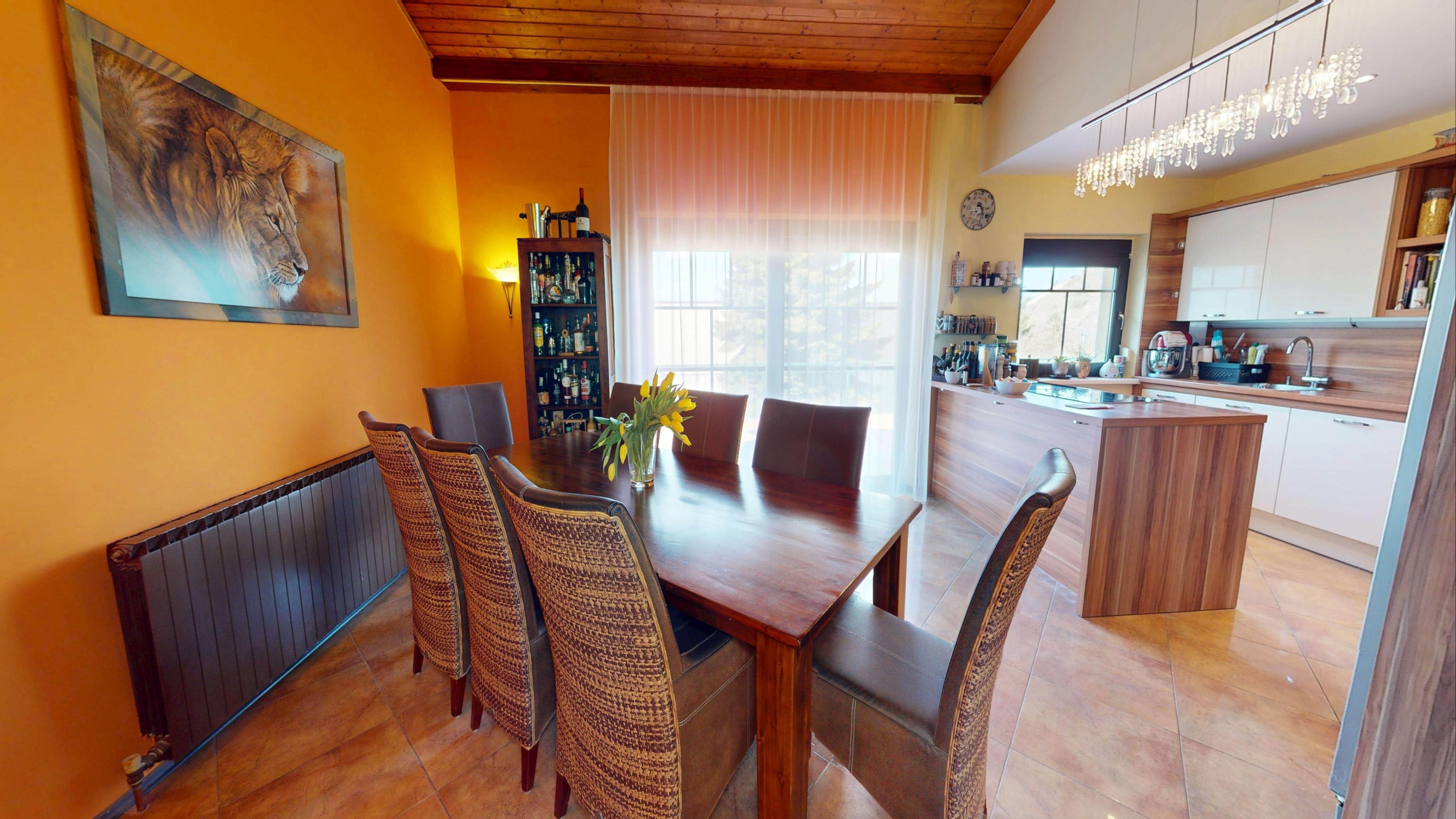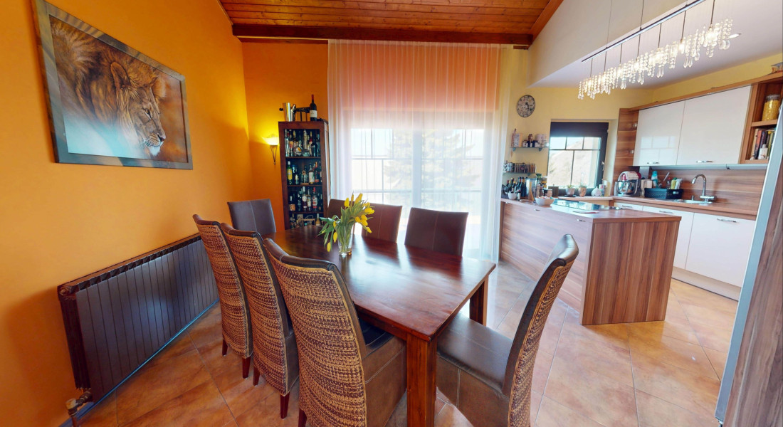 Na obývaciu časť nadväzuje veľkorysá jedáleň s dostatkom priestoru pre veľký jedálenský stôl – ideálne miesto pre rodinné stretnutia aj večery s priateľmi.