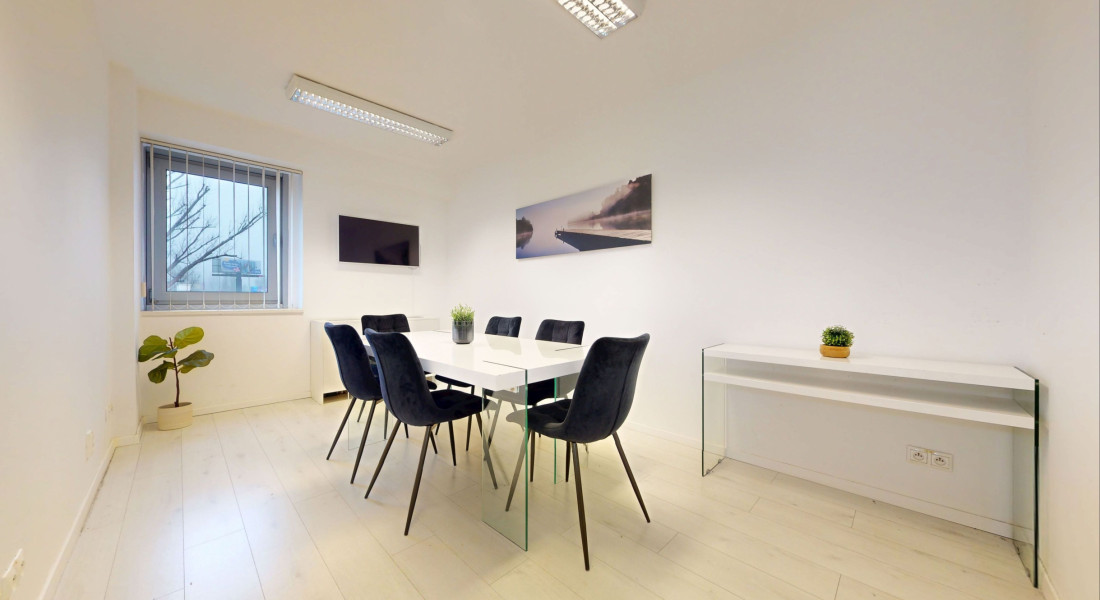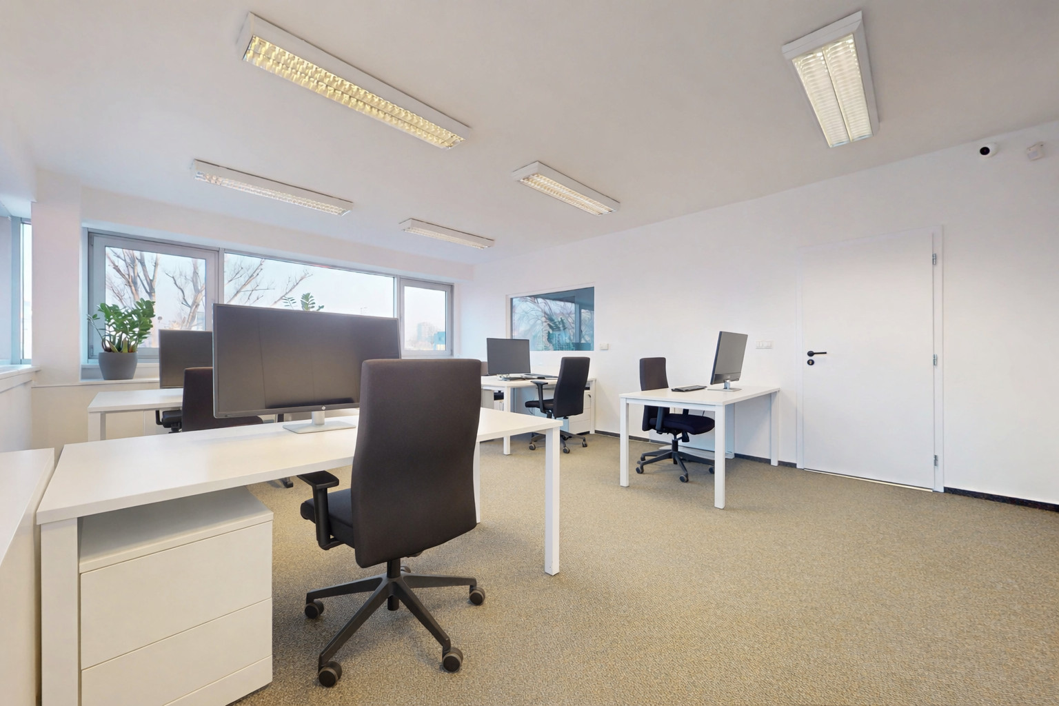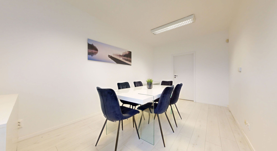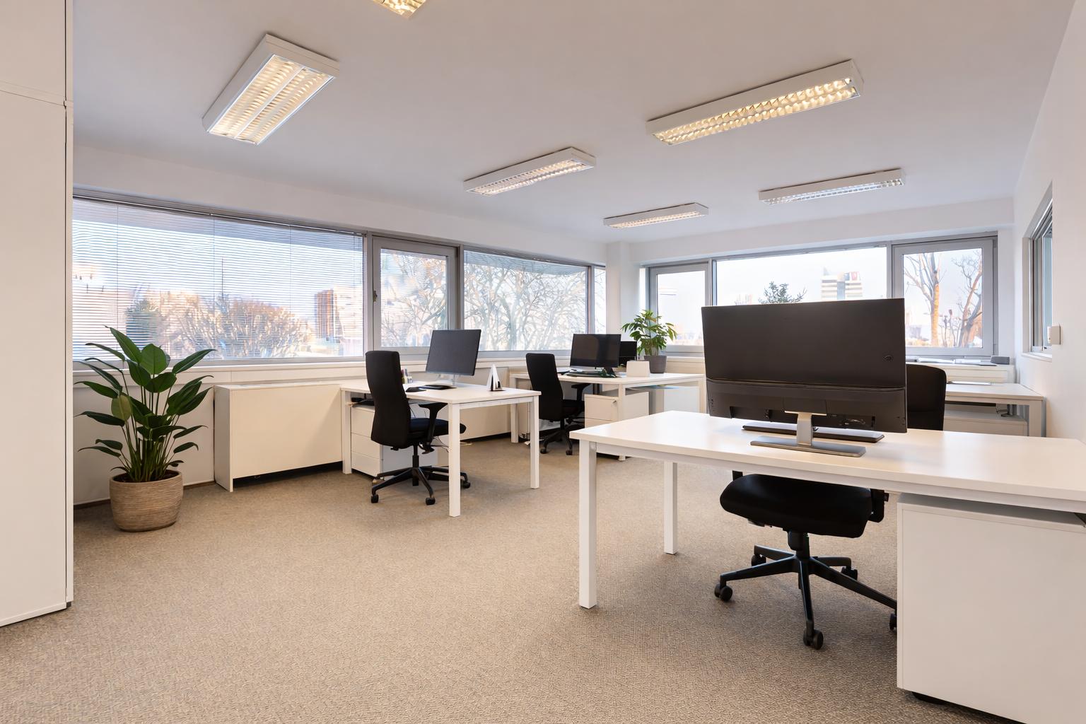 Kancelária je zariadená pre približne 6 pracovných miest, ponúka dostatok úložného priestoru a zabezpečuje komfortné pracovné prostredie.