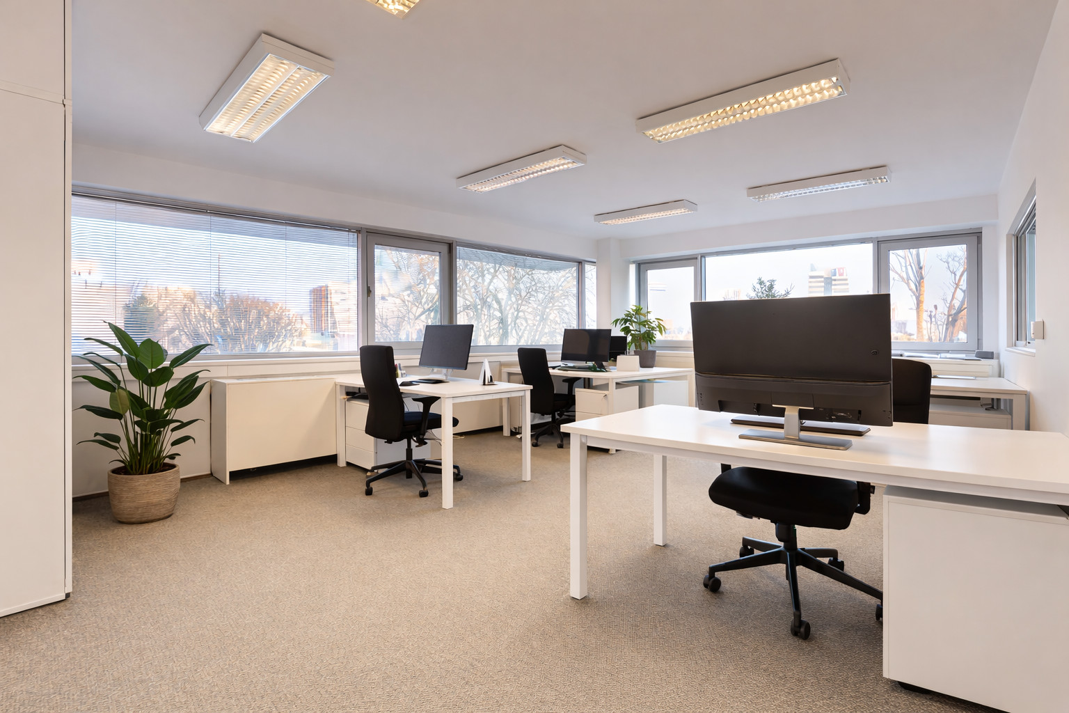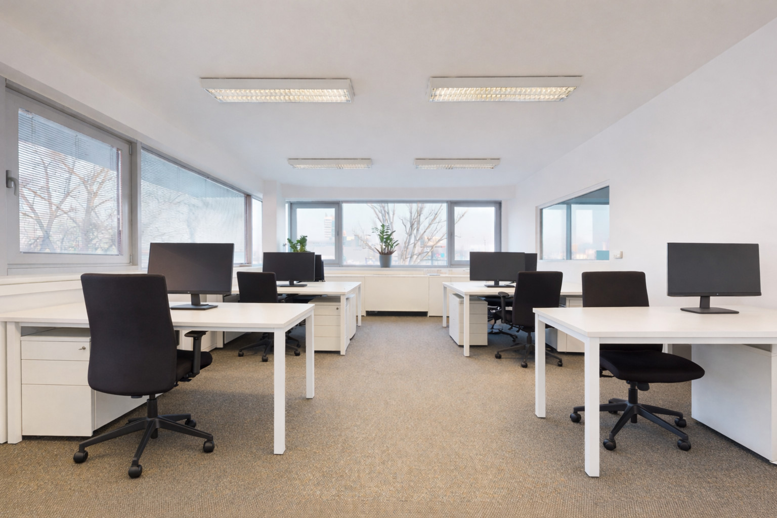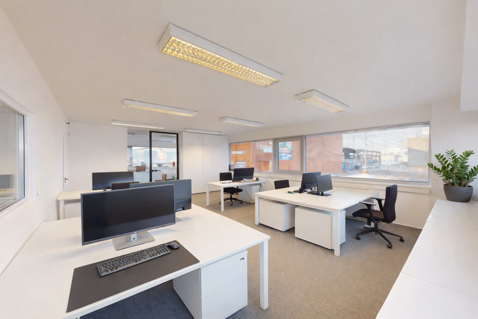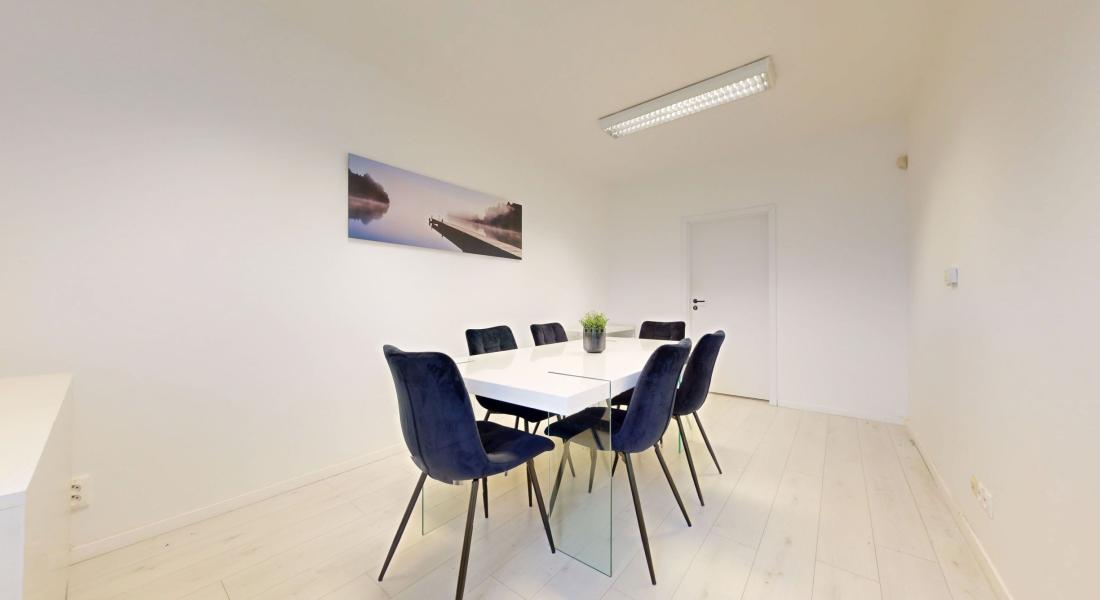 Samotná kancelária je zariadená približne pre 6 pracovných miest, ponúka dostatok úložného priestoru a vytvára komfortné pracovné prostredie pre menšiu firmu, startup alebo tím. Súčasťou nájmu je aj zasadacia miestnosť.