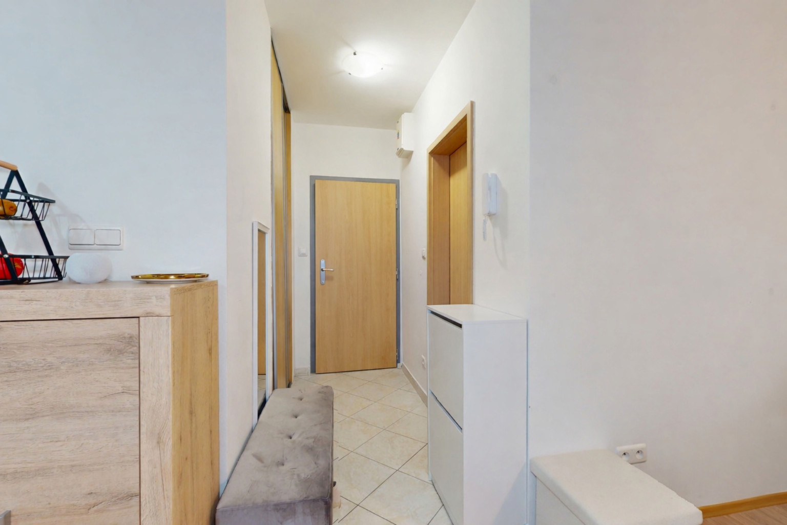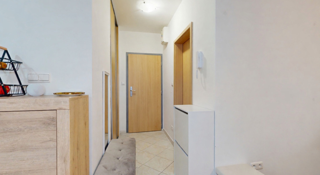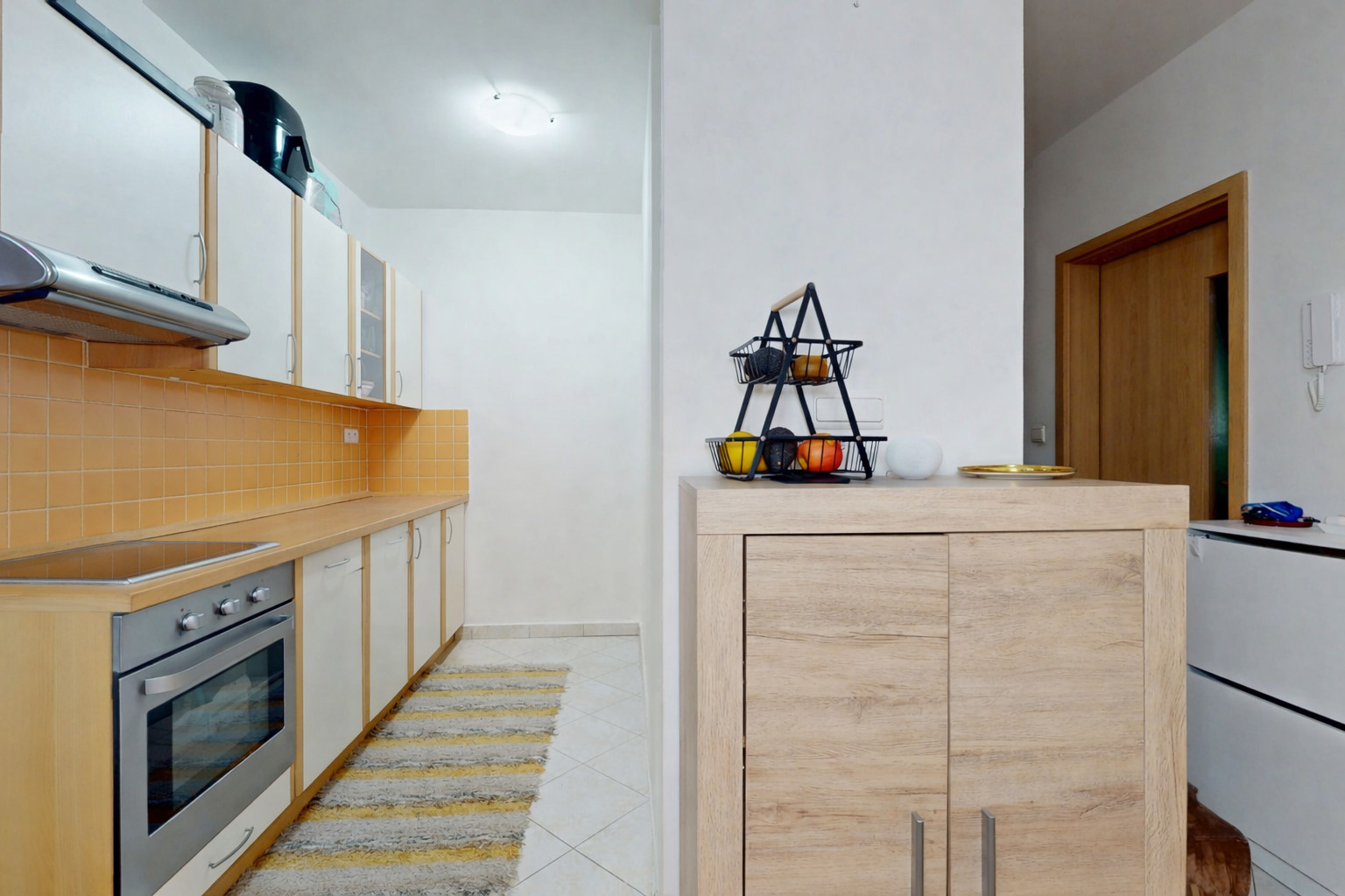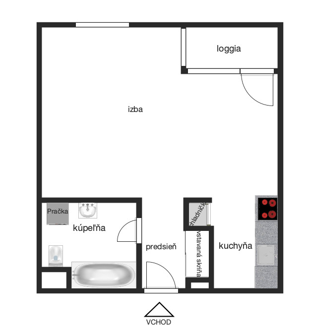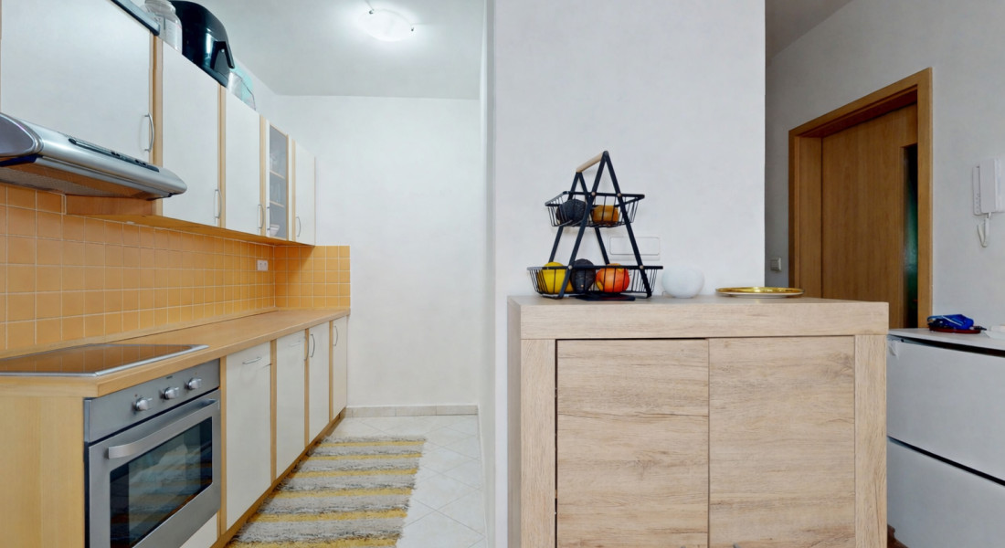 - chodba so vstavanou skriňou, obývačka spojená s kuchyňou, kúpeľňa spojená s wc.