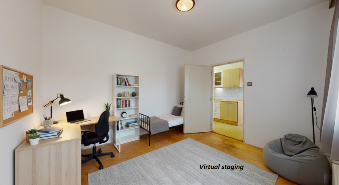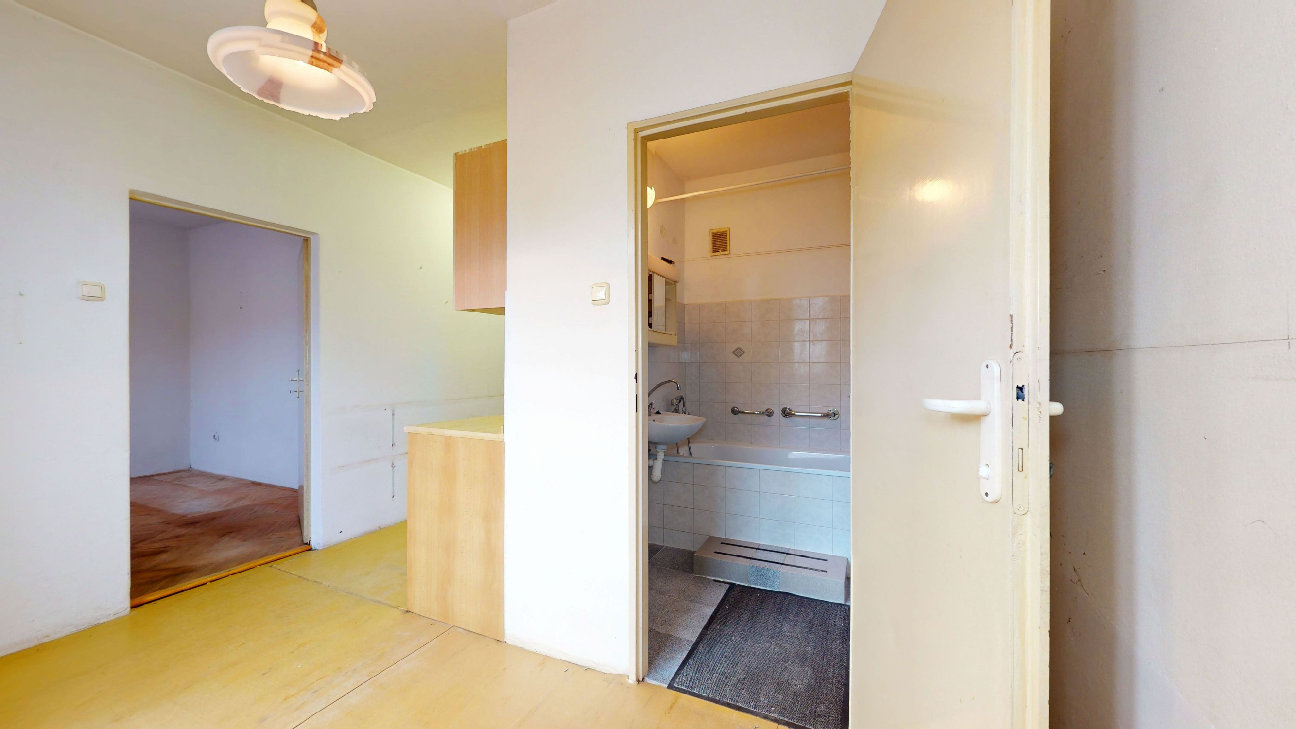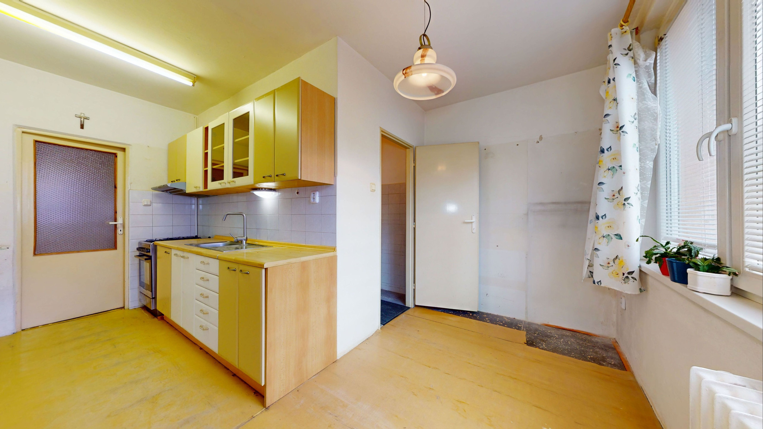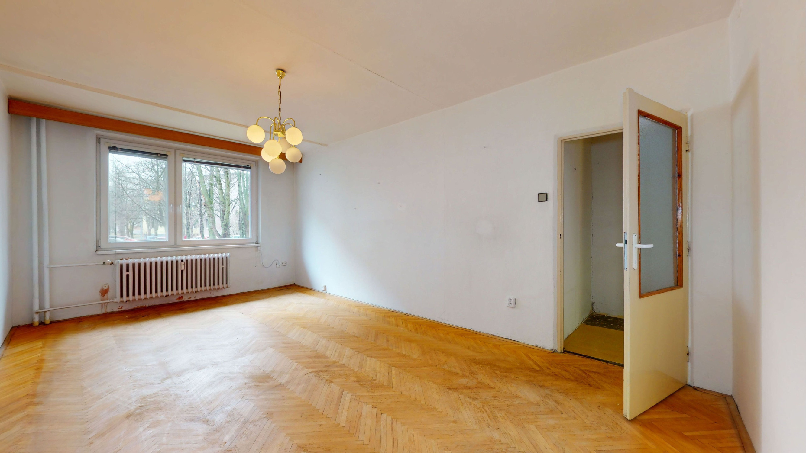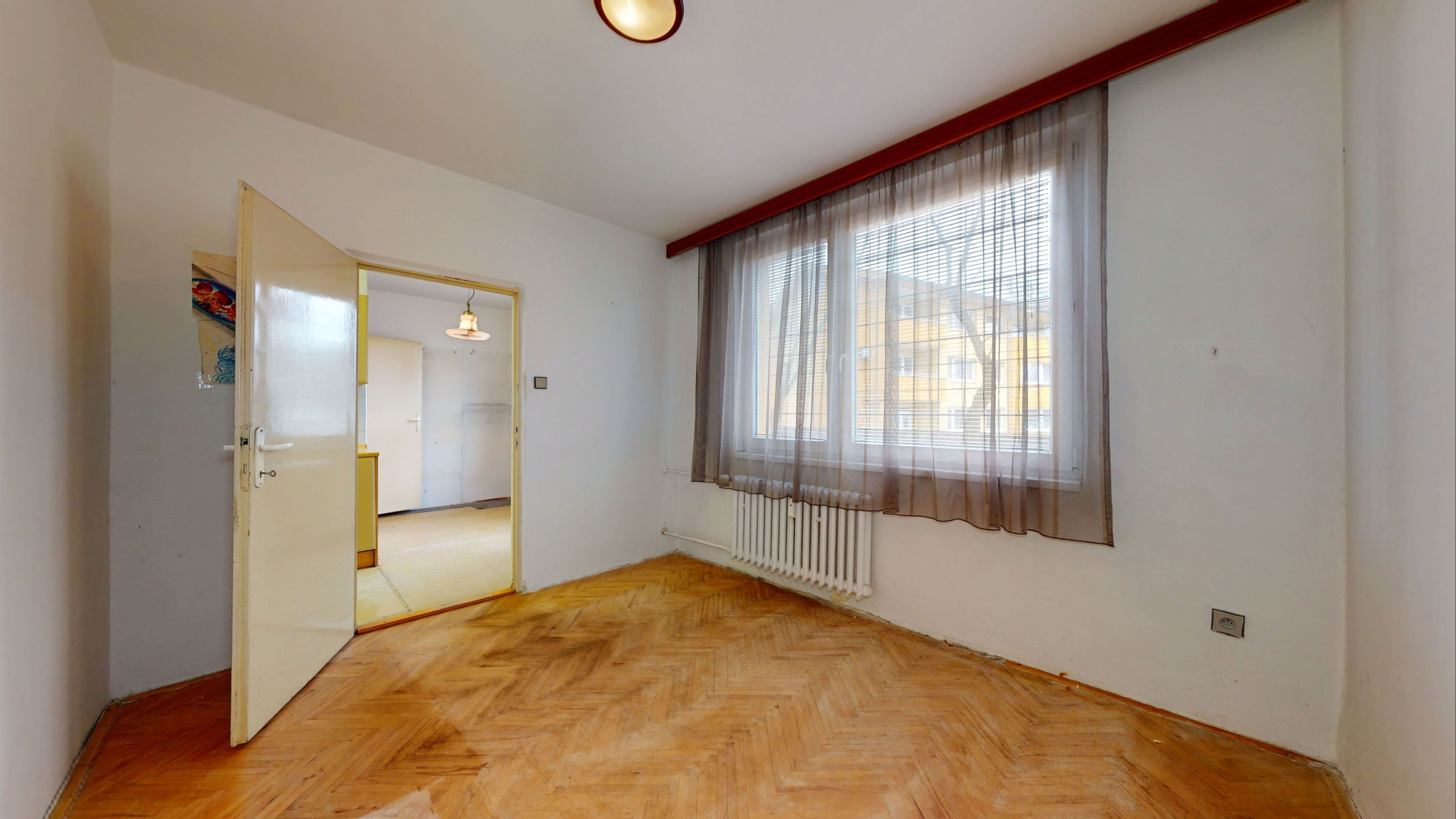 V byte sú plastové okná s interiérovými žalúziami, kúpeľňa po staršej rekonštrukcii, pôvodné drevené parkety, ostatné je v pôvodnom stave.