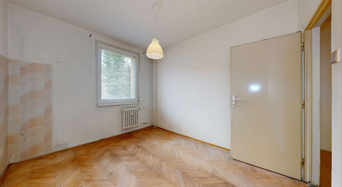 Byt sa nachádza na zvýšenom prízemí/8, pozostáva z troch samostatných izieb, prechodnej kuchyne, šatníka, kúpeľne, samostatného WC a murovanej pivnice.