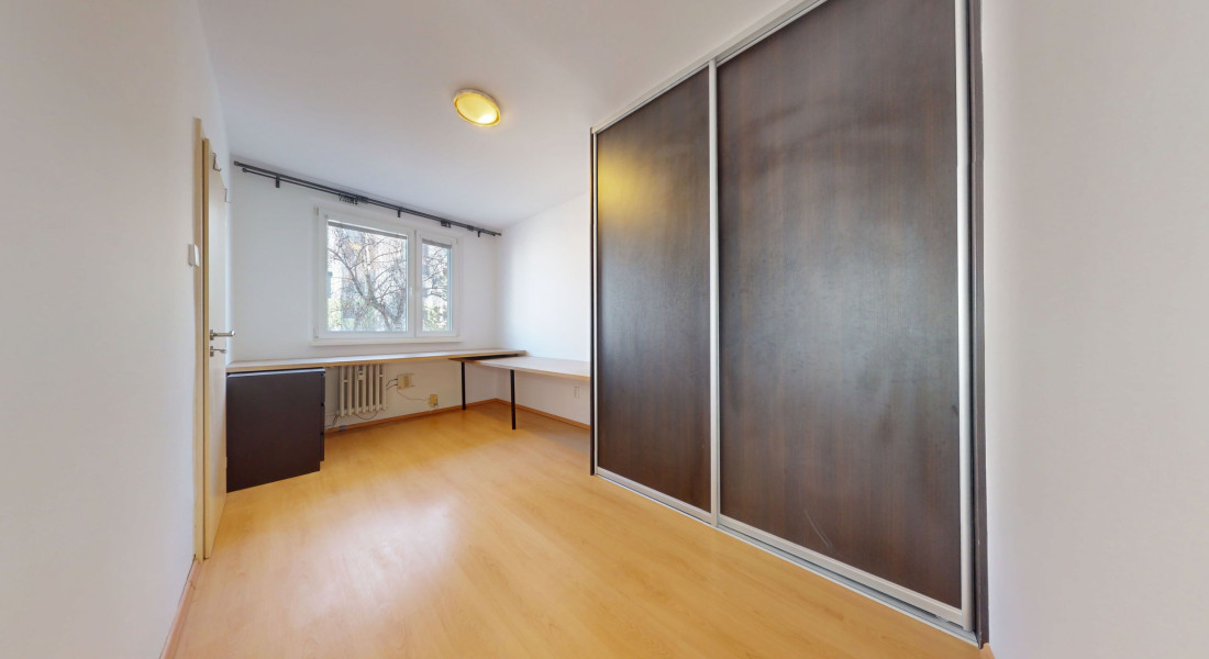 Nehnuteľnosť ma obojstrannú dispozíciu spalne do vnútrobloku plnej zelene.
