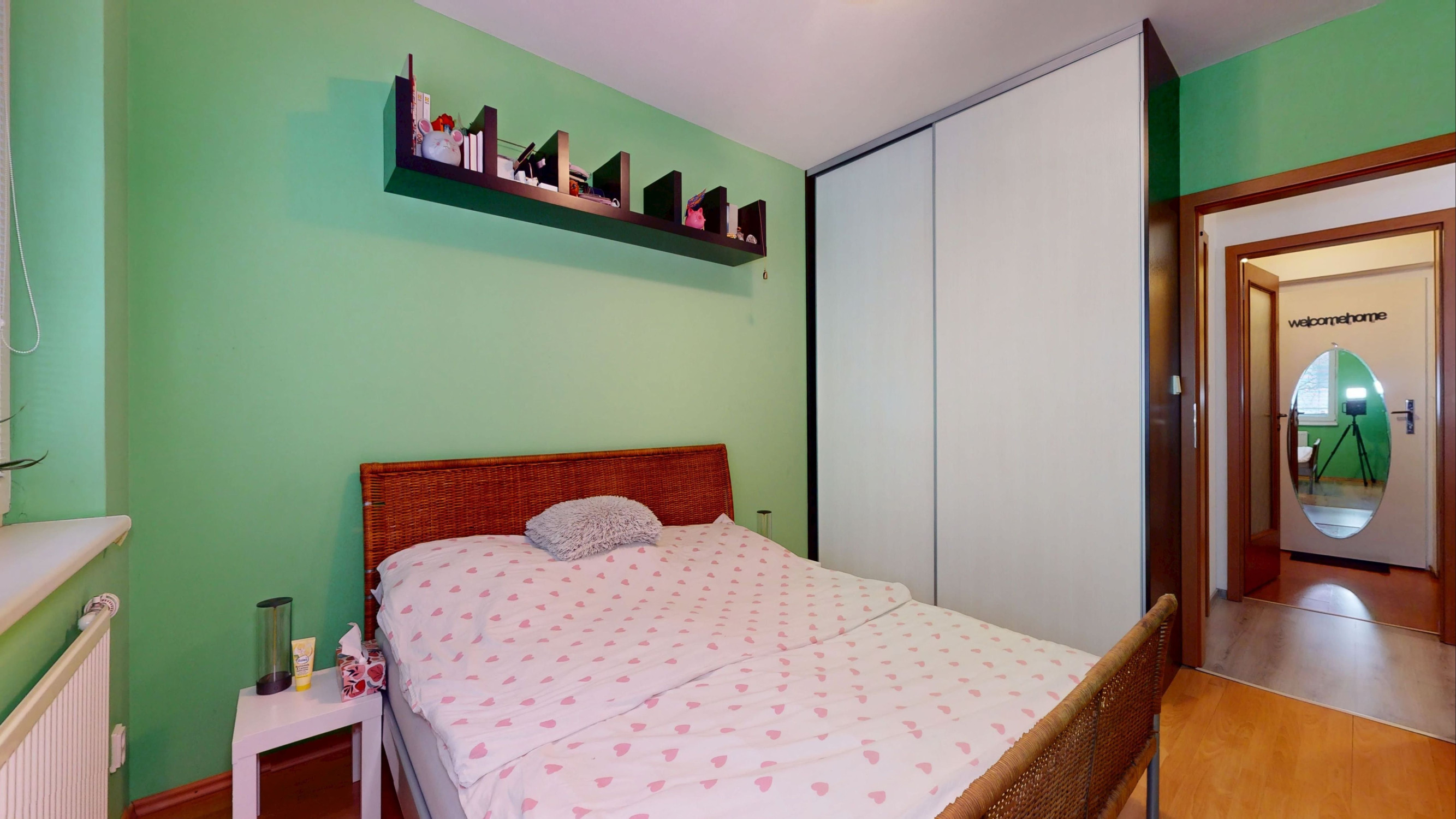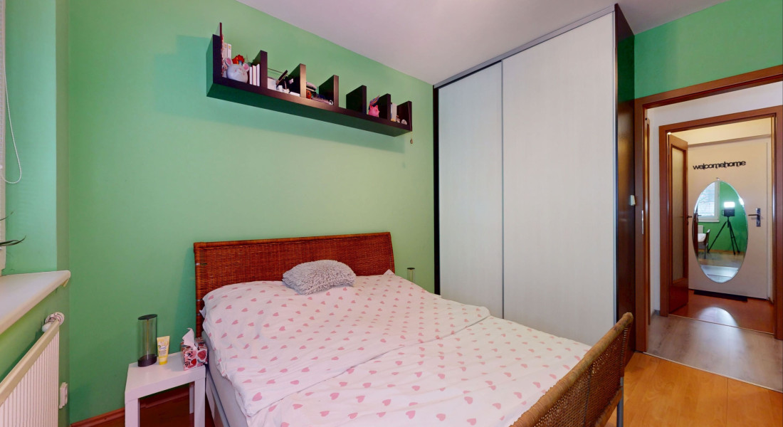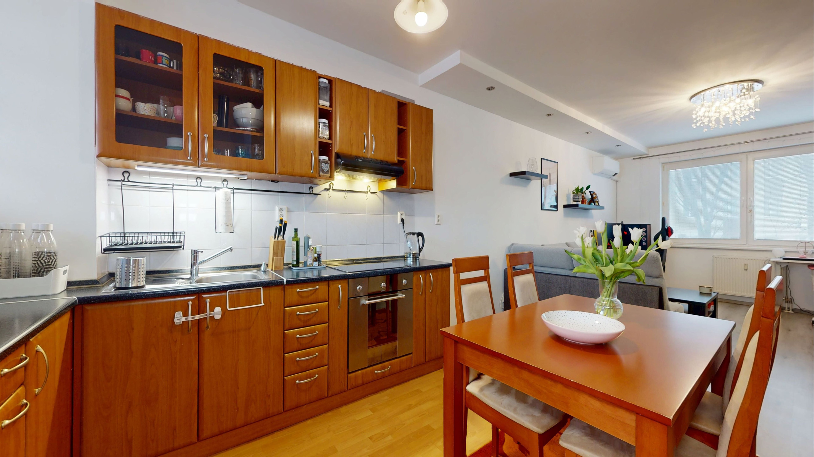 Byt pozostáva zo vstupnej chodby, obývacej izby s kuchyňou s výstupom na lodžiu, samostatnej spálne a kúpeľne s WC.