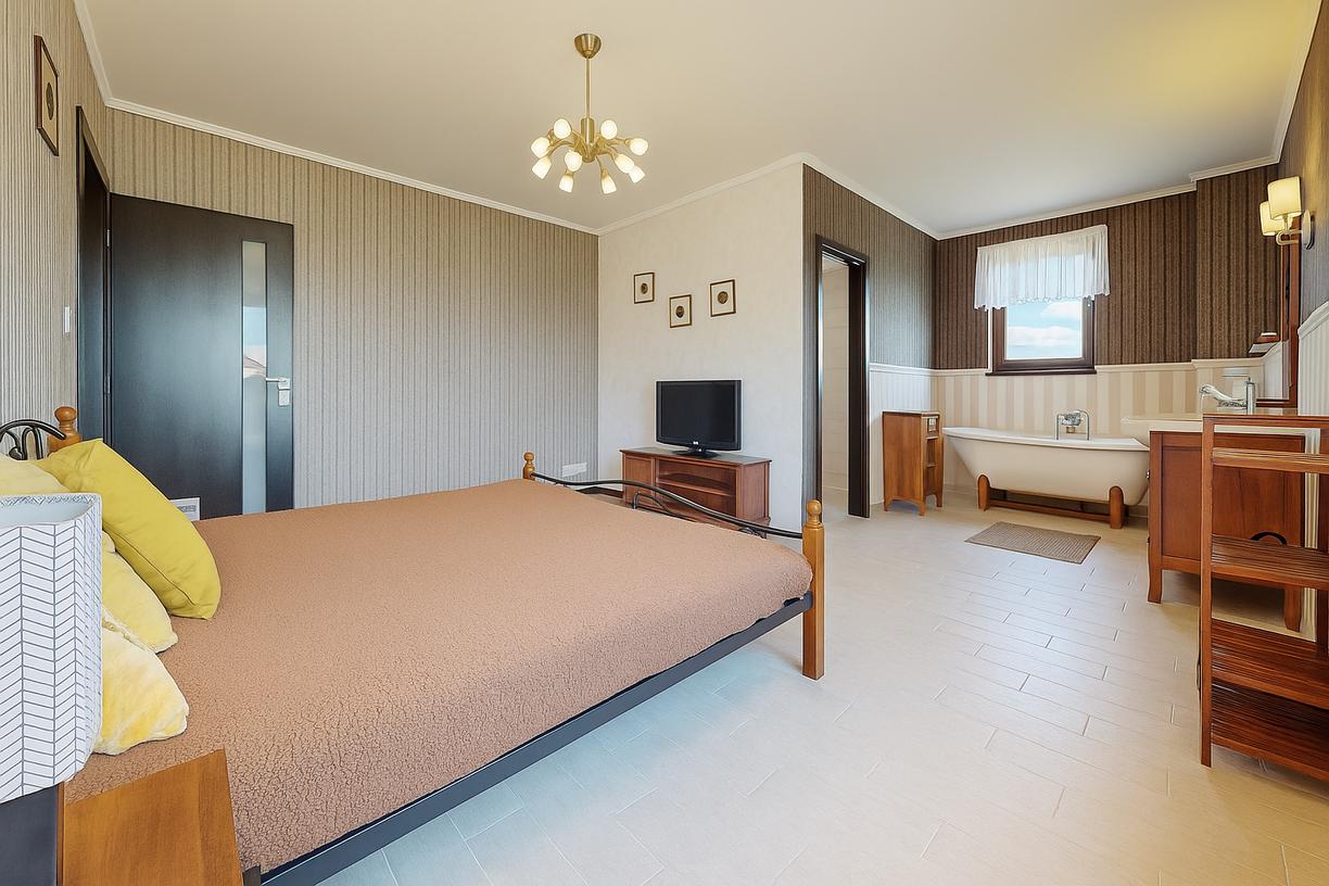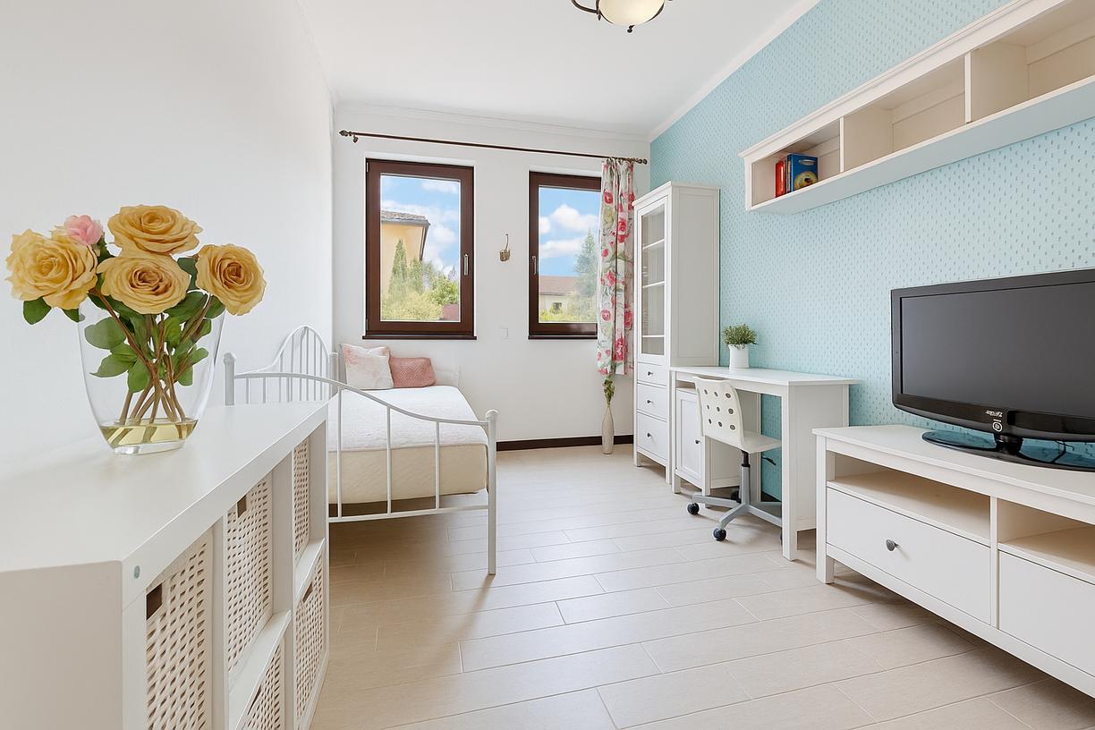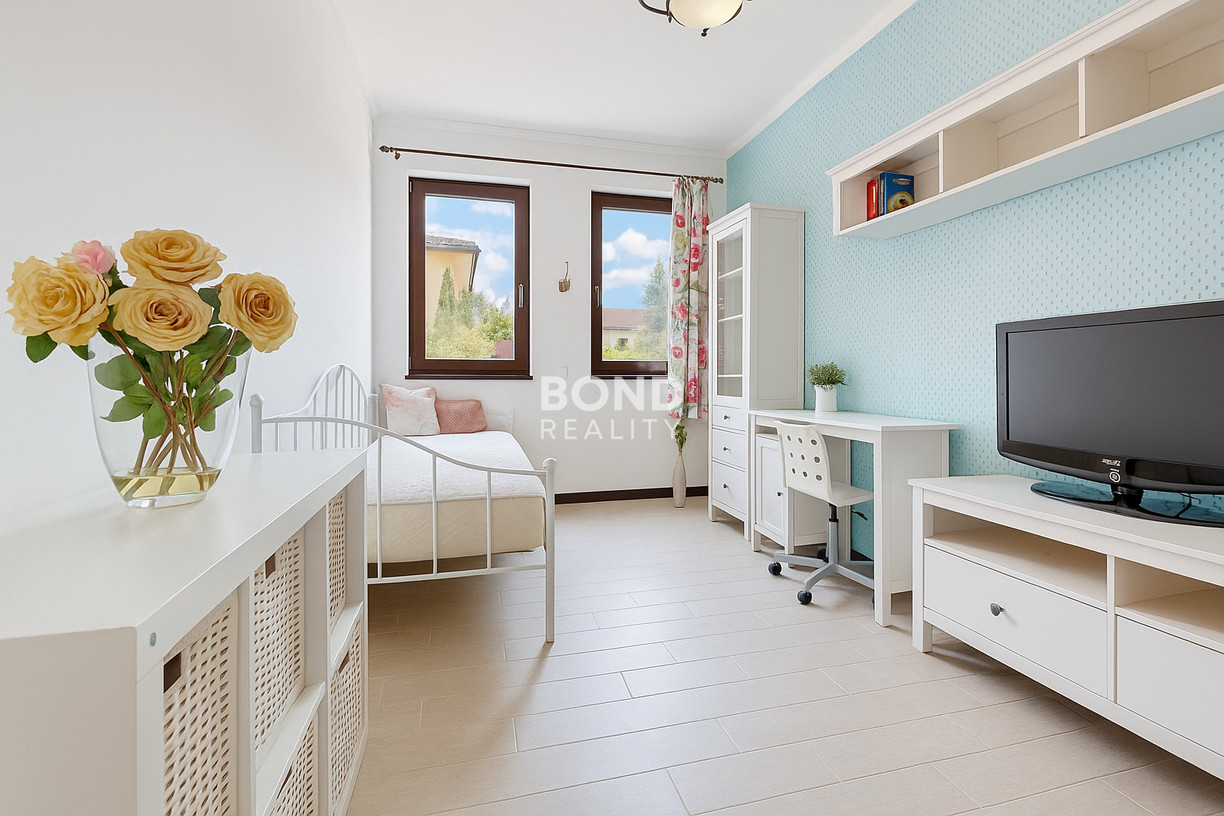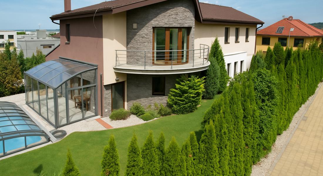 V exteriéri sa nachádza keramický bazén so zastrešením, zasklená plne otvárateľná terasa s hliníkovými profilmi, okrasná a udržiavaná záhrada so závlahou a garáž pre jedno auto. Celý pozemok pôsobí harmonicky a ponúka maximálne súkromie.