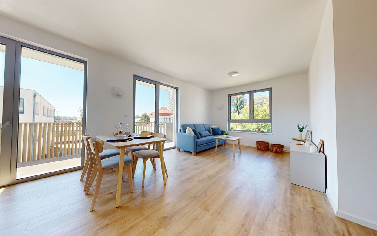 2 izbové byty majú rozlohu okolo 55m² + balkón o výmere od 5m² do 10m² alebo predzáhradky. Byty sú zariadené novým nábytkom navrhnutým architektami na mieru a v príjemných odtieňoch. Byty sú slnečné, svetlé, priestranné, klimatizované s peknými výhľadmi na okolie. Budova má 4 nadzemné podlažia. Hliníkové veľkometrážne okná s exteriérovými žalúziami. Kuchynská linka plne vybavená spotrebičmi vrátane umývačky riadu a mikrovlnky. Použité moderné a kvalitné materiály. V bytoch je podlahové kúrenie. V kúpeľni je sprchovací kút, umývadlo a príprava na práčku. Byty majú samostatné toalety. Byty spĺňajú požiadavky náročného klienta.