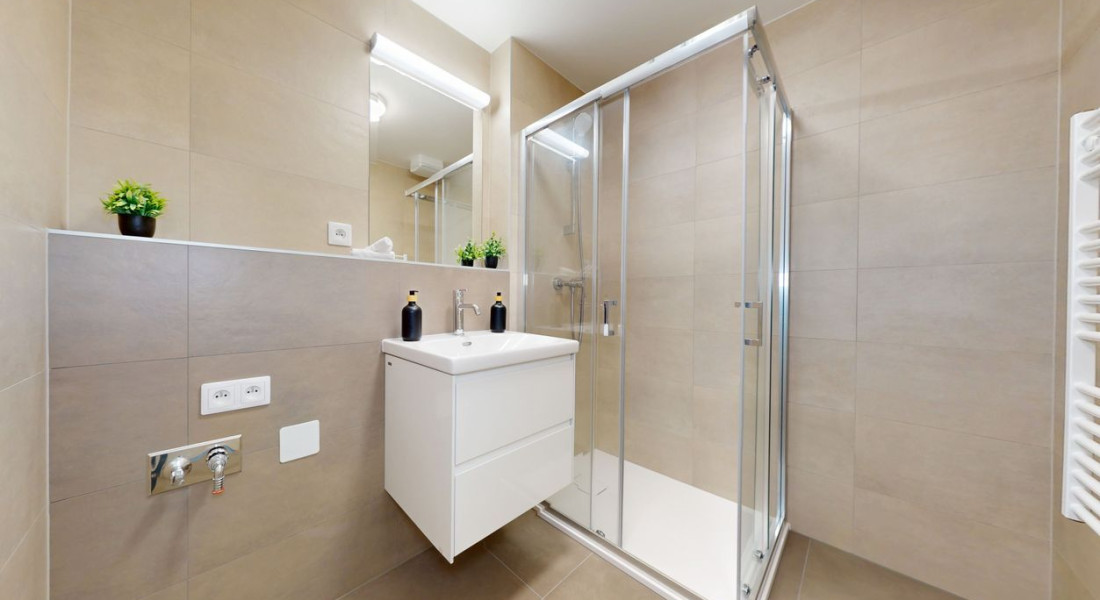 2 izbové byty majú rozlohu okolo 55m² + balkón o výmere od 5m² do 10m² alebo predzáhradky. Byty sú zariadené novým nábytkom navrhnutým architektami na mieru a v príjemných odtieňoch. Byty sú slnečné, svetlé, priestranné, klimatizované s peknými výhľadmi na okolie. Budova má 4 nadzemné podlažia. Hliníkové veľkometrážne okná s exteriérovými žalúziami. Kuchynská linka plne vybavená spotrebičmi vrátane umývačky riadu a mikrovlnky. Použité moderné a kvalitné materiály. V bytoch je podlahové kúrenie. V kúpeľni je sprchovací kút, umývadlo a príprava na práčku. Byty majú samostatné toalety. Byty spĺňajú požiadavky náročného klienta.