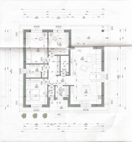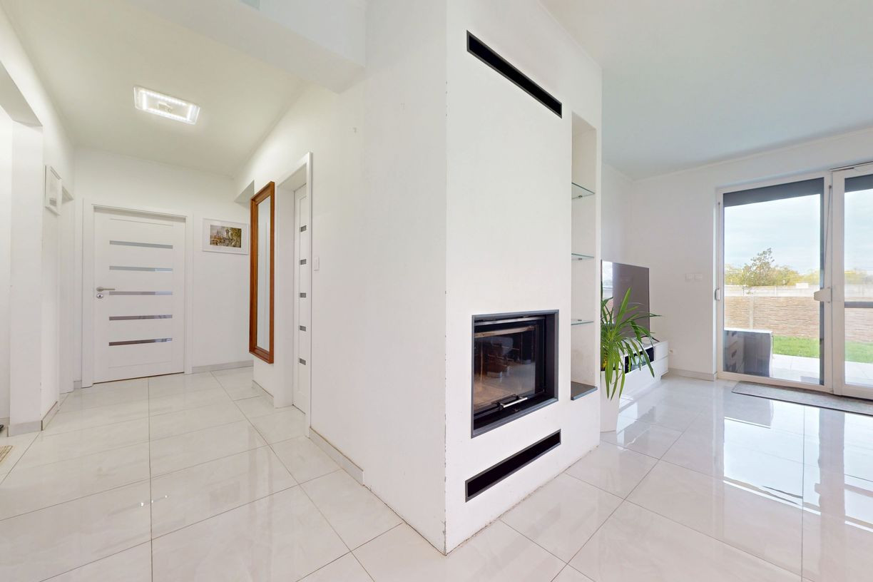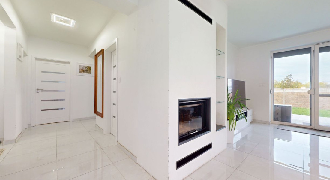 - priestranná obývacia izba s krbom prepojená s kuchyňou a jedálenskou časťou s výstupom na terasu