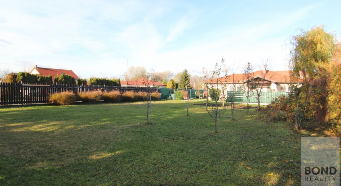 Na pozemku výborného štvorcového tvaru so šírkou od cesty 28m a dĺžkou v najdlhšej časti 30m (viď foto mapa), s príjazdom po celej šírke, je zavedená elektrina (230/380 V), vlastná vŕtaná studňa, polozapustená pivnica. V obecnej komunikácii pred pozemkom je prípojka na obecnú vodu a kanalizáciu. Pozemok je komplet oplotený a momentálne sa nachádza na ňom voľne stojaca menšia záhradná chatka.