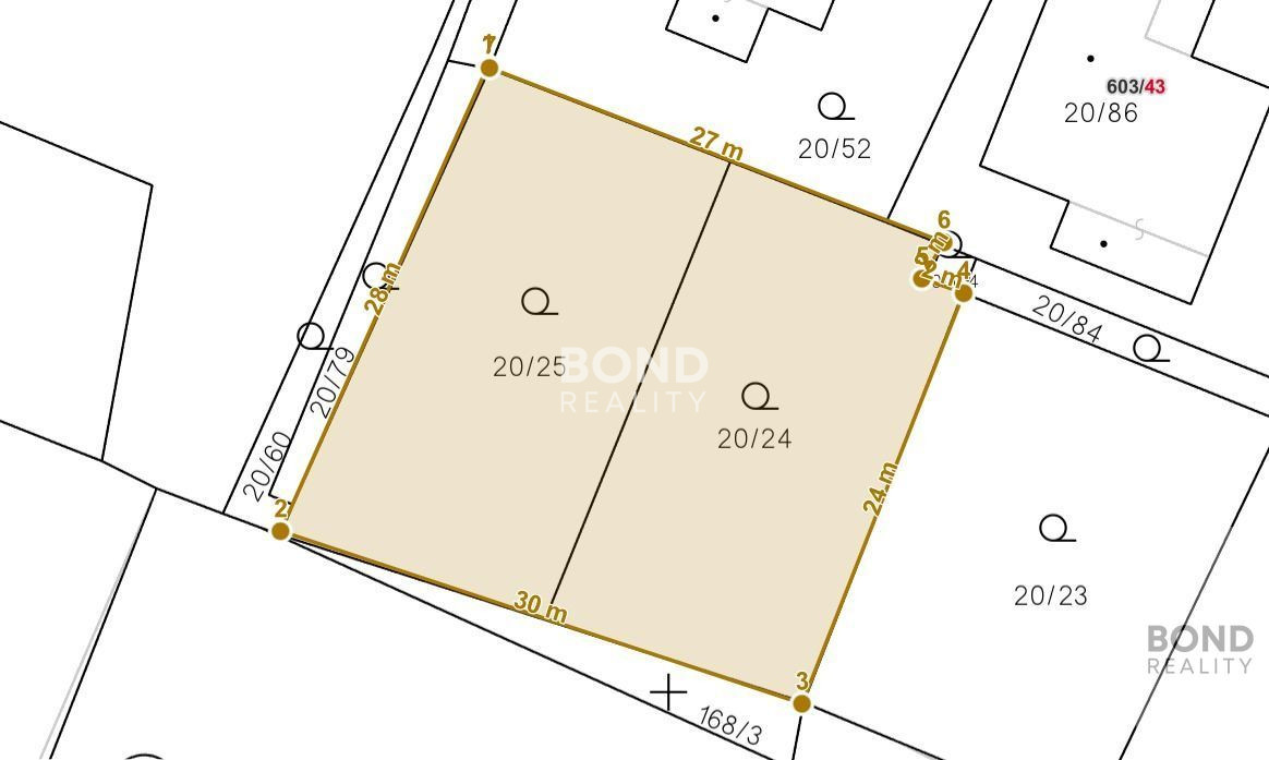 Na pozemku sa dá bez problémov postaviť rodinný dvojdom (alebo rodinný dom s dvoma bytovými jednotkami).