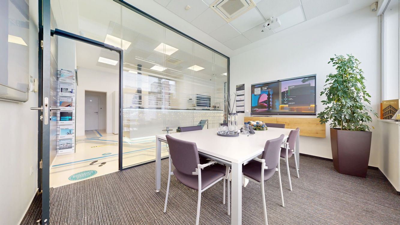 ADMINISTRATÍVNE PRIESTORY pozostávajú z recepcie, zasadacej miestnosti, archívu, serverovne, sociálneho zázemia a viacerých samostatných kancelárií. Ide o moderné priestory vybavené klimatizáciou, kompletnou IT infraštruktúrou (štruktúrovaná kabeláž, optické pripojenie, telefónne linky) a ponúkajú flexibilné možnosti dispozičného prispôsobenia podľa potrieb nájomcu.