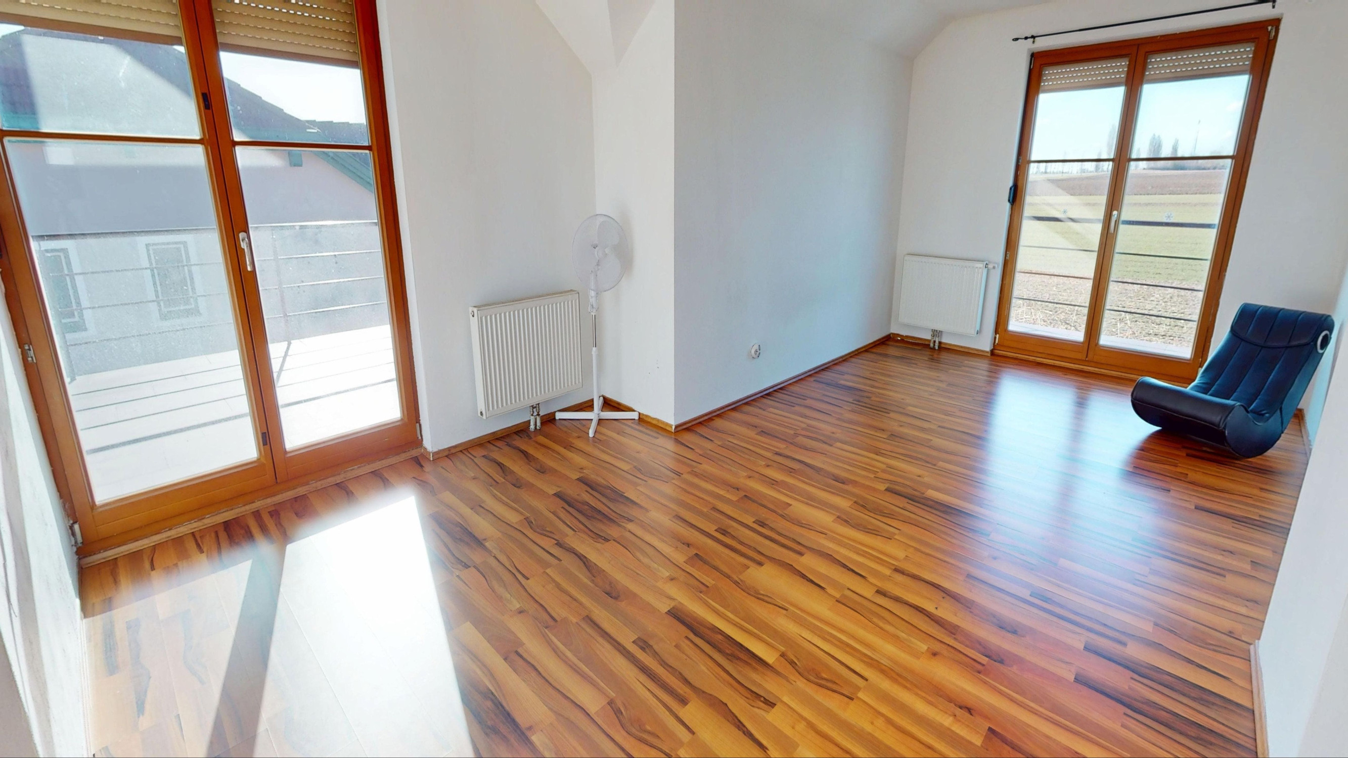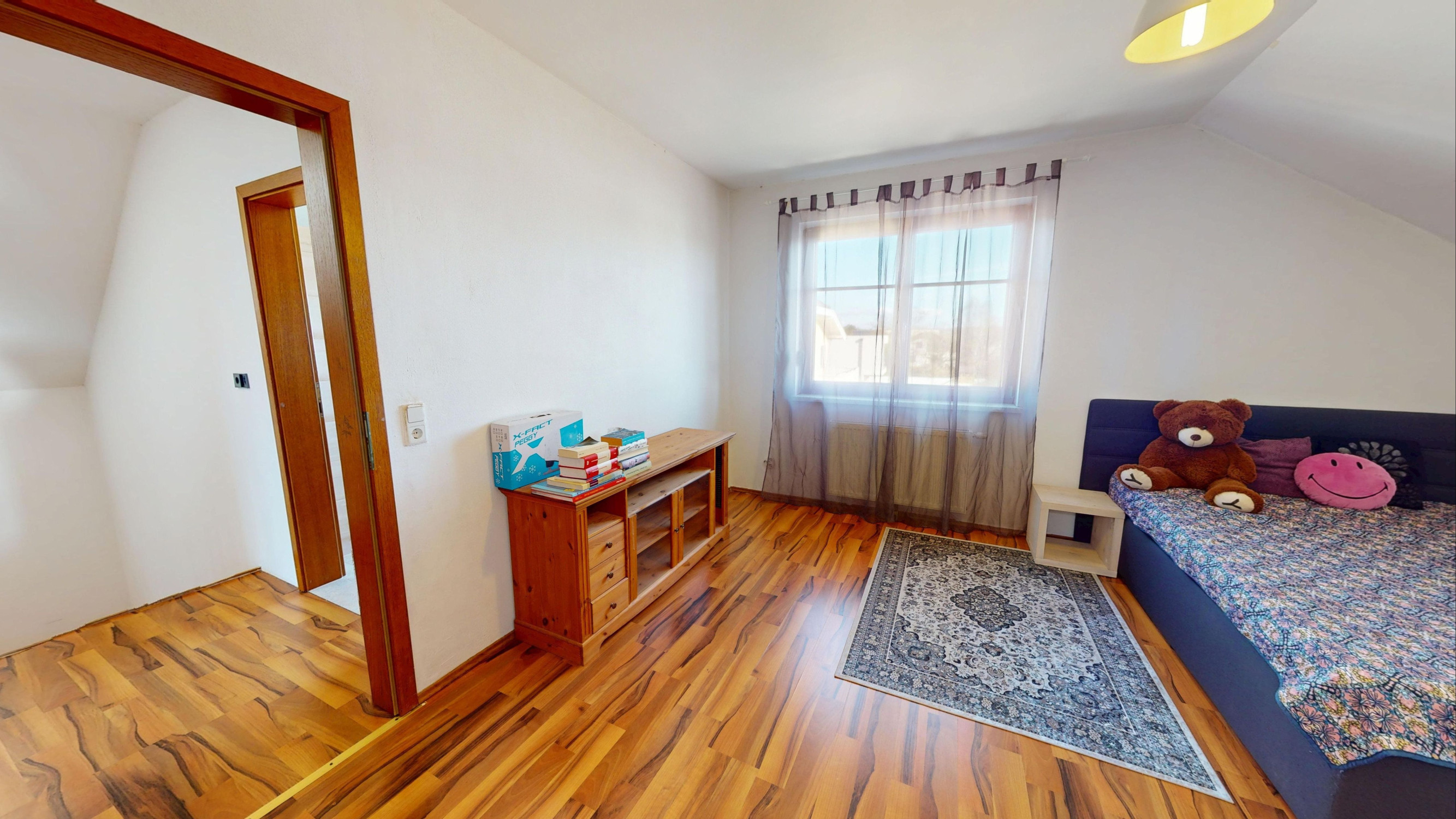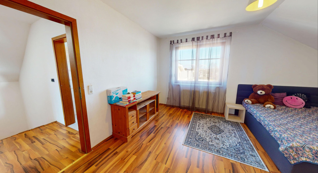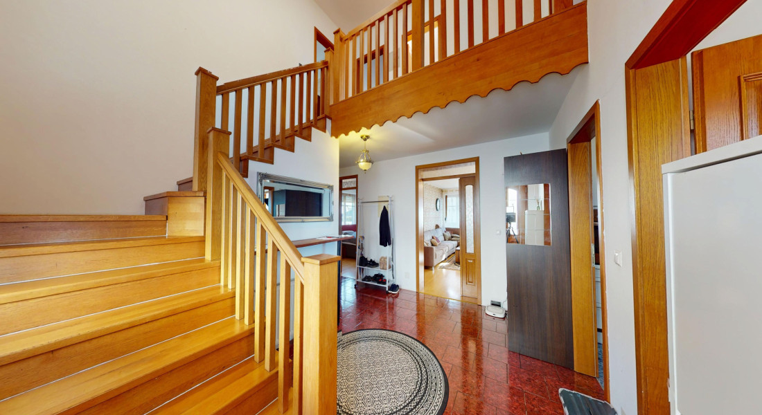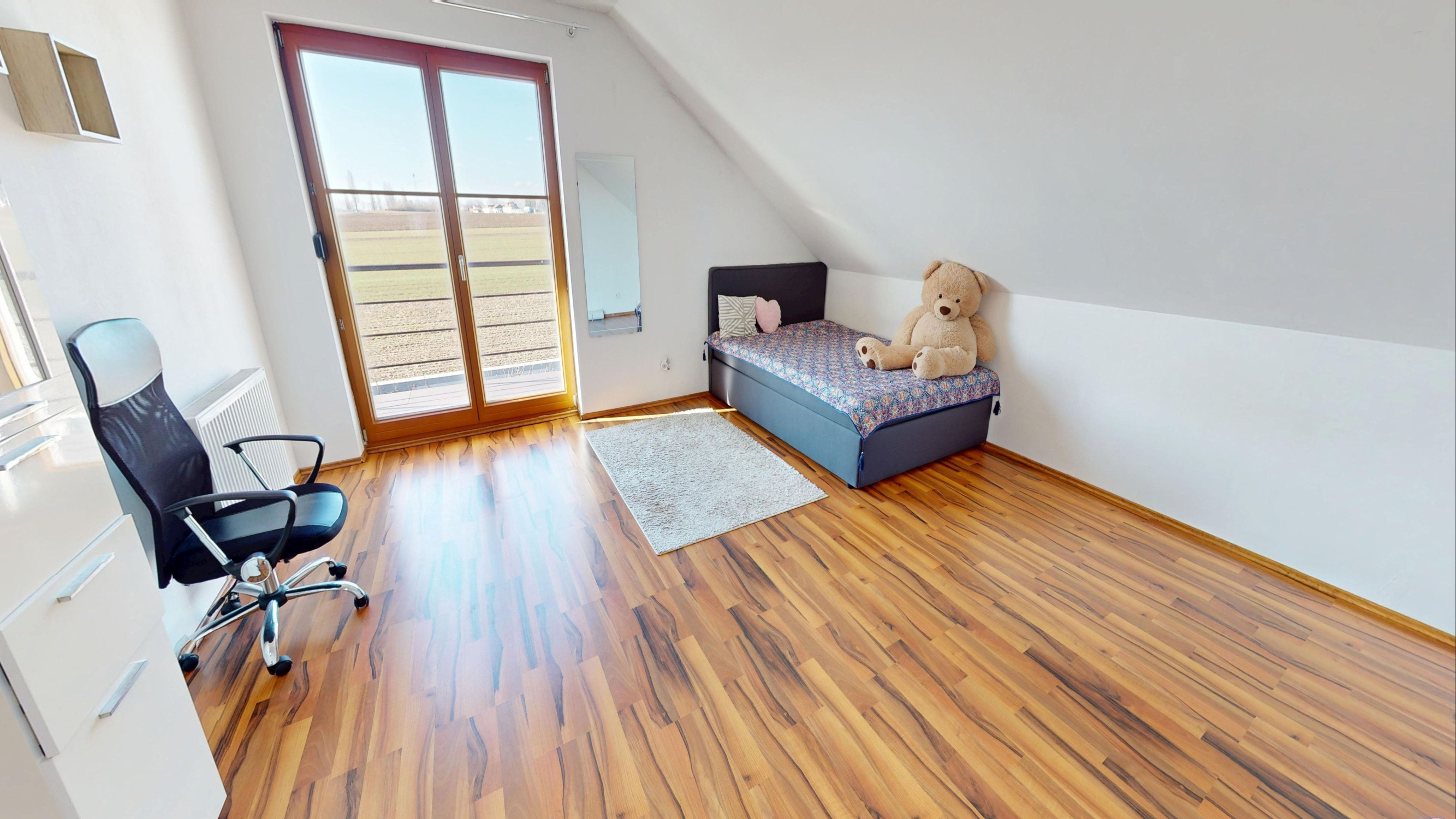 Horné podlažie ponúka viacero svetlých izieb a ideálne riešenie pre deti, hostí alebo samostatnú bytovú zónu.