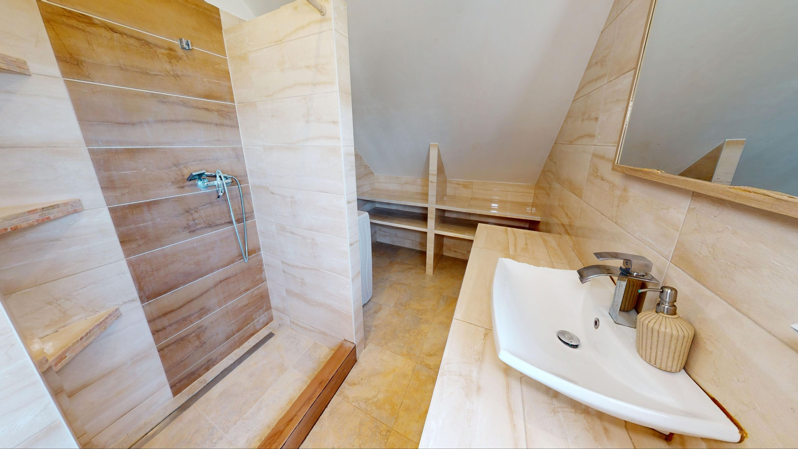 Nachádzajú sa tu dve veľké spálne so vstupom na balkón, nádherný otvorený výhľad do okolia, ďalšia spálňa s výhľadom do predzáhradky a kúpeľňa s WC a sprchou.