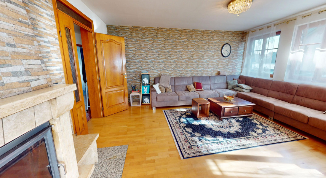 Po vstupe vás privíta priestranná vstupná hala, z ktorej sú prakticky dostupné všetky miestnosti. Srdcom domu je veľká obývacia izba s krbom, ktorý vytvára príjemnú atmosféru domova počas celého roka.