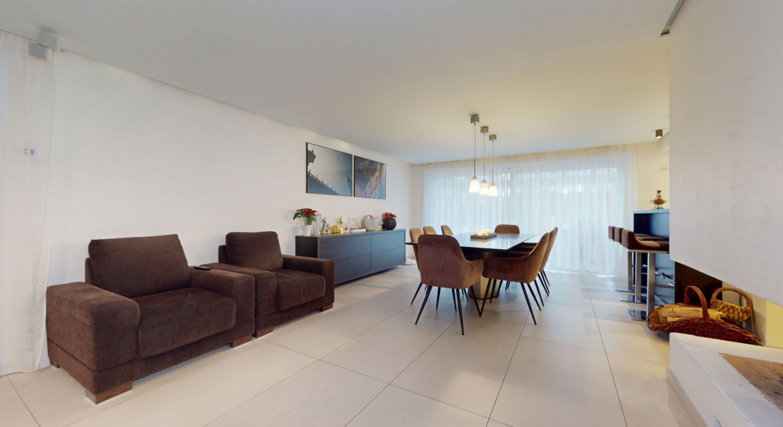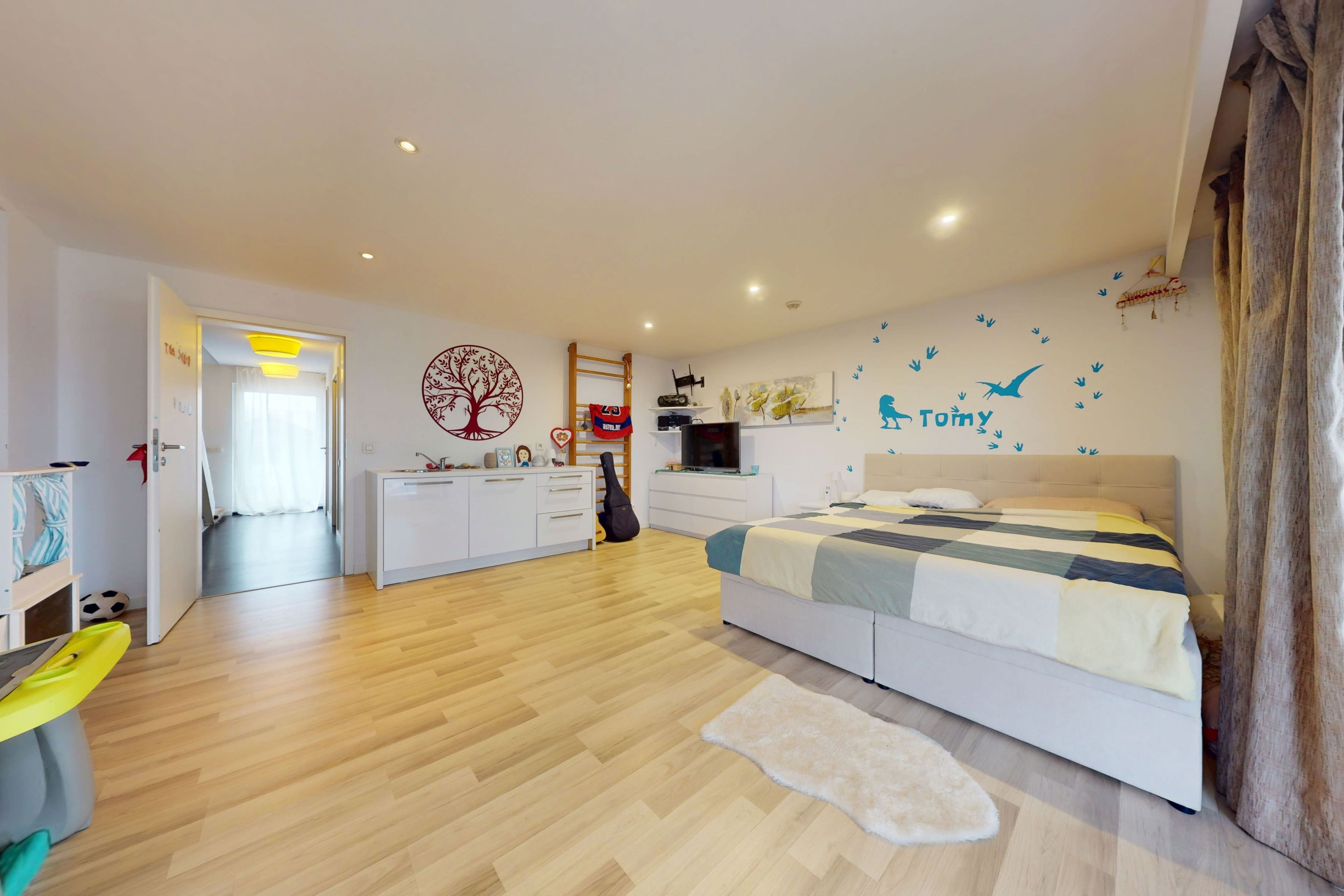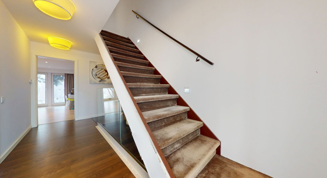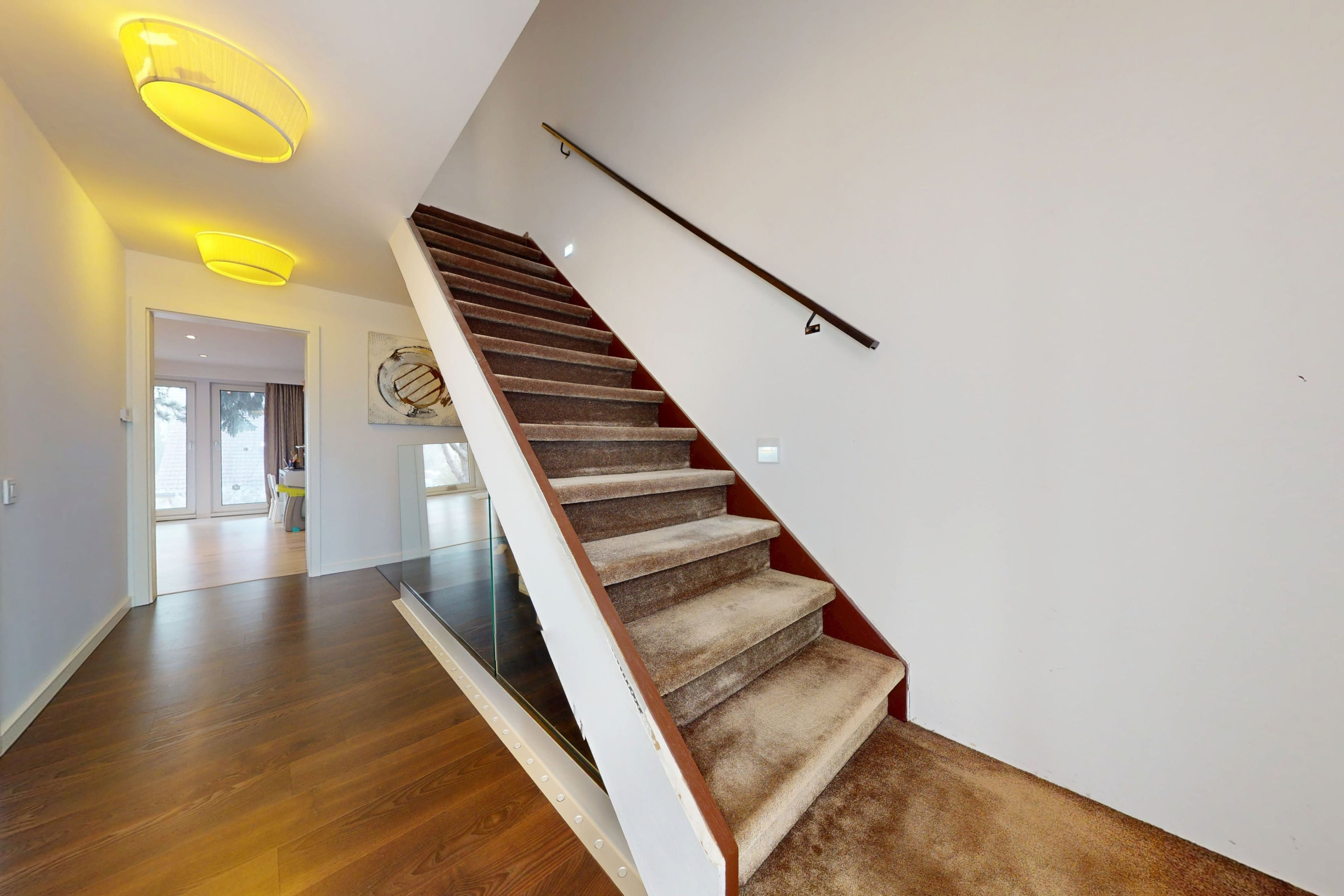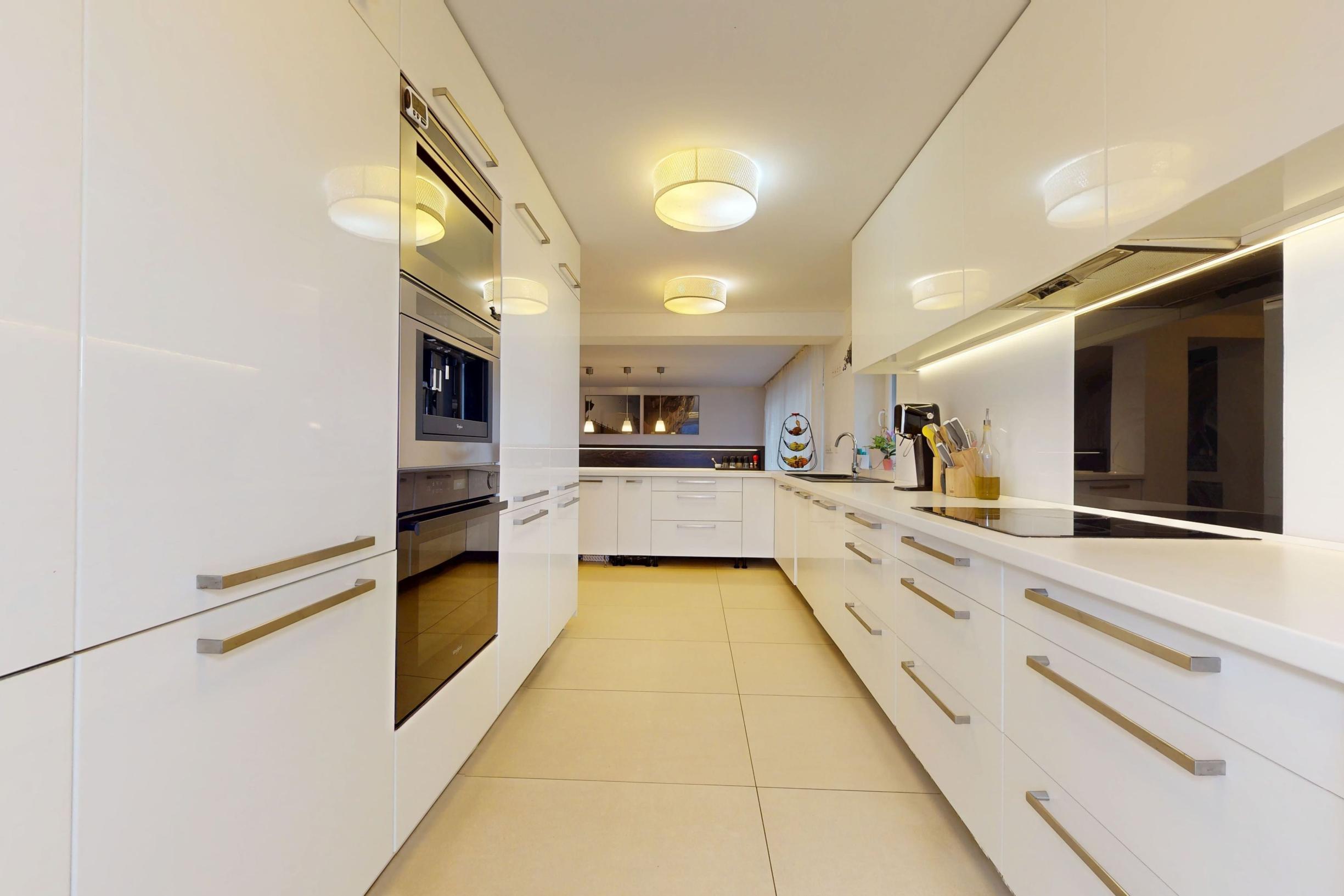 Dispozícia je logicky rozdelená na reprezentatívnu dennú časť a súkromnú nočnú zónu. Interiér pôsobí vzdušne, elegantne a nadčasovo, s dôrazom na komfort a funkčnosť. K dispozícii sú 3 kúpeľne, 4 toalety a dostatok úložného priestoru.