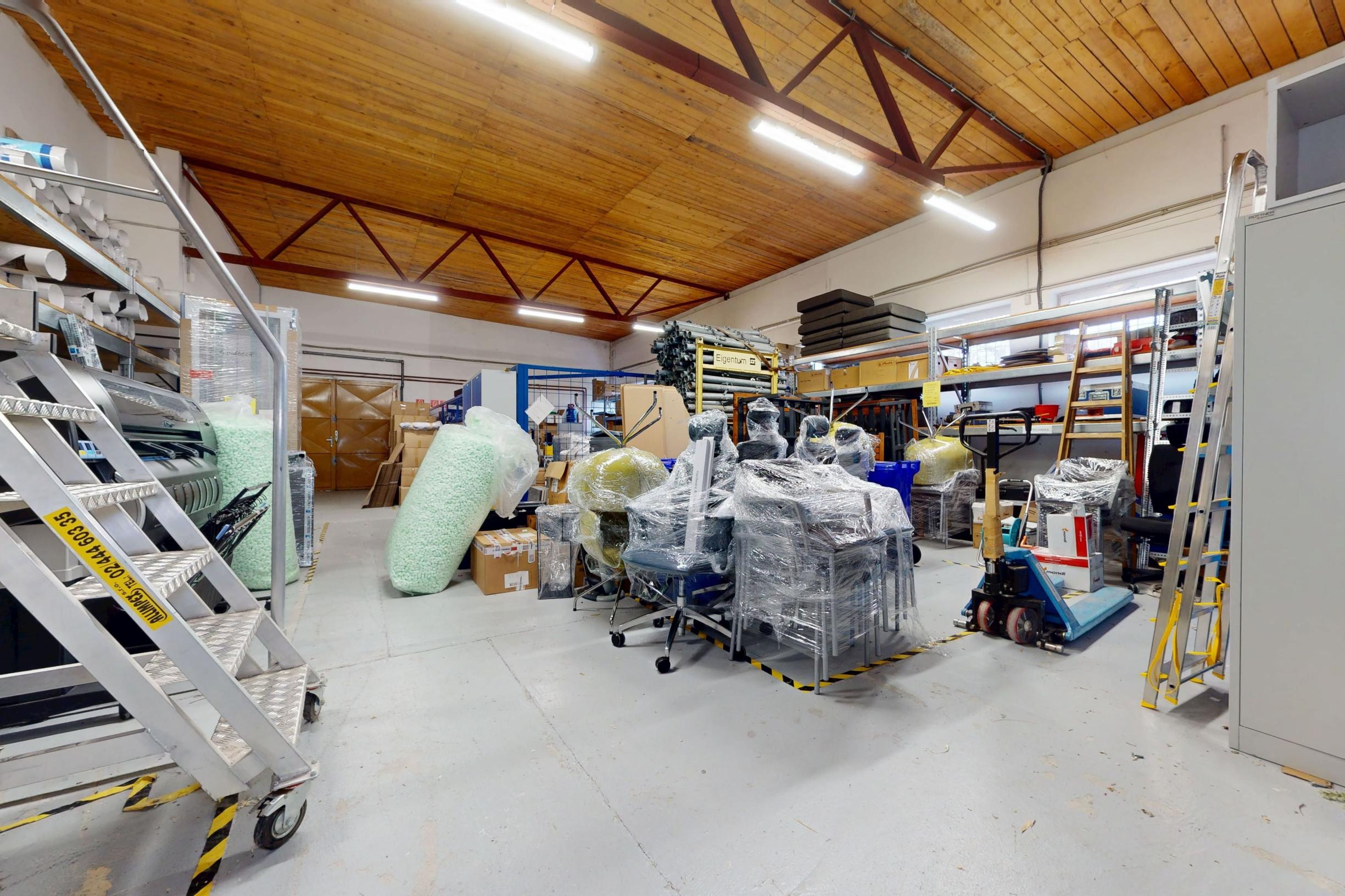 SKLADOVÉ PRIESTORY o výmere cca 600 m², tvoria vykurovaný sklad a archív s elektrickým pripojením 220 V aj 380 V, sú vhodné pre logistické aj technické prevádzky.