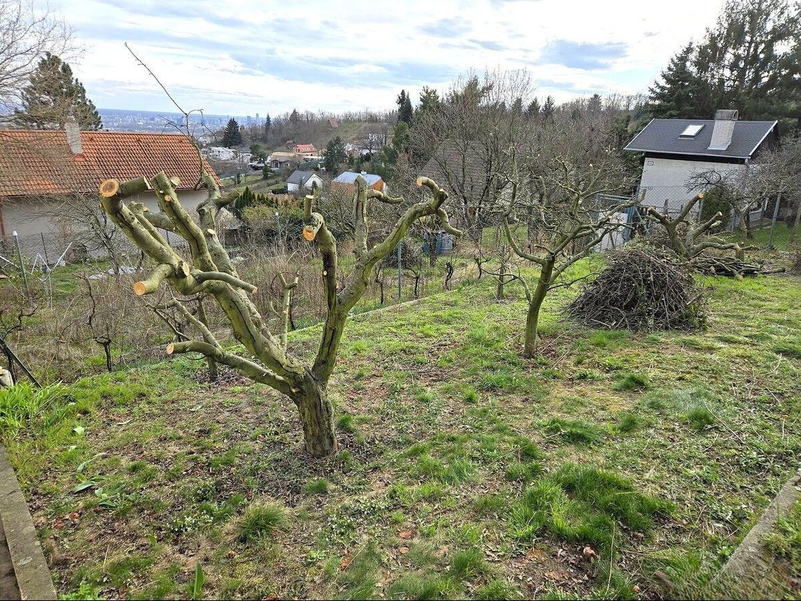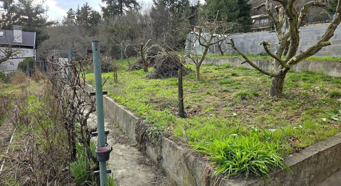 Súčasťou predaja je aj spoluvlastnícky podiel o výmere 43 m² na prístupovej ceste, čo zabezpečuje bezproblémový prístup autom priamo k pozemku. Na pozemku rastie množstvo ovocných stromov – jablone, hrušky, broskyne, veľká čerešňa, ako aj rôzne druhy drobného ovocia (egreše, maliny, černice). Príjemné záhradné prostredie dopĺňa veľká zberná nádoba na dažďovú vodu, skleník, priestor na uskladnenie dreva, kôlnička na náradie a ďalšie praktické prvky.