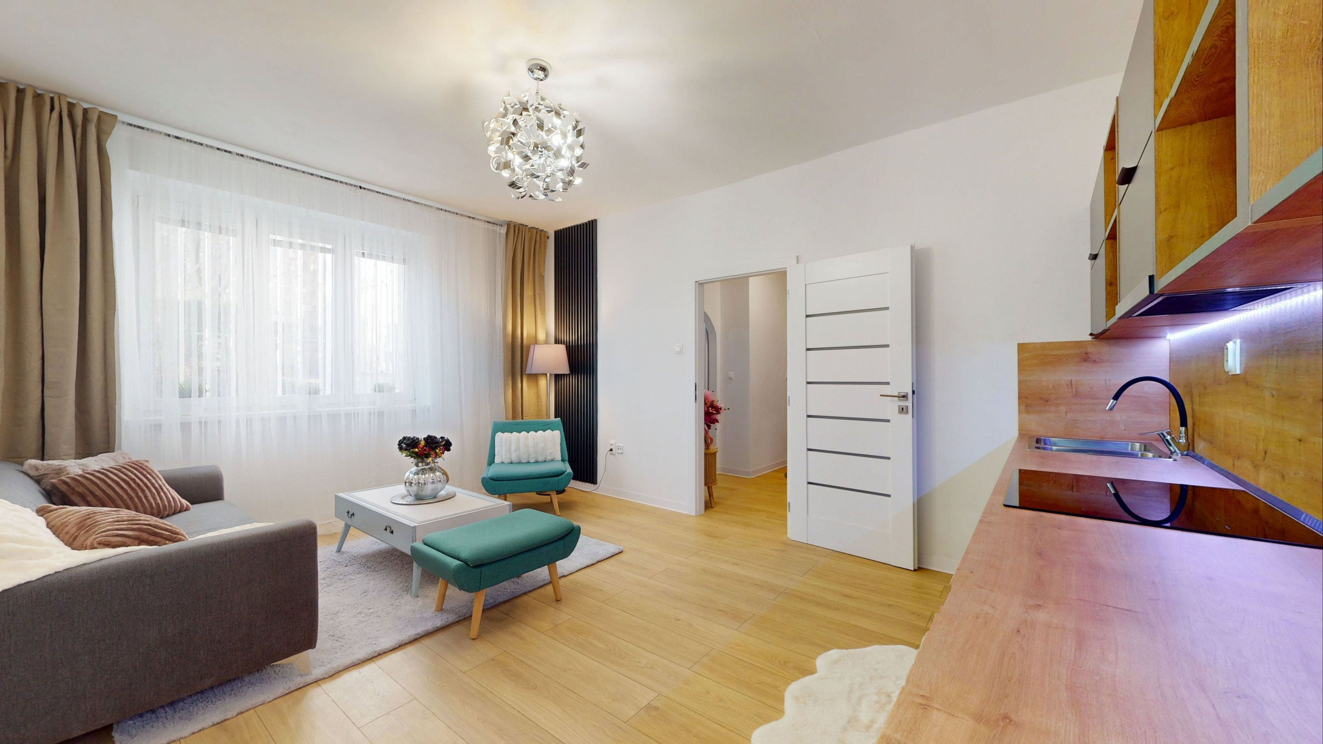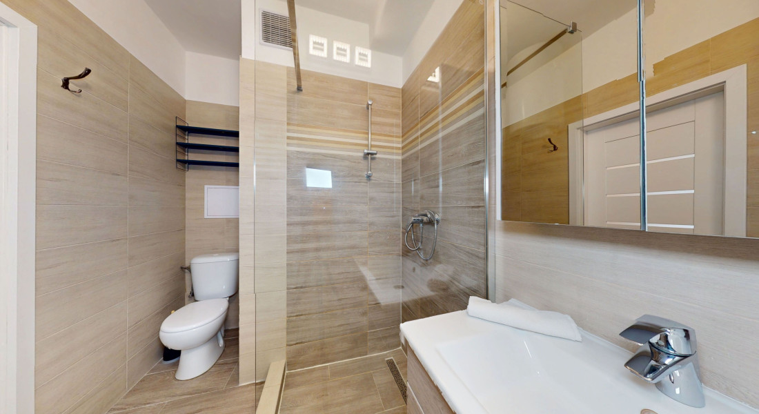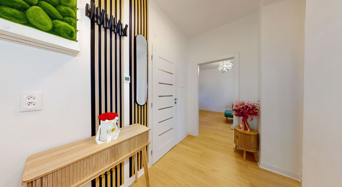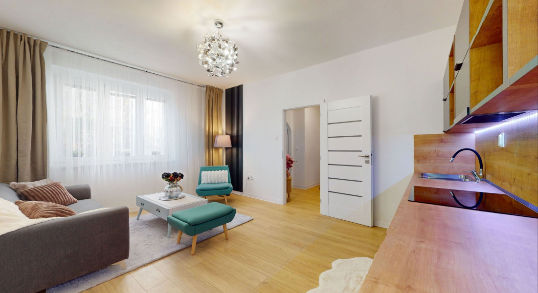 V rámci rekonštrukcie bytu v roku 2019 boli vymenené elektrické rozvody (revízna správa), rozvody vody a odpadu, obklady, dlažba, sanita, umývačka riadu. V decembri 2025 nové stierky, maľovky, laminátové parkety, interiérové dvere vrátane zárubní, kuchynská linka vrátane spotrebičov (indukčná varná doska, elektrická rúra, digestor), svietidlá. V byte sú plastové okná. Ohrev teplej vody zabezpečuje elektrický bojler umiestnený v kúpeľni. Vykurovanie elektrické podlahové.