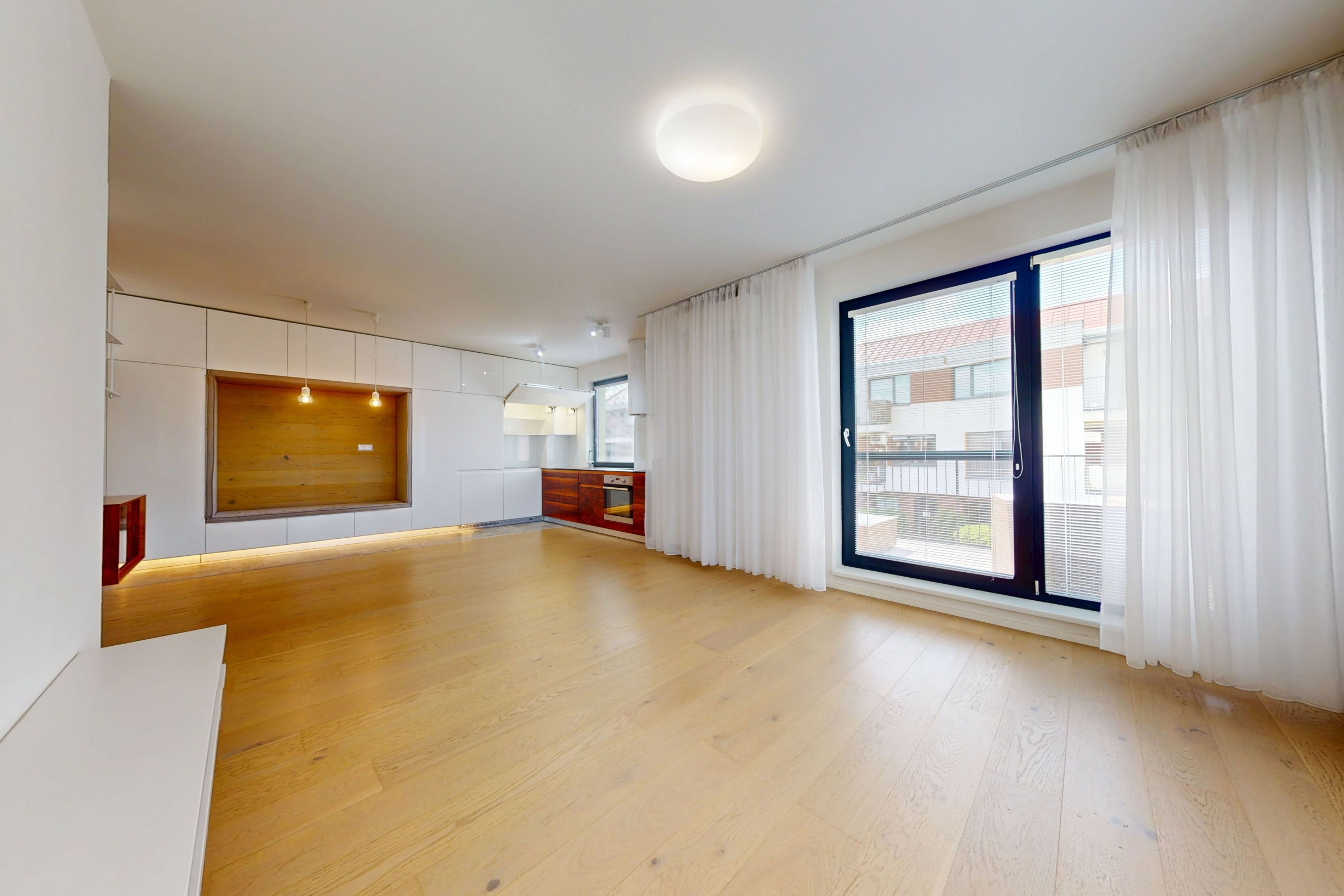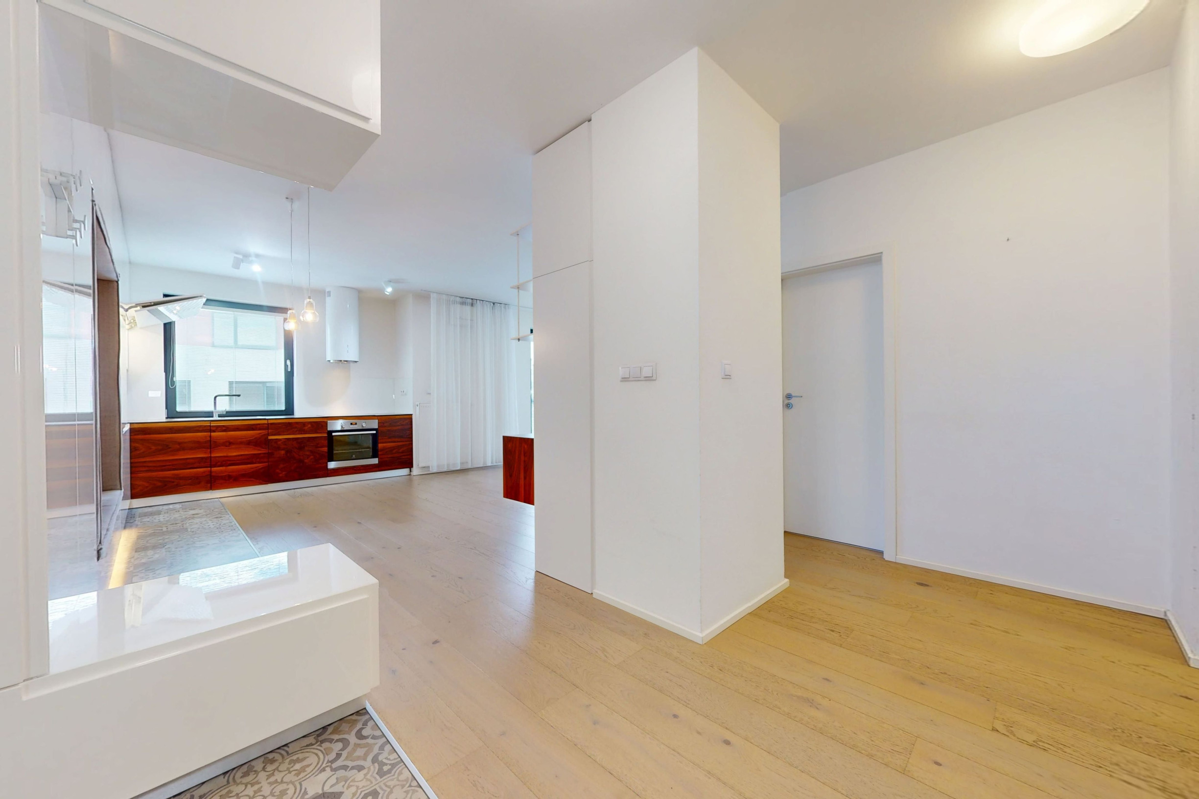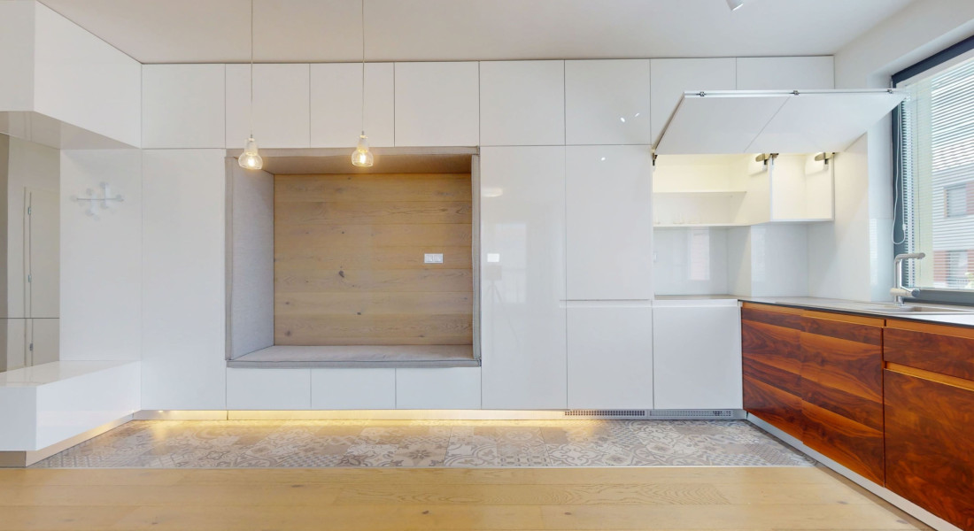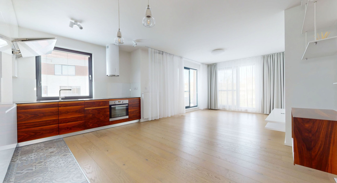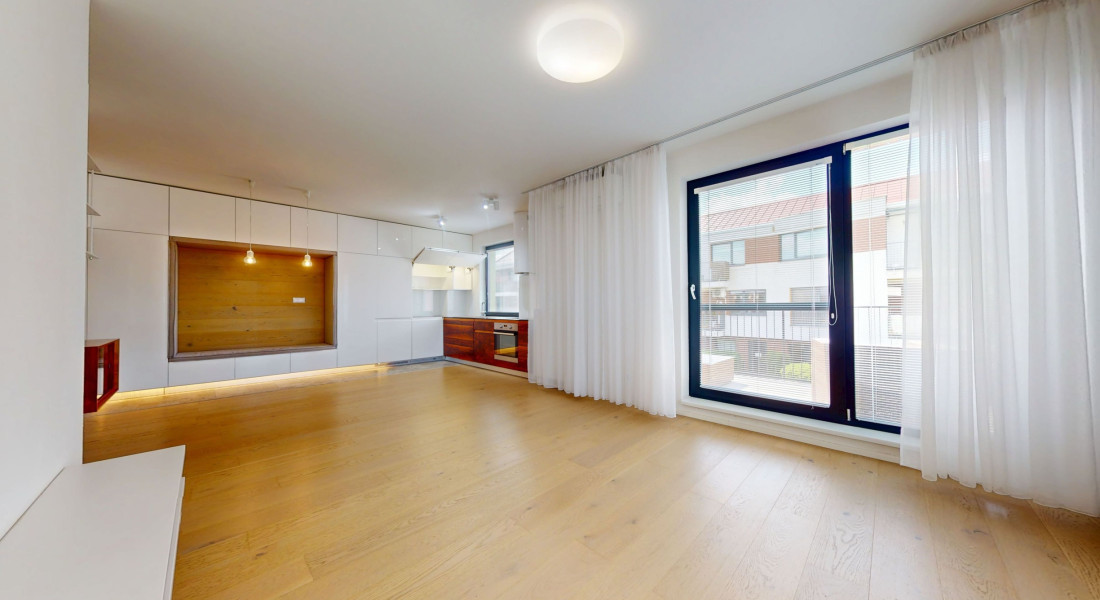 Byt je zariadený modernou kuchynskou linkou so všetkými spotrebičmi a úložnými priestormi vyrobených na mieru. Byt je veľmi svetlý, tichý a pôsobí príjemnou atmosférou.