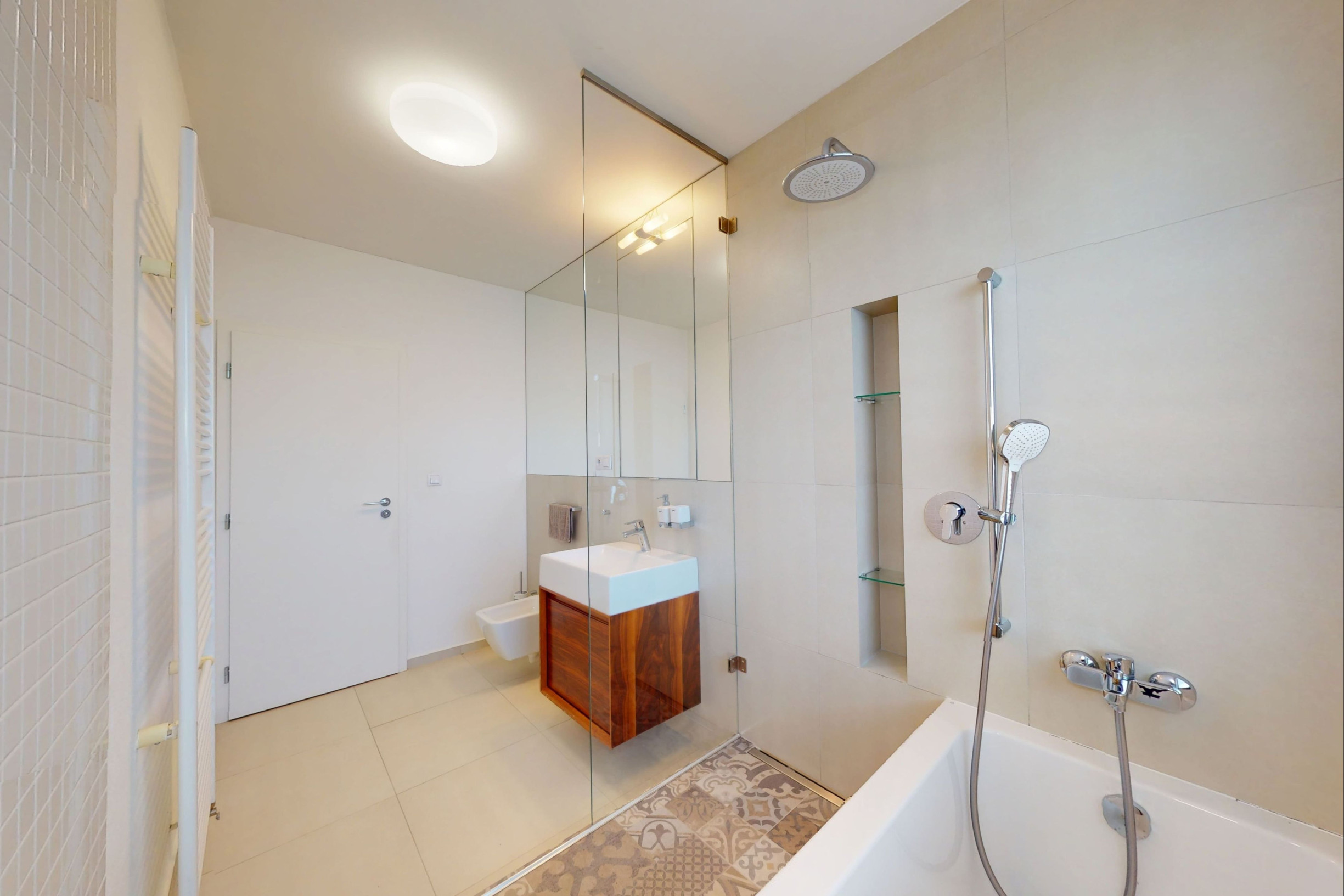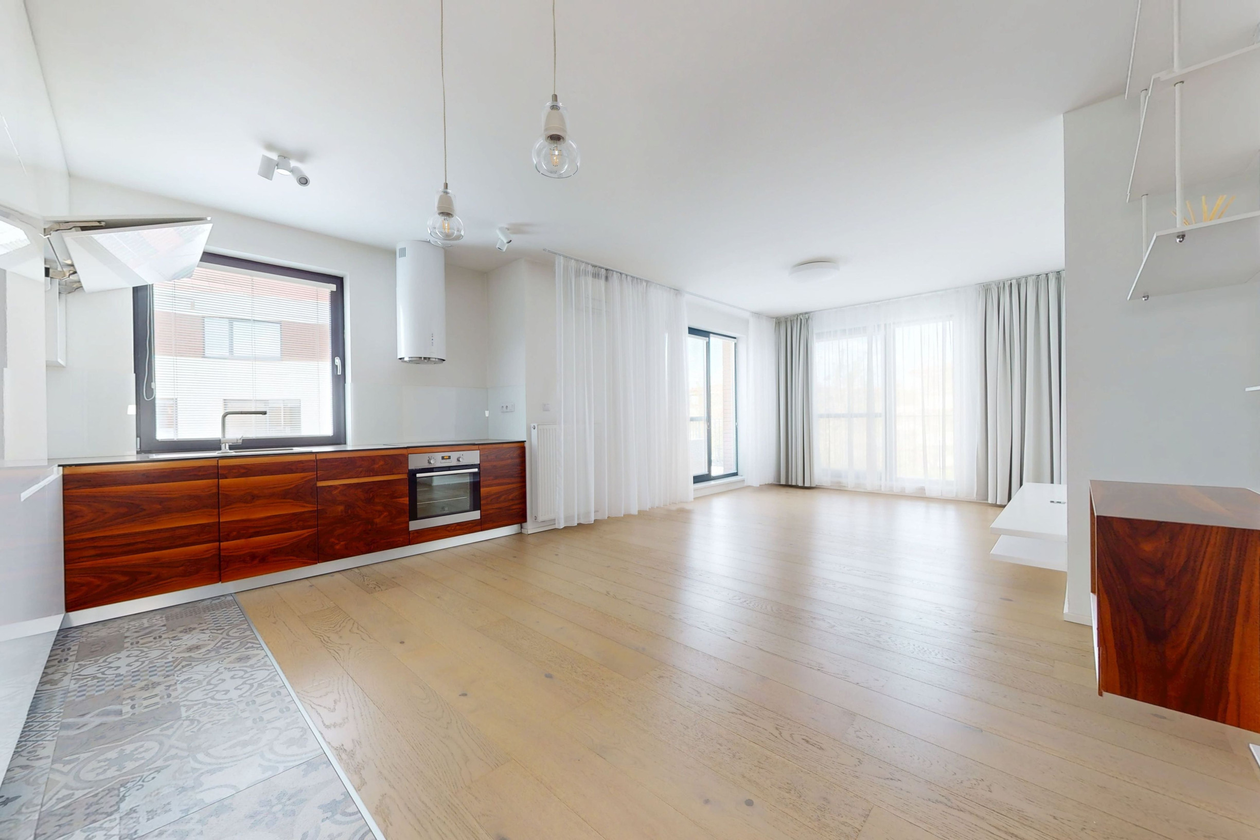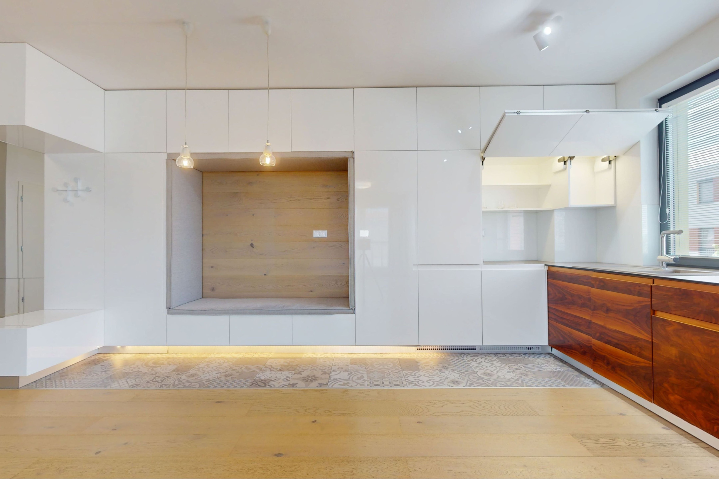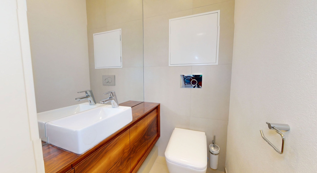 Byt je zariadený modernou kuchynskou linkou so všetkými spotrebičmi a úložnými priestormi vyrobených na mieru. Byt je veľmi svetlý, tichý a pôsobí príjemnou atmosférou.