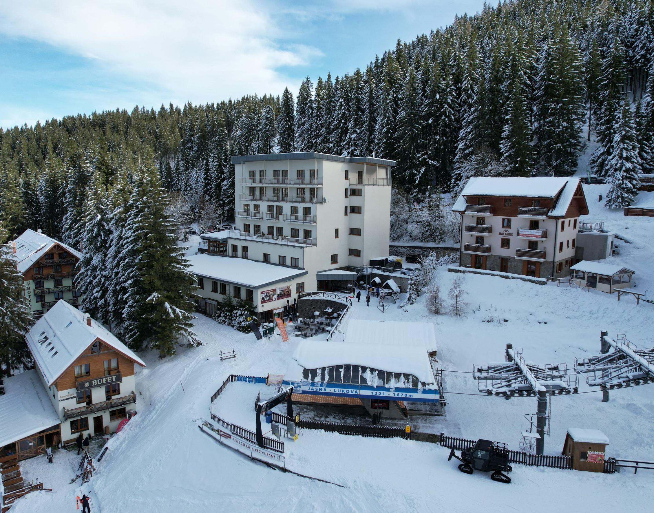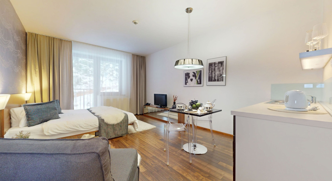Apartmán ma strategickú polohu je svetlé, útulné a pôsobí veľmi prémiovo – ideálne miesto na oddych aj rekreáciu v najlepšej lokalite strediska. Poskytuje komfortné horské bývanie s atmosférou 4-hviezdičkového hotela a jednoduchým prístupom k zjazdovke a službám hotela. V hoteli je taktiež požičovňa lyží a ponúka možnosť využitia profesionálnych inštruktorov.