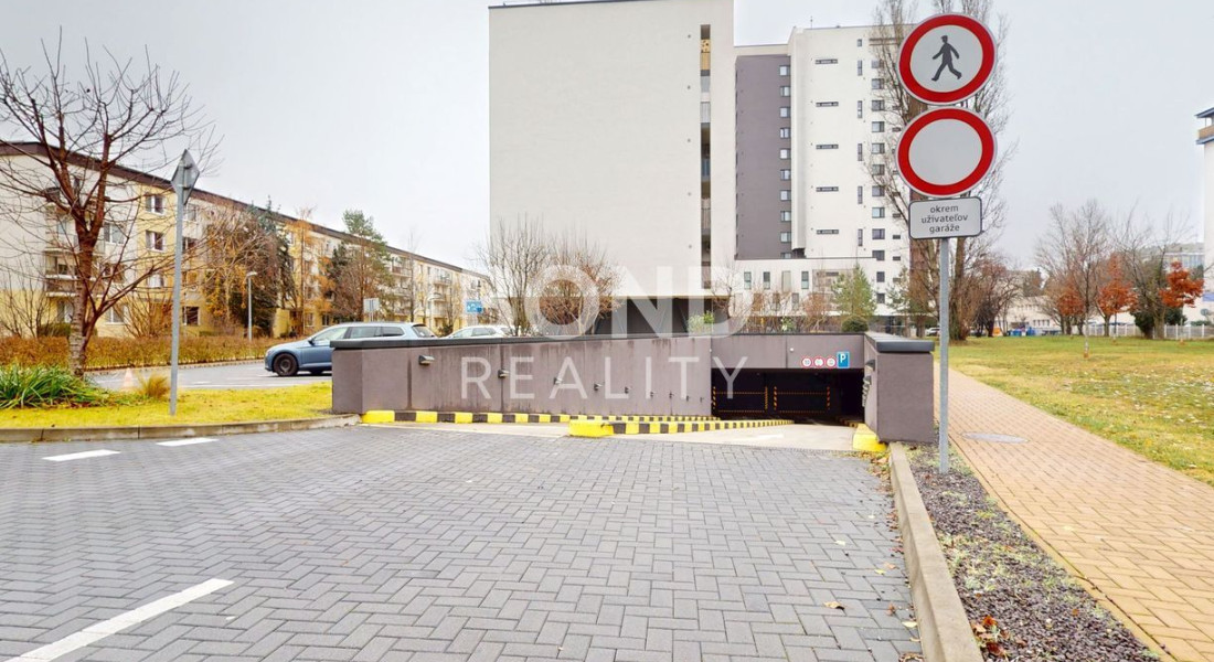 Vstup do podzemnej garáže zabezpečený diaľkovo ovládanou elektrickou bránou. Parkovacie miesto sa nachádza na -1 podlaží.