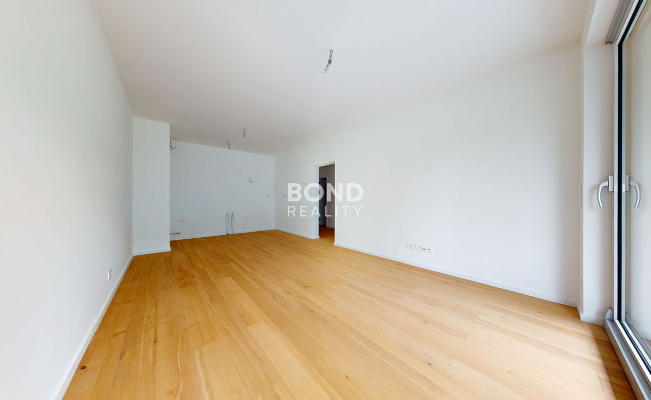 Moderný, dobre dispozične riešený byt pozostáva zo vstupnej chodby s úložným priestorom, samostatného WC, kúpeľne so sprchovým kútom, kuchyňou s otvorenou dispozíciu do obývačky a výstupom na balkón a spálne s výstupom na balkón. Je dokončený vo vyššom štandarde, stropné chladenie a kúrenie, hliníkové okná a vonkajšie žalúzie, drevené parkety, interiérové dvere so skrytými pántami, obklady a dlažby značky MARAZZI a sanita Villeroy & Boch.