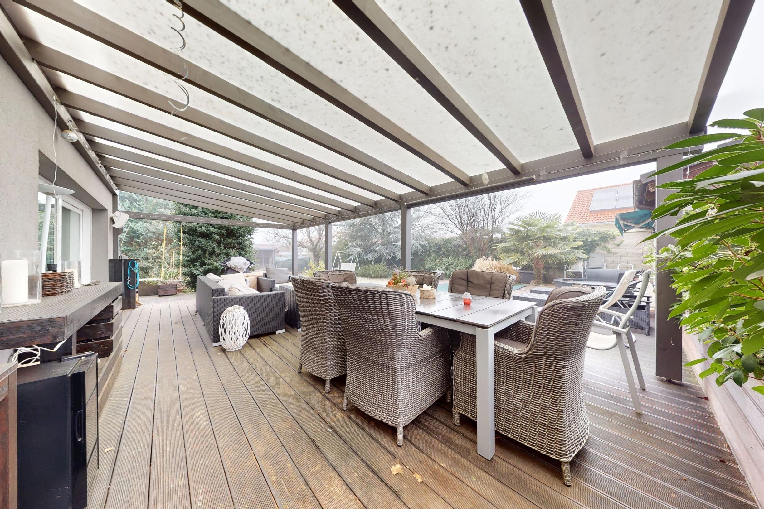 Úžitková plocha domu je cca 300m2, výmera pozemku 1000m2, výmera dvoj garáže 51m2 a výmera terasy 104m2.