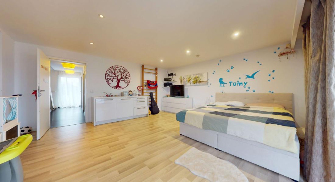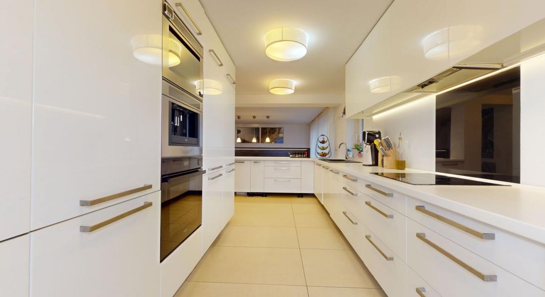 Dispozícia je logicky rozdelená na reprezentatívnu dennú časť a súkromnú nočnú zónu. Interiér pôsobí vzdušne, elegantne a nadčasovo, s dôrazom na komfort a funkčnosť. K dispozícii sú 3 kúpeľne, 4 toalety a dostatok úložného priestoru.