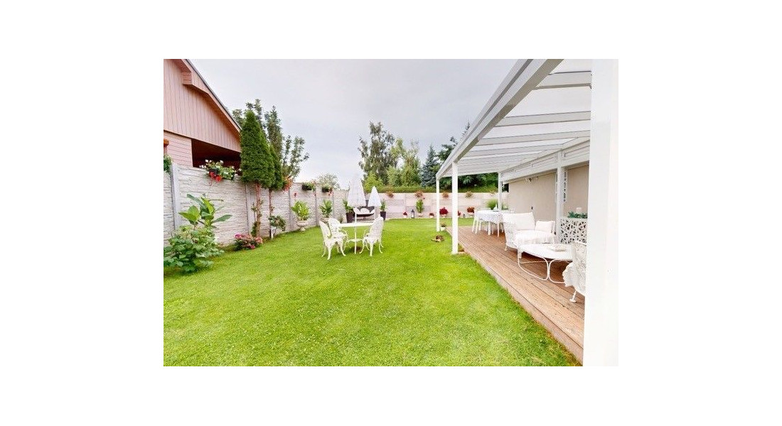 Pozemok s výmerou 350 m2 je pekne udržiavaný, vysadený okrasnými rastlinami a kríkmi, zatrávnený, od susedov a prístupovej cesty oddelený betónovým plotom.