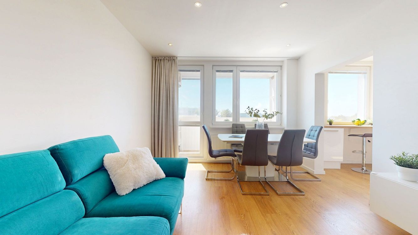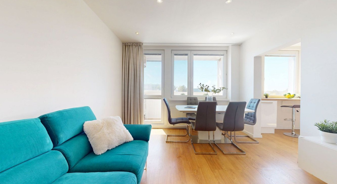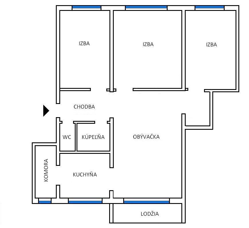 Výmera bytu je 76 m2 + zasklená lodžia 4 m2 + pivničná kobka 4,5 m2. Bytový dom sa nachádza v tichom prostredí s výhľadom na zelené sídlisko. Byt je orientovaný obojstranne, obývacia izba s lodžiou a kuchyňa sú orientované na JV, ostatné izby na SZ.