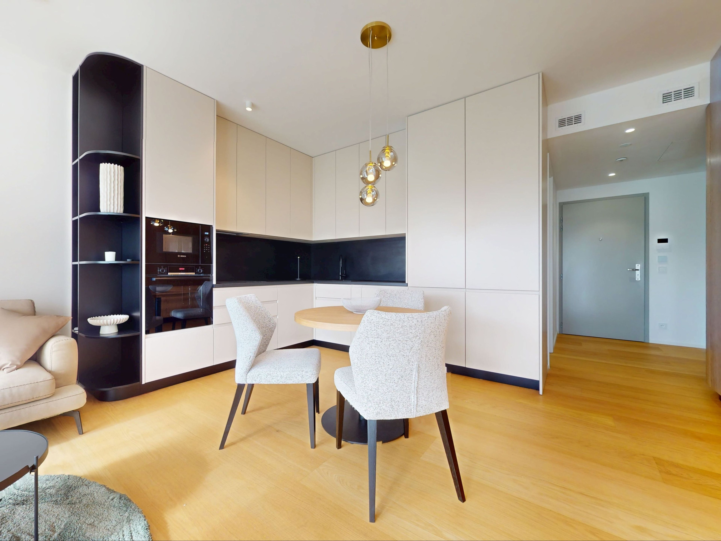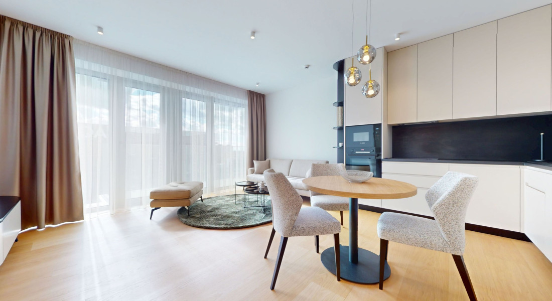 Ponúkame na prenájom nadštandardne zariadený 2-izbový byt v prestížnom projekte Liget v meste Bratislava.