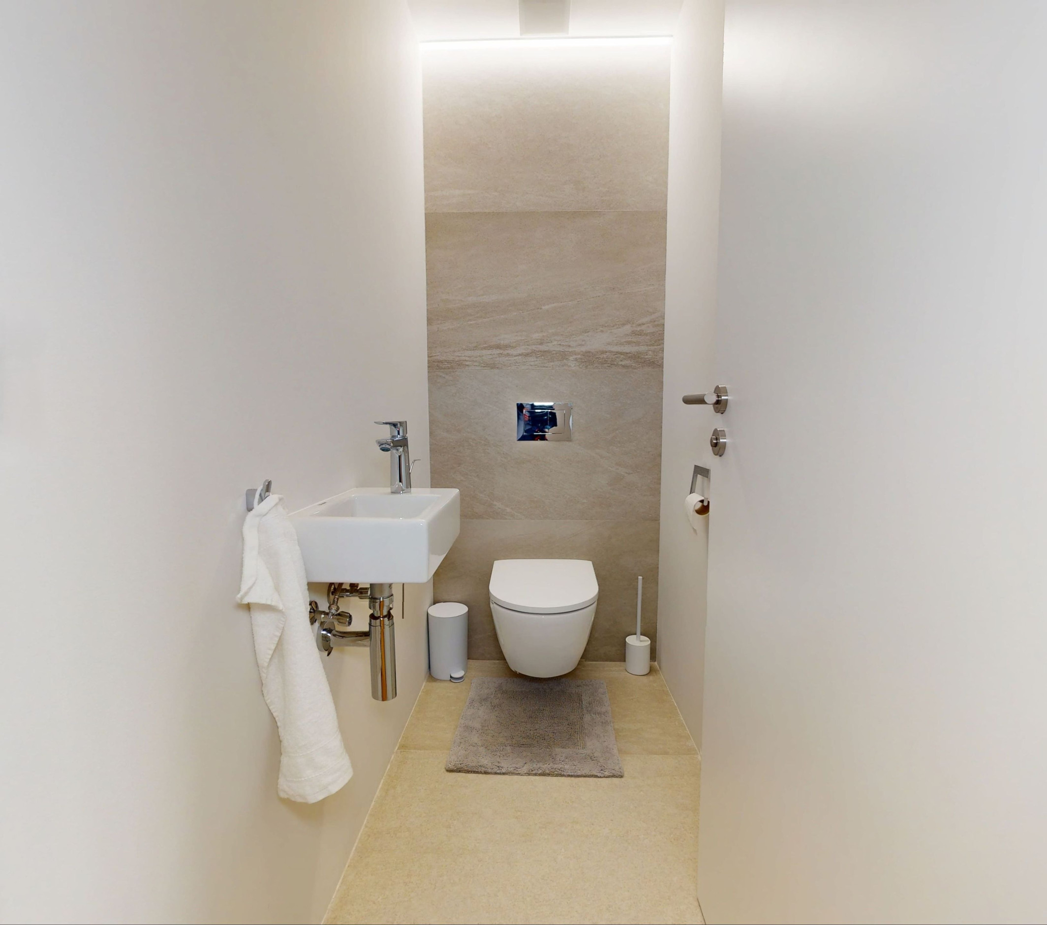 • kúpeľňa s vaňou, umývadlom, práčkou a úložným priestorom