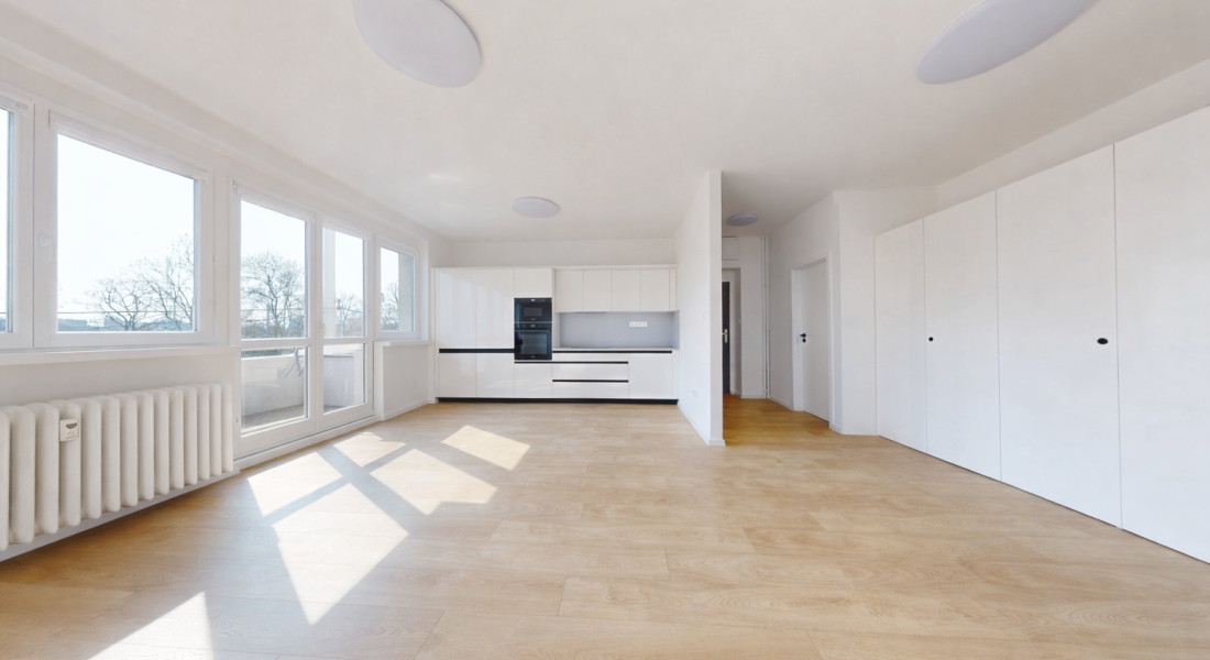 Rozloha bytu je 87,85m2 a nachádza sa na 2 podlaží v štvorpodlažnom bytovom dome s výťahom. Kompletná a ešte nepoužívaná rekonštrukcia zahŕňa: kvalitnú stolárinu na mieru a všetky zabudované spotrebiče.