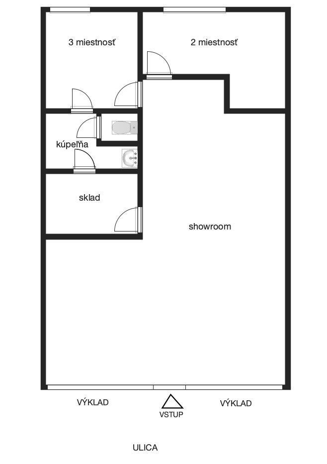 Dispozične pozostáva z predajne (showroomu), sociálneho zázemia a dvoch miestností oddelených sadrokartónovými priečkami. V prípade potreby je možné priestor upraviť na veľký otvorený showroom alebo ho variabilne prispôsobiť podľa vlastných požiadaviek.