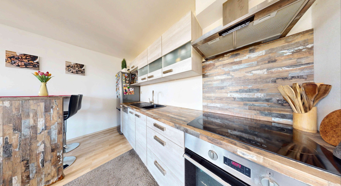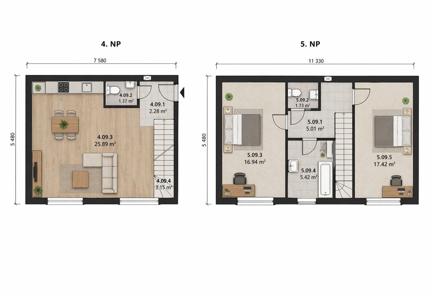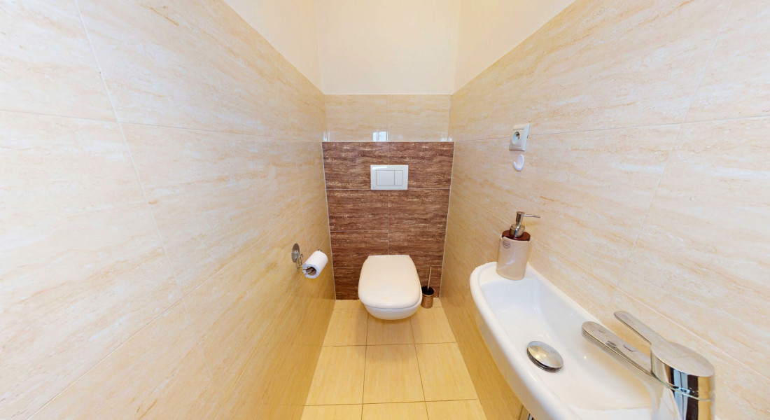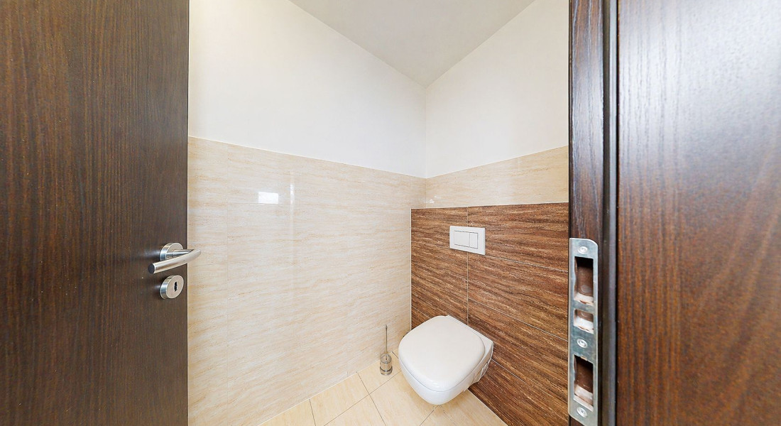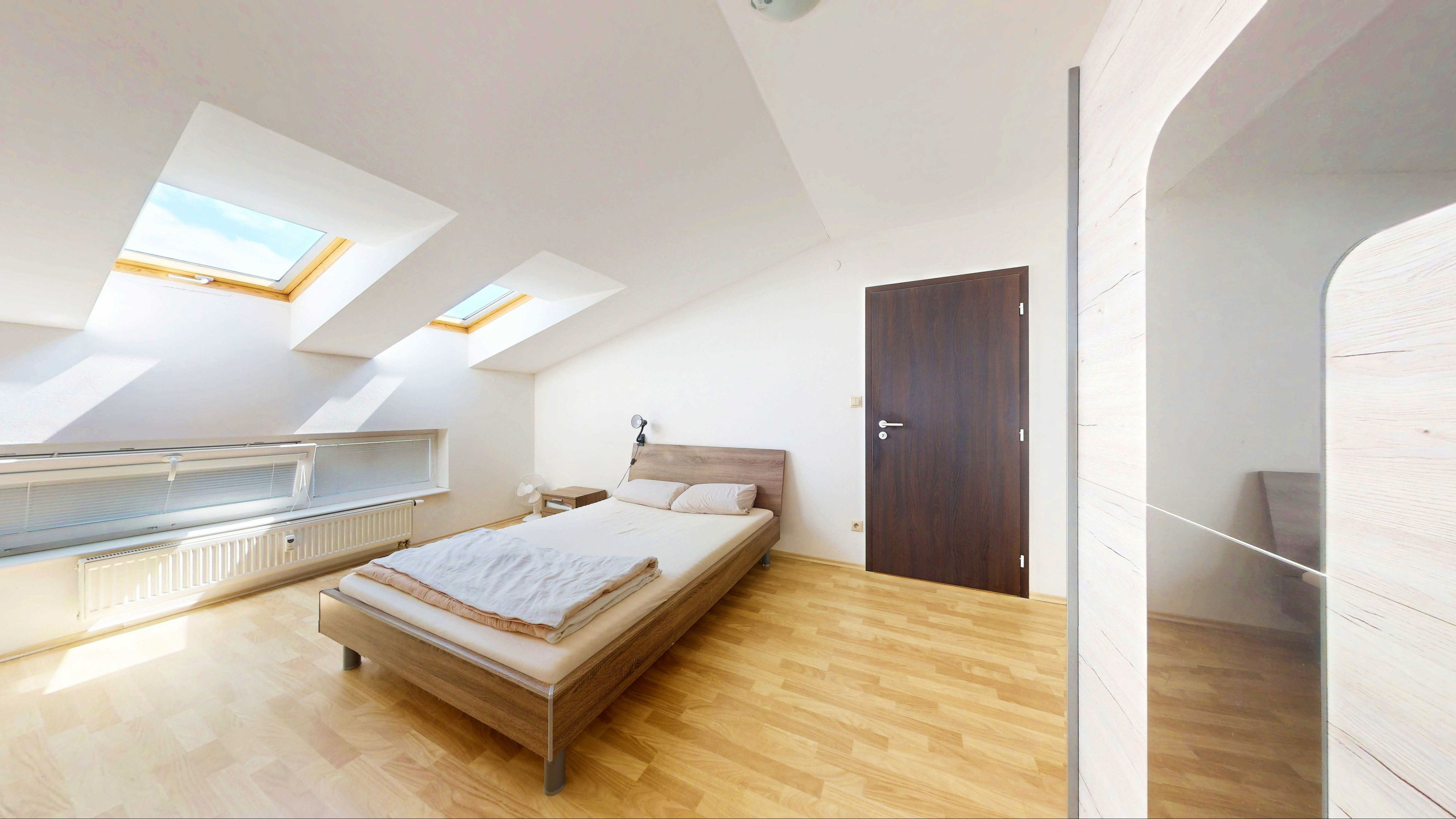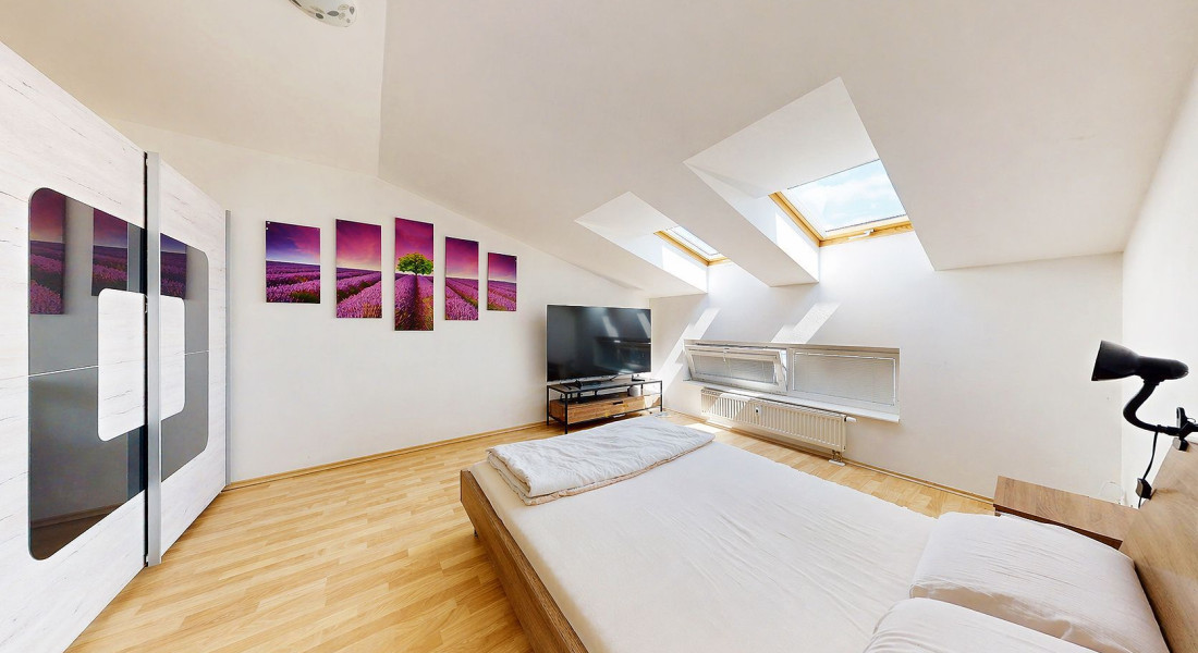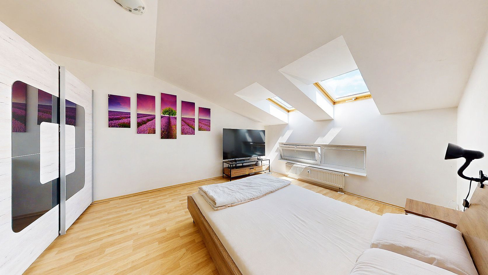 Horná časť bytu – 2 izby s nadštandardnou výmerou cca 17m2, kúpeľňa s vaňou, sam. WC, chodba