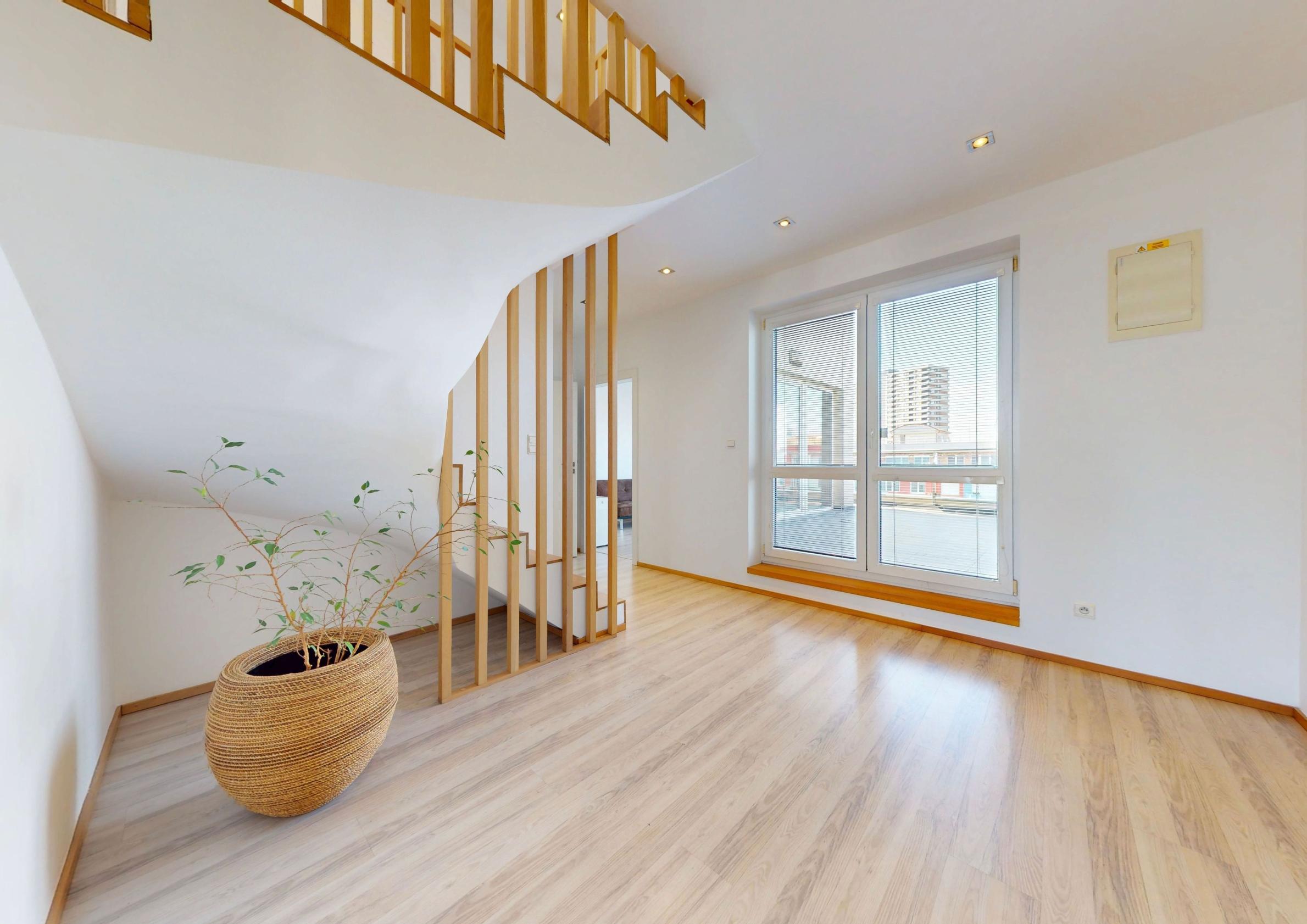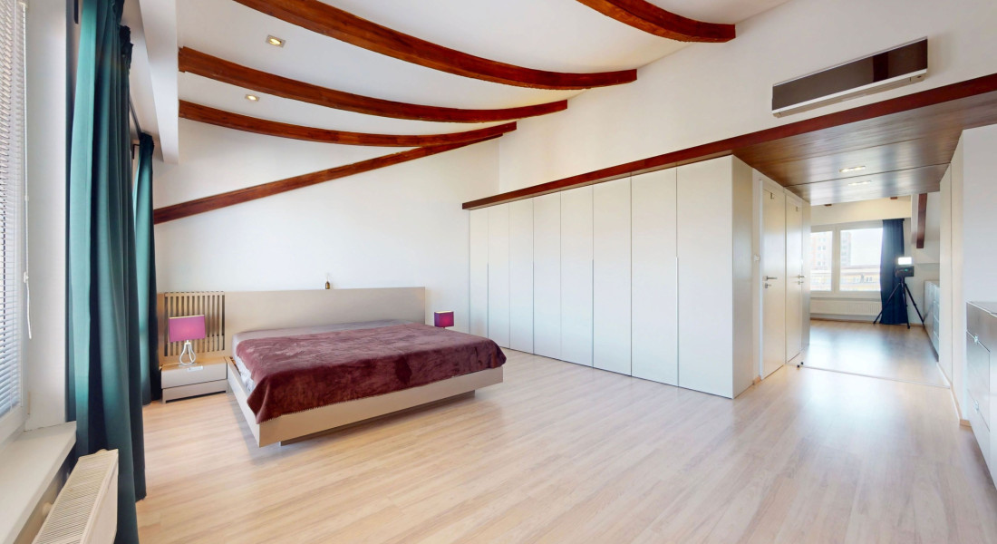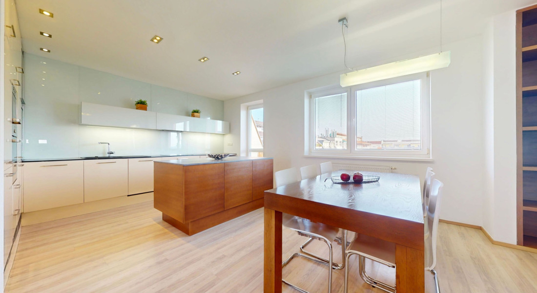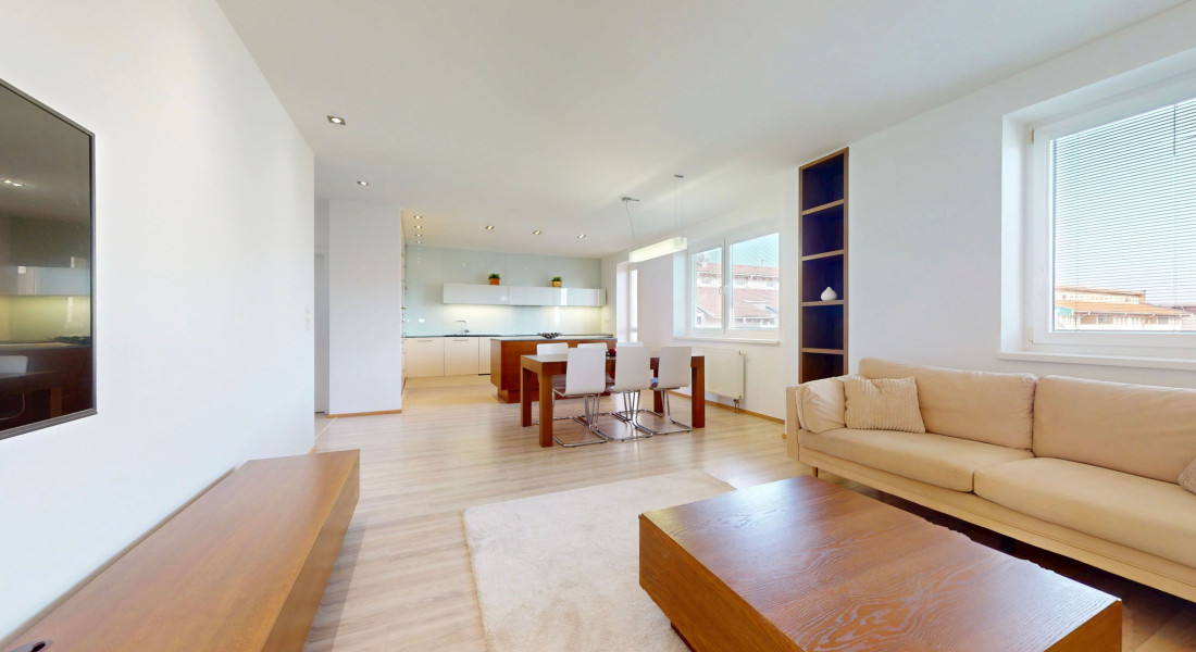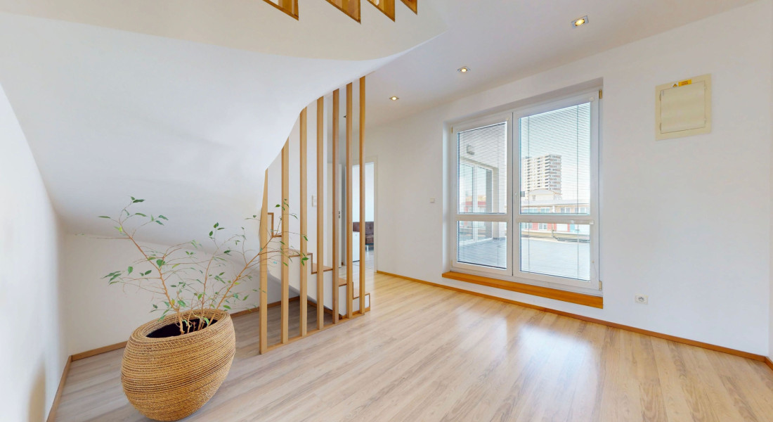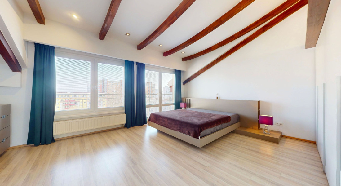 Ponúkame na predaj priestranný a presvetlený 5-izbový mezonet v staršej novostavbe s výbornou dispozíciou v atraktívnej lokalite na začiatku Petržalky. Byt sa nachádza na 7. a 8. poschodí a ponúka krásne výhľady – na severozápadnej strane na panorámu Bratislavy a na juhovýchodnej strane na udržiavaný park v tichej lokalite.