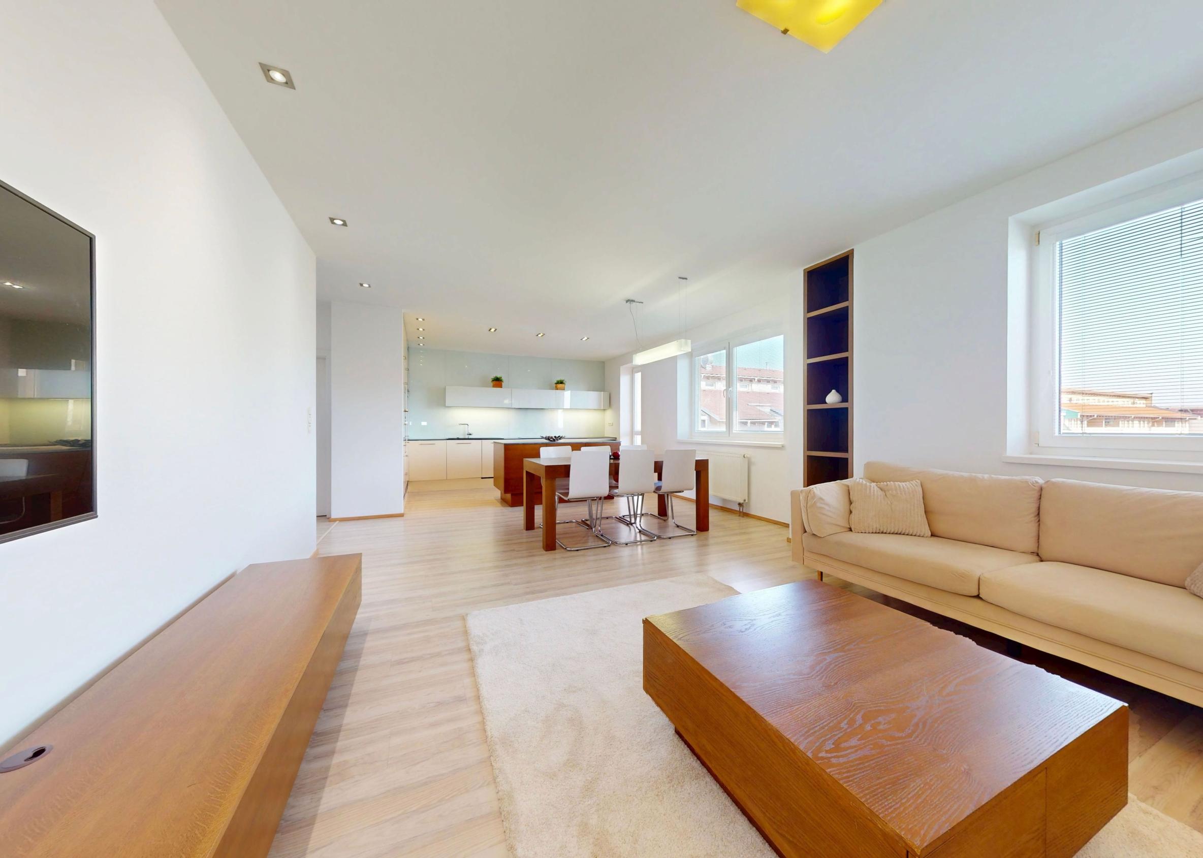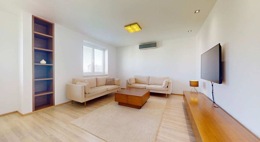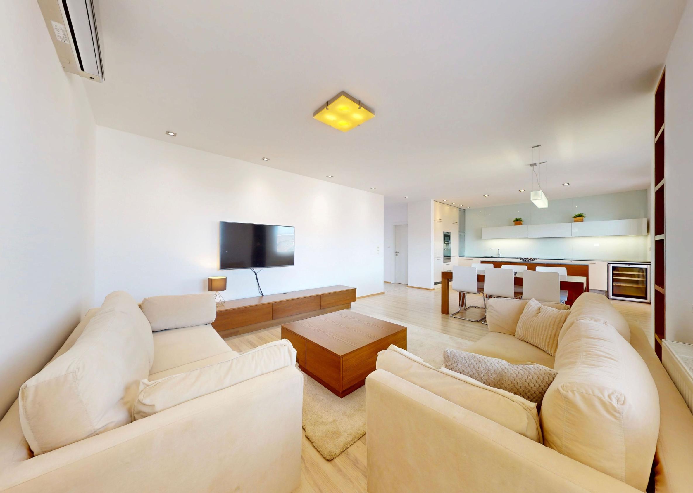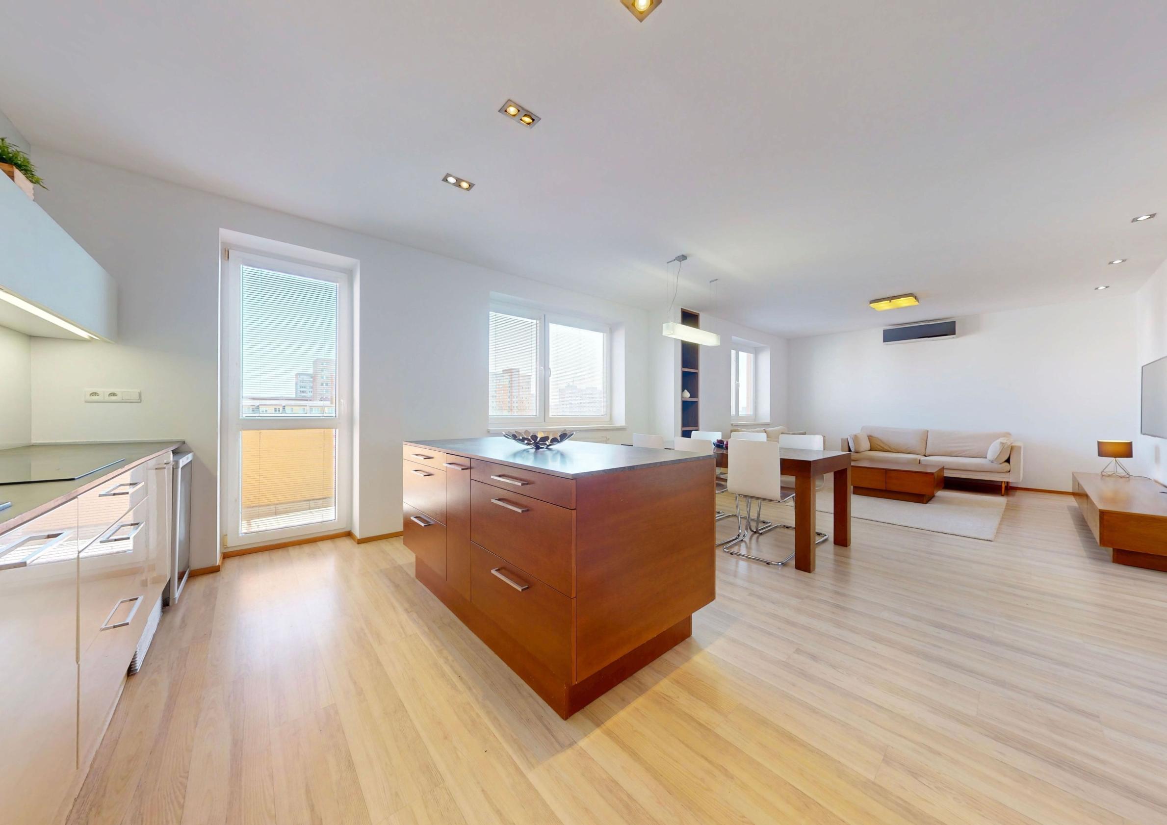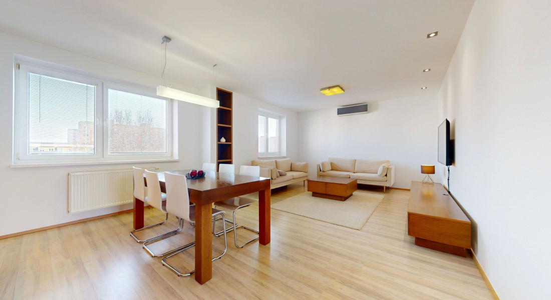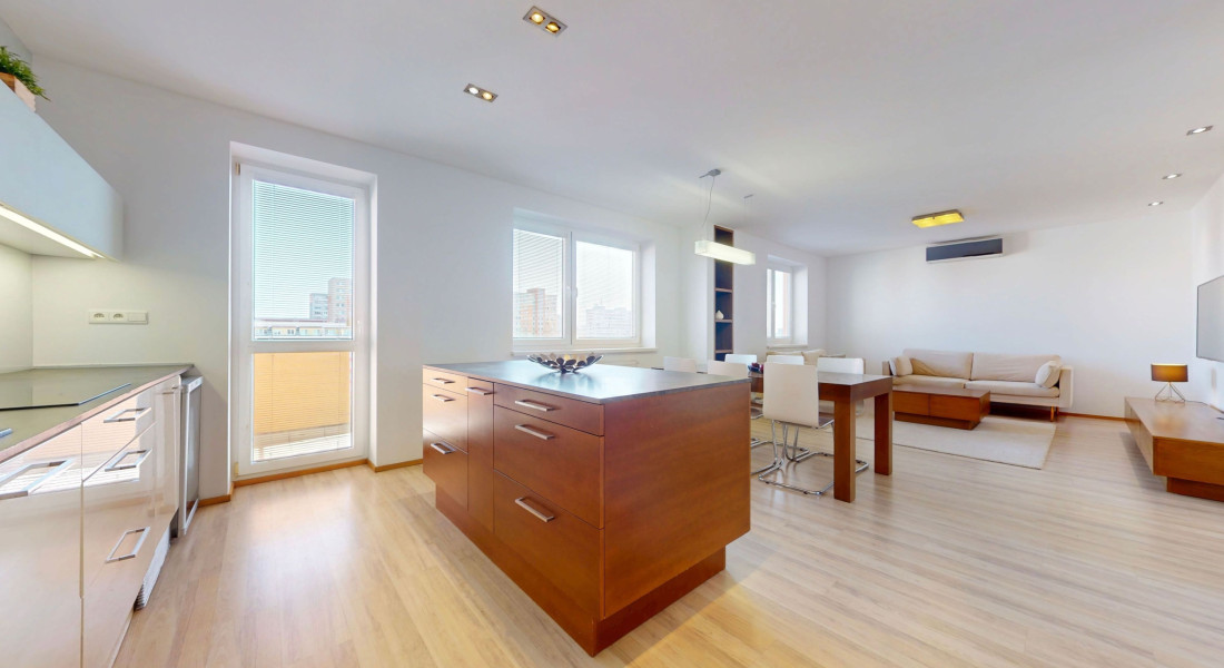 Byt je plne klimatizovaný a vďaka svojej dispozícii ponúka komfortné bývanie aj pre väčšiu rodinu.
