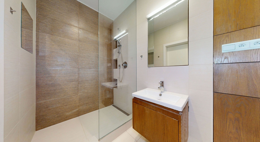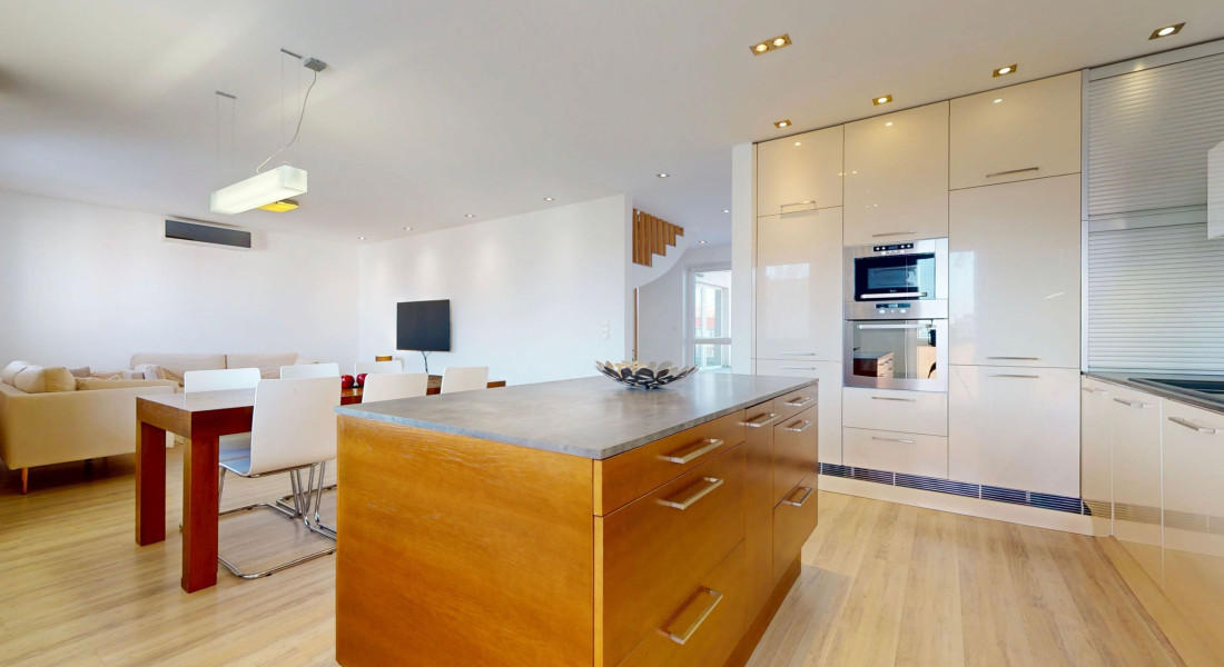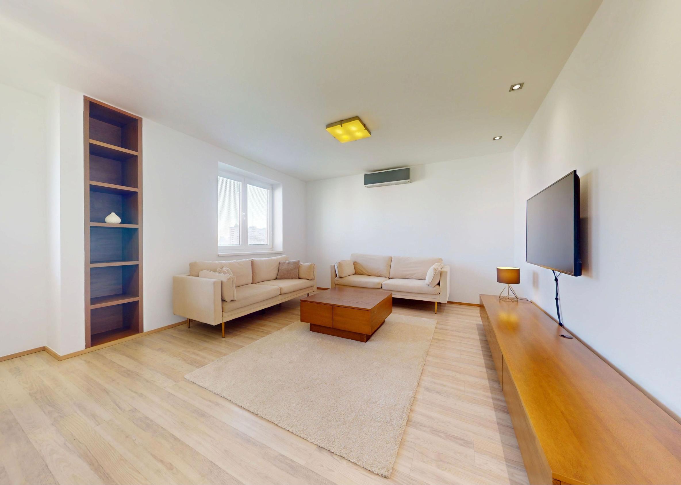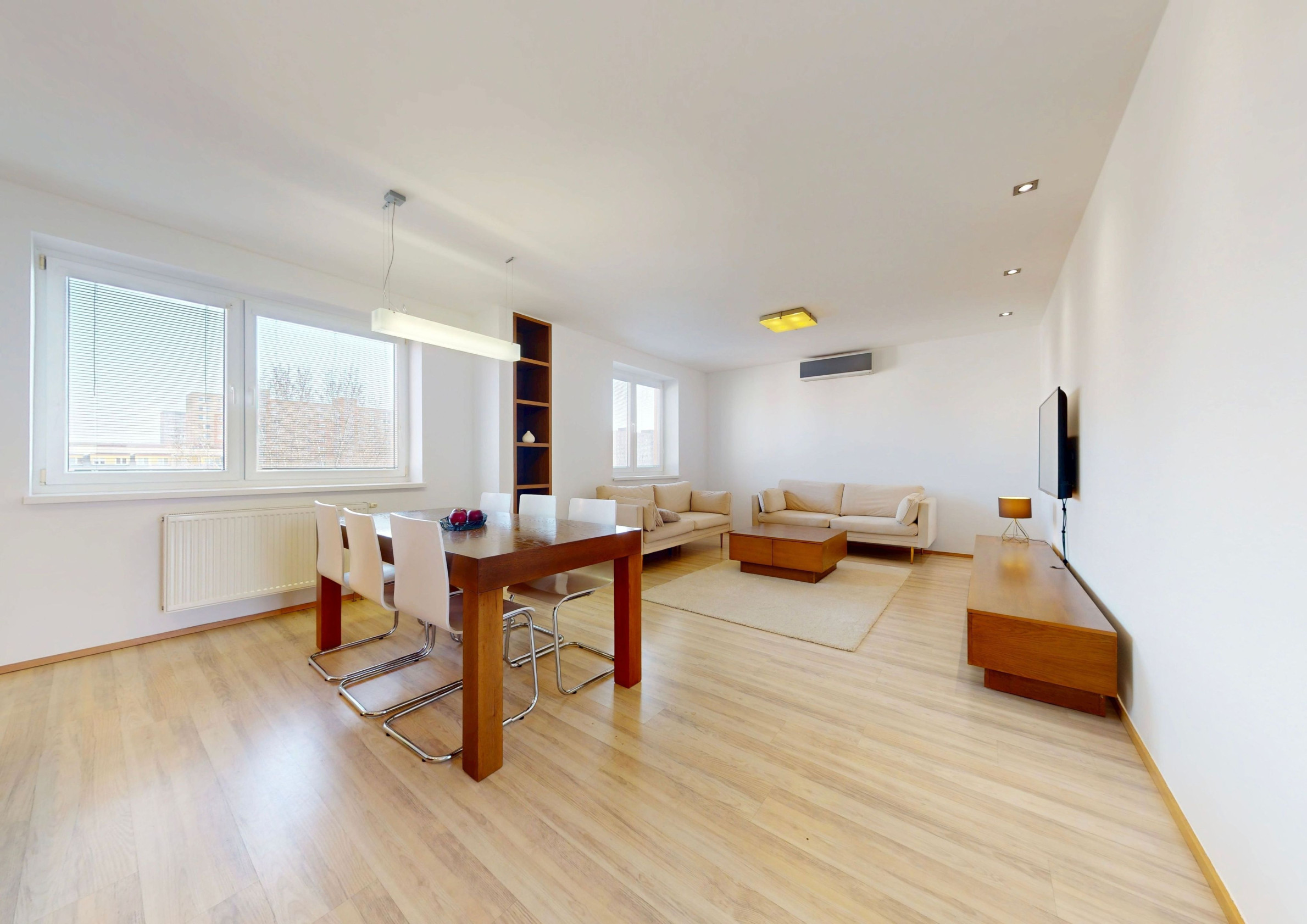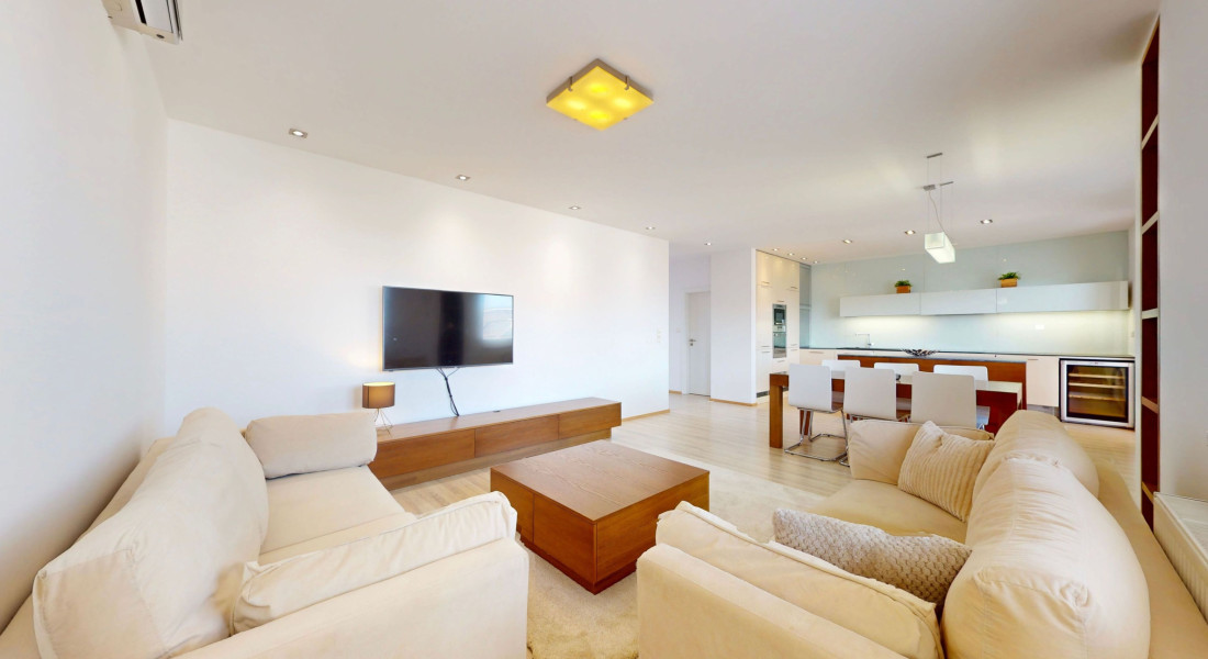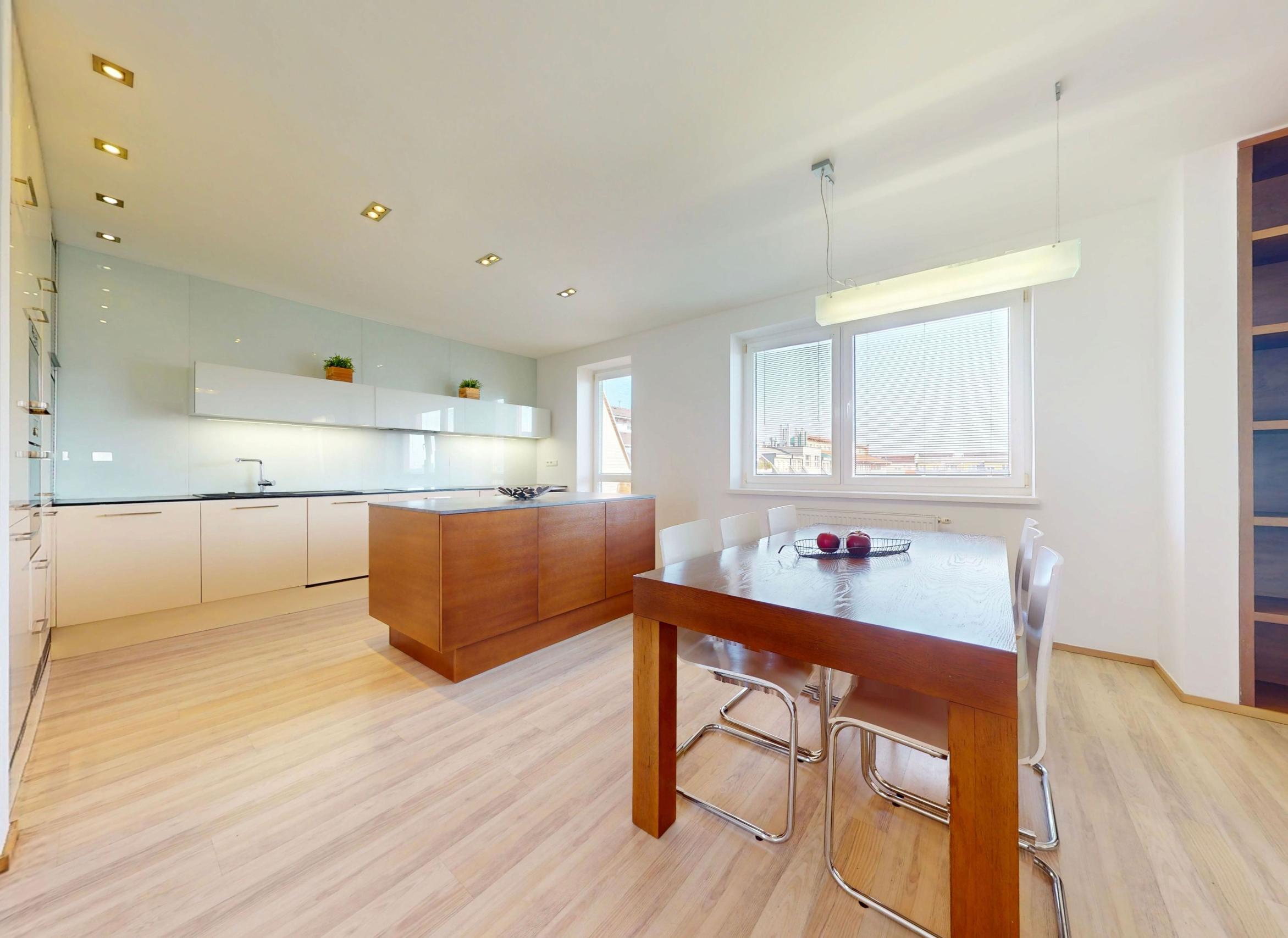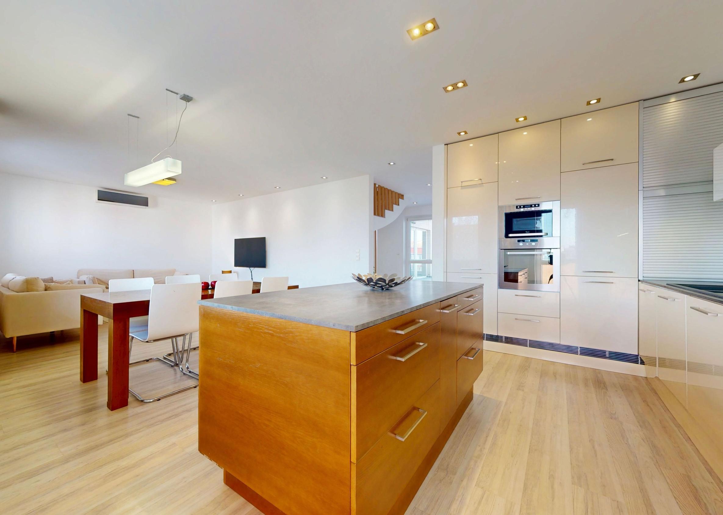 Byt je plne klimatizovaný a vďaka svojej dispozícii ponúka komfortné bývanie aj pre väčšiu rodinu.