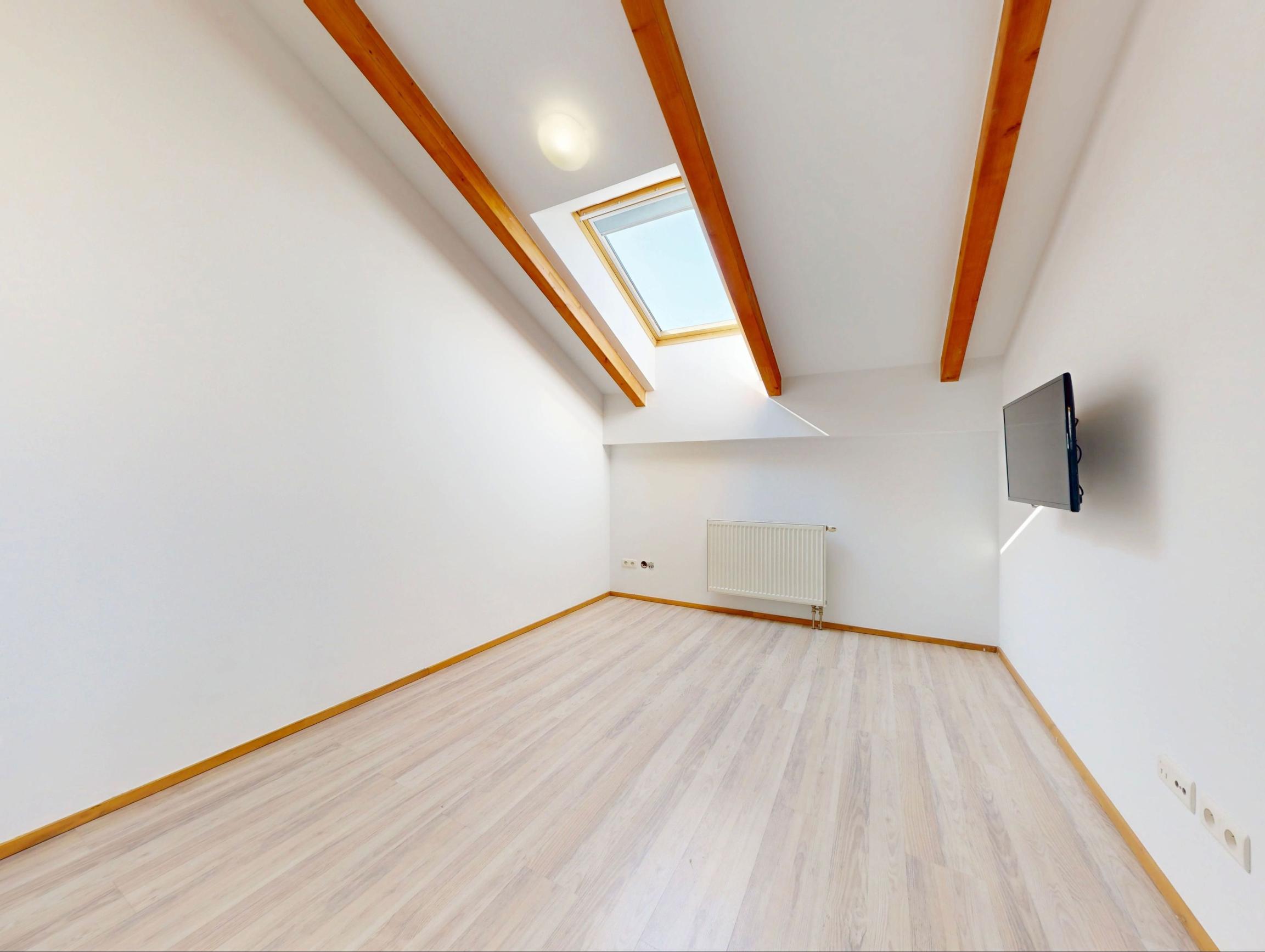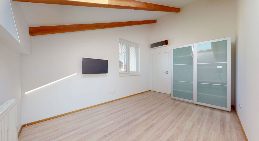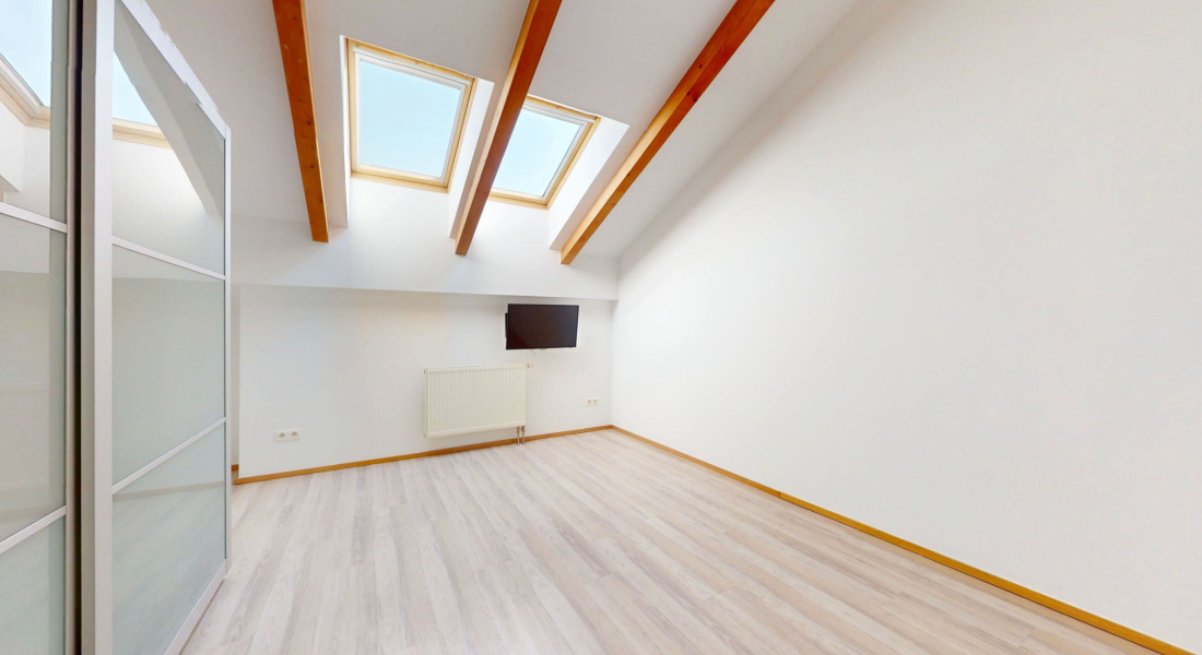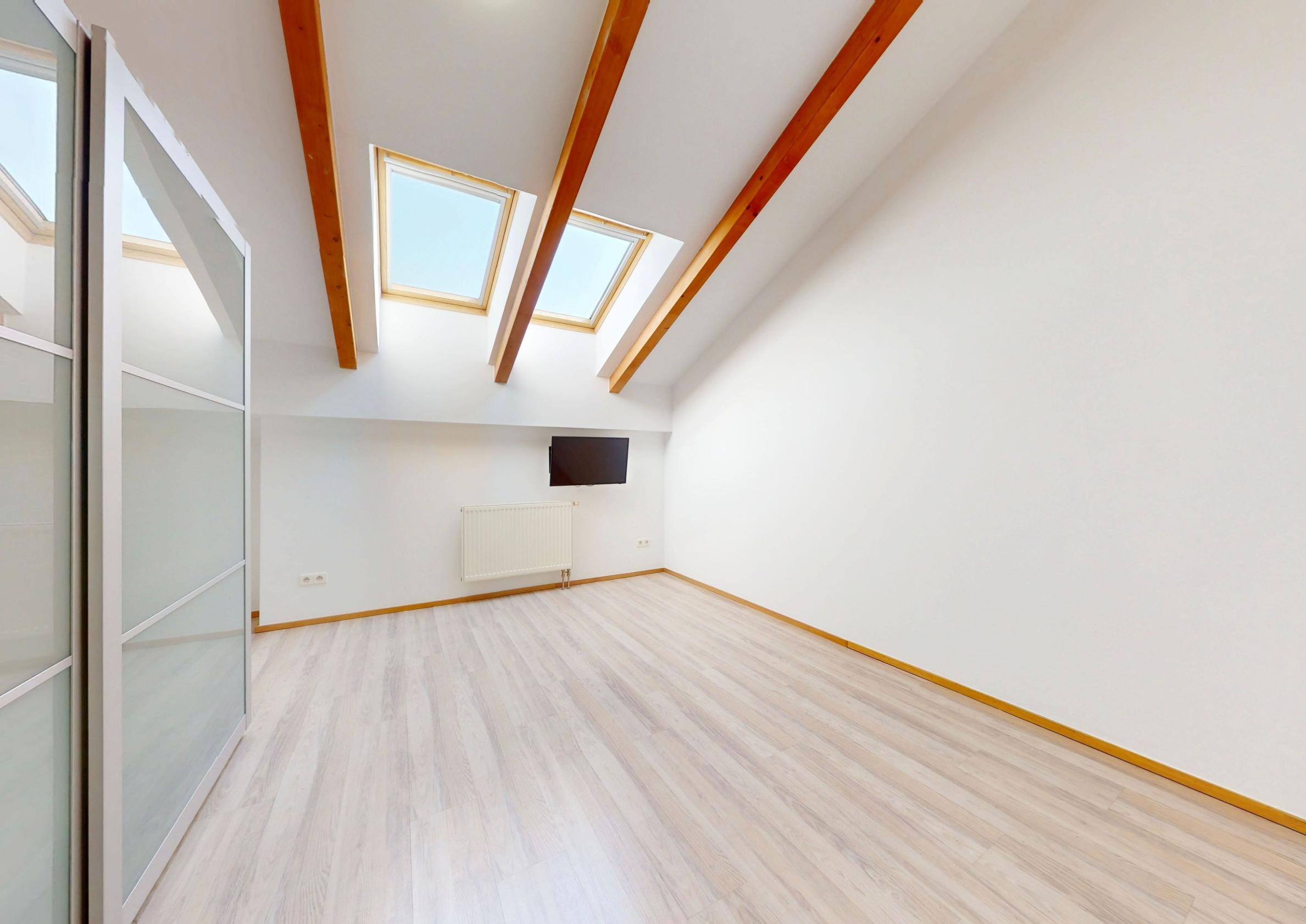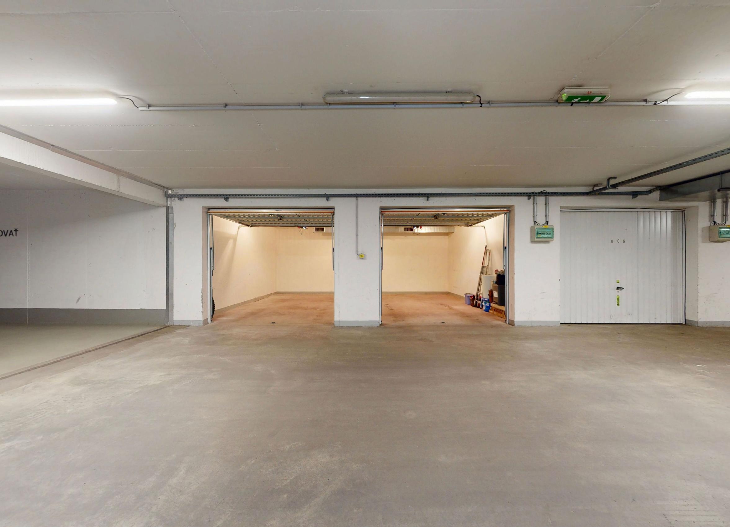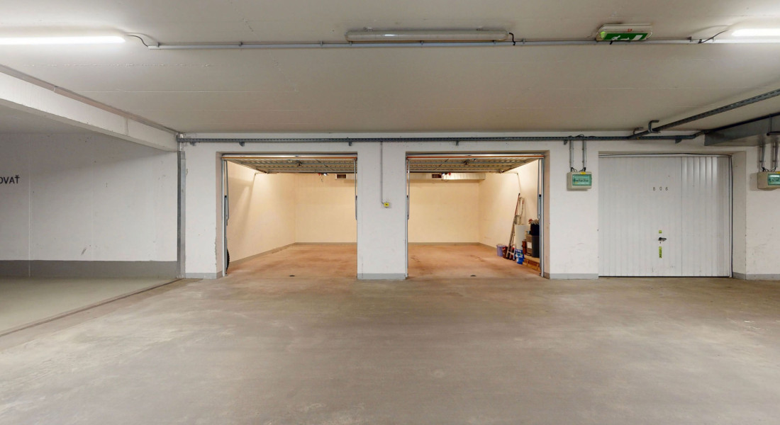K bytu patrí veľká dvojgaráž v uzamykateľných garážových priestoroch.