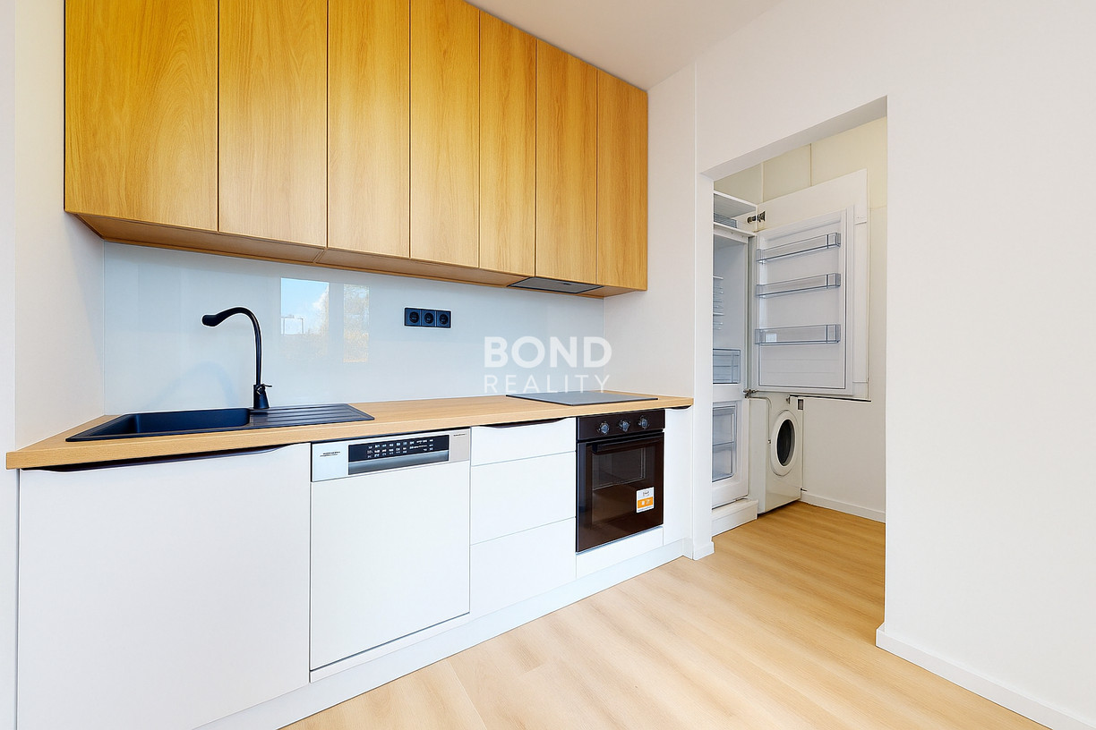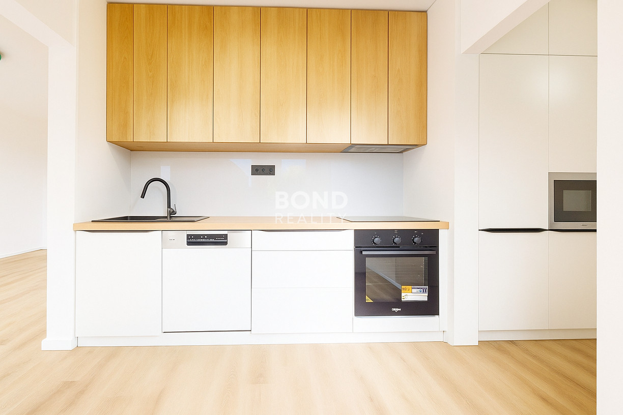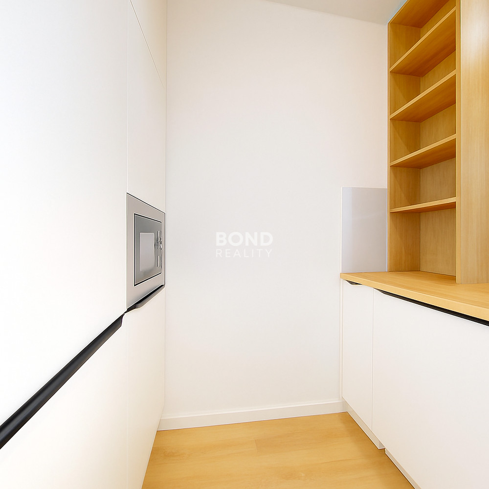 Nová kuchynská linka je plne vybavená vstavanými spotrebičmi – umývačkou, rúrou, varnou doskou, digestorom, mikrovlnkou, vstavanou chladničkou, ako aj práčkou a sušičkou.