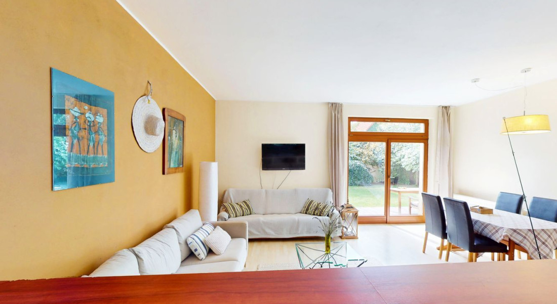 Vzhľadom k tomu, že dom je postavený na hranici pozemku, v zadnej časti pozemku na ktorý sa vychádza z obývačky, alebo vonkajším vstupom (bezproblémová možnosť parkovania) sa nachádza pekná a dostatočne veľká vzdušná záhrada.