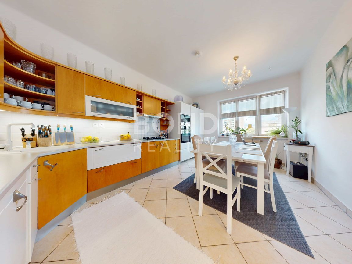 K bytu prislúcha aj podiel na pozemku v spoločnom uzavretom dvore, kde má súčasný vlastník aj vyhradené parkovacie státie pre jedno vozidlo.