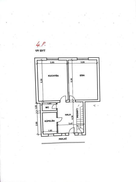 Do bytu sa vstupuje zo zdieľanej pavlače ( dostupnosť pre tri byty ).