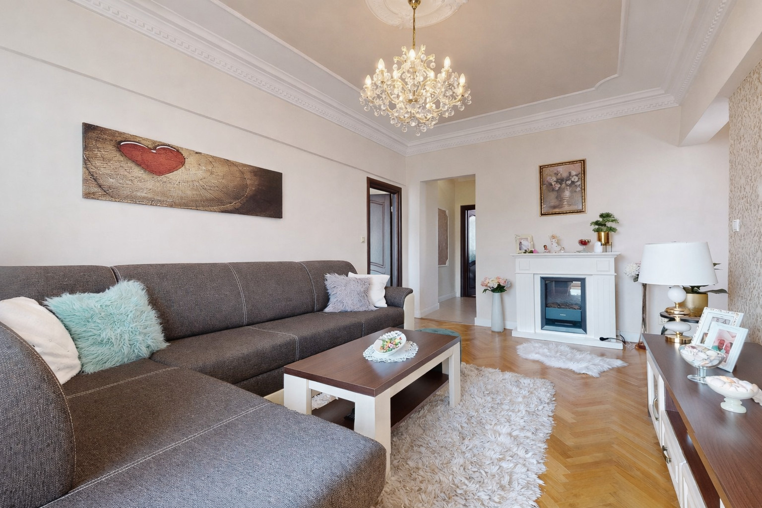 Interiér prešiel kompletnou rekonštrukciou a je zariadený v nadčasovom dizajnovom štýle. Dispozične pozostáva zo vstupnej predsiene, samostatnej izby vhodnej ako detská izba alebo pracovňa, obývacej izby s elektrickým krbom, veľkorysej spálne, samostatnej kuchyne, kúpeľne s WC.
